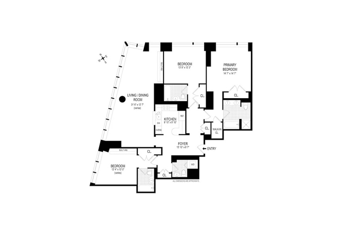 The efficient corner layout offers excellent separation between living and bedroom areas-an ideal configuration for high-end tenants. The open chef's kitchen features premium appliances and a generous breakfast bar, while the primary suite includes a walk-in closet and spa-like marble bath. Two additional en-suite bedrooms provide flexibility for guests, family, or a home office.