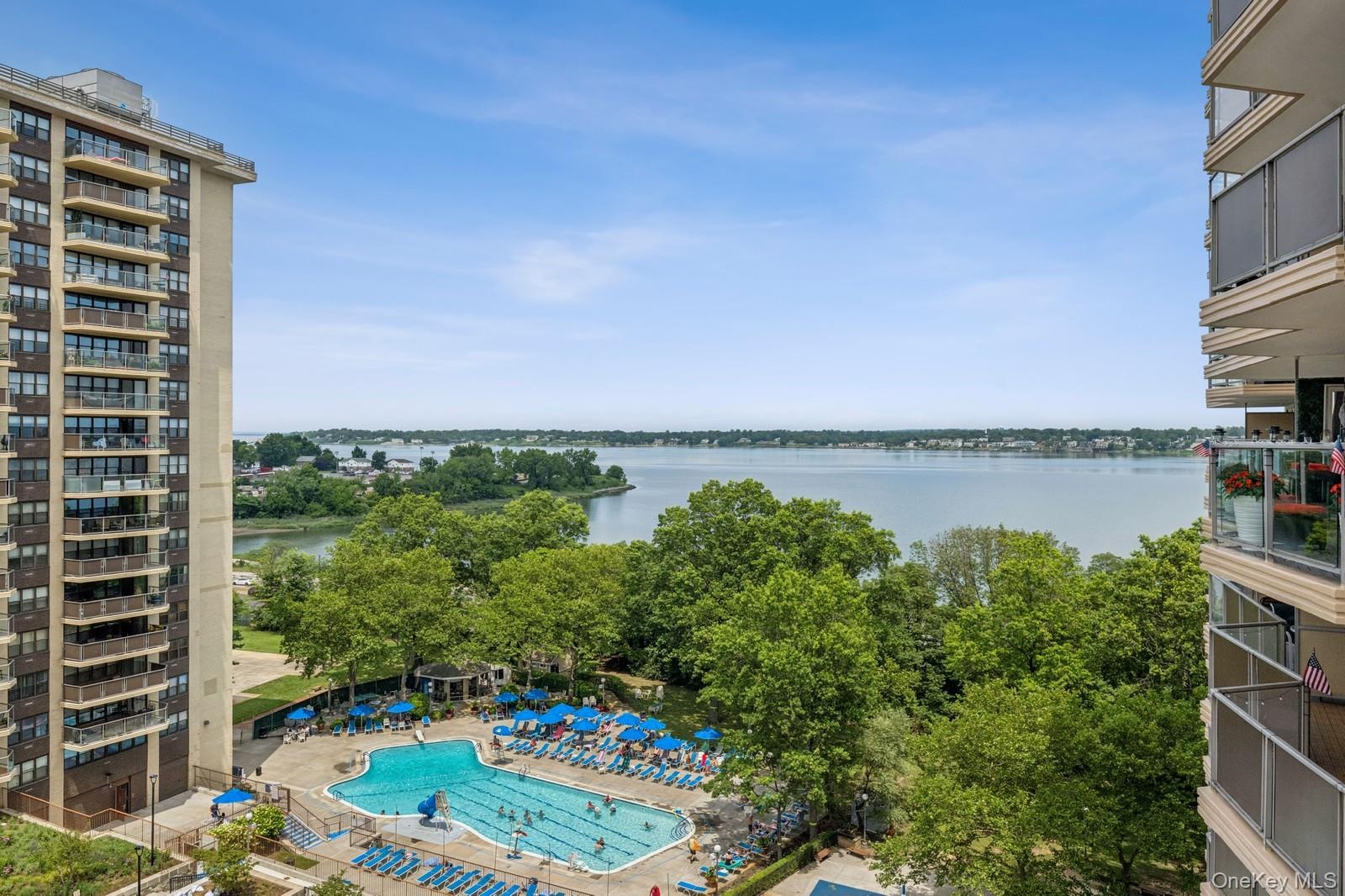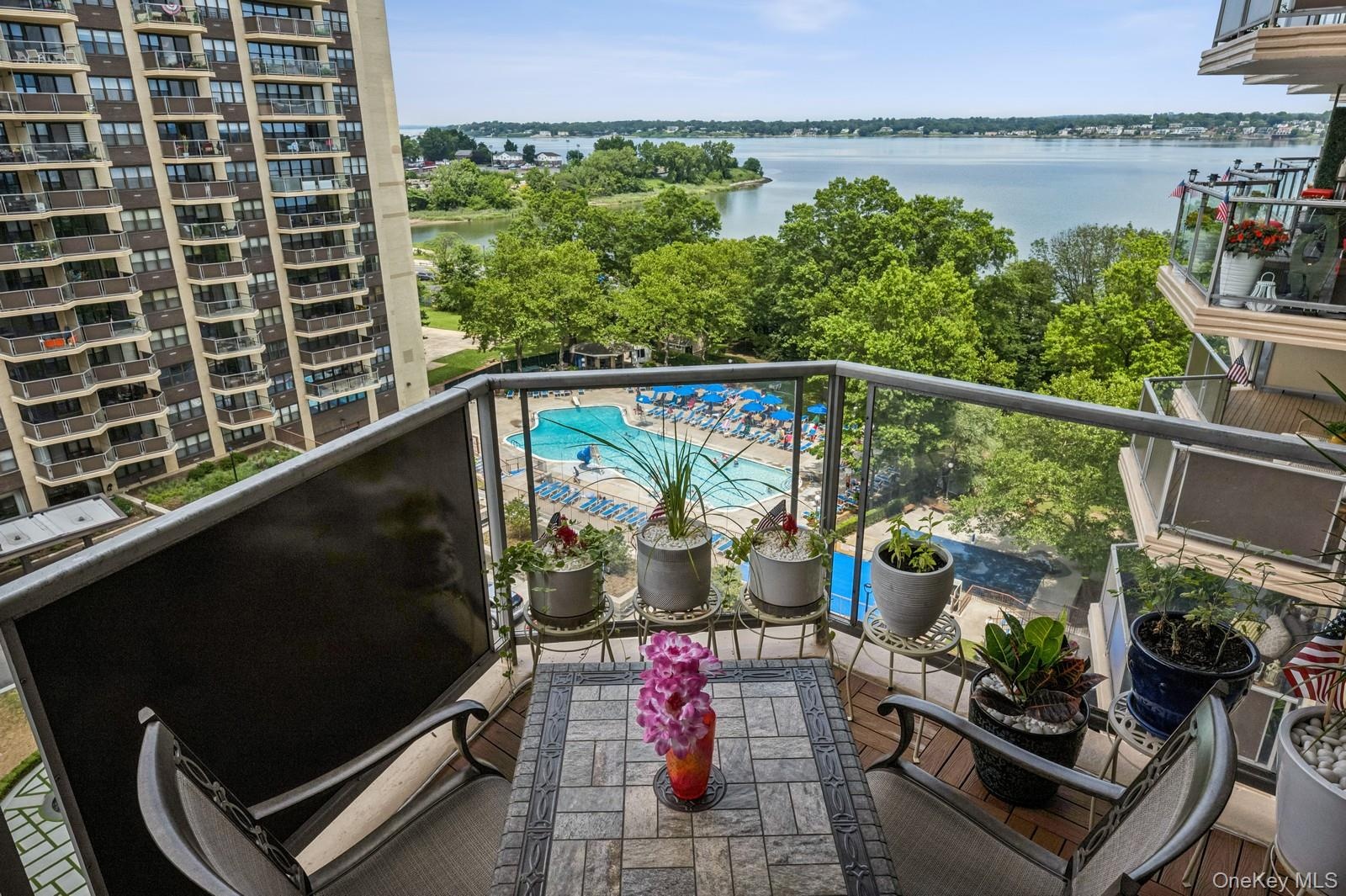 - Lovely Balcony featuring waterfront, skyline and Complex pool!