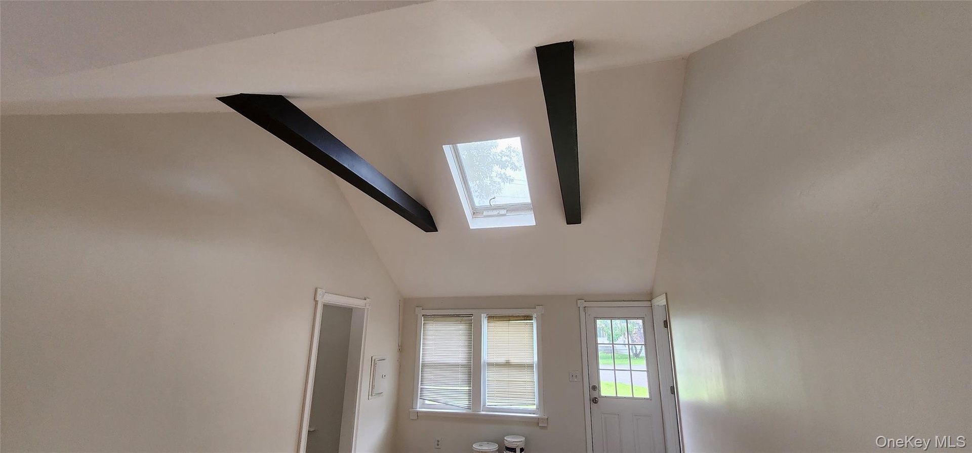 - Spare room with high vaulted ceiling and light wood-type flooring