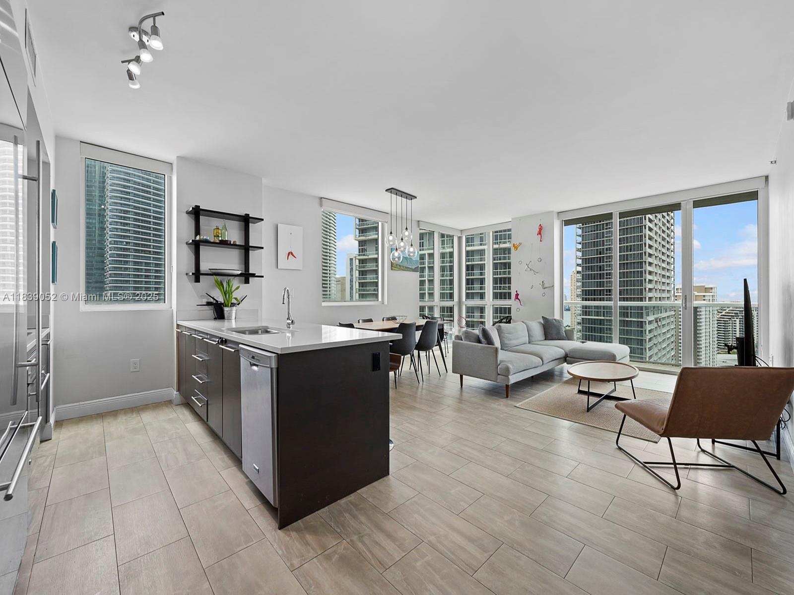 Rare and spacious, 01 line, 3 bedroom, 3 FULL bathroom, corner unit in 500 Brickell's East Tower. The 01 line is the only 3 bedroom line within both the East and West towers. NO ASSESSMENTS in place and it is a financially stable building. Floor to ceiling windows throughout, plenty of light, this unit has picturesque 90 degree views of the Miami River, the Downtown Miami Skyline, the bay, Brickell Key and South Brickell Ave. Tiling throughout the unit, including the large balcony, and Master and living room access from the balcony. Open kitchen plan with Italian cabinetry and high end appliances. Brand new LG, full size washer and dryer. 5