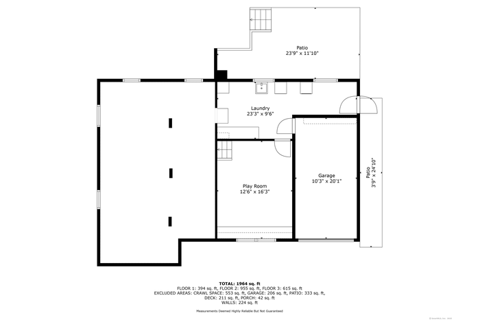The lower level consists of a media room that can serve as a home theater or office, equipped with built-in cabinets and a desk. This space is positioned near the front entry foyer, garage, and a sizable laundry/mechanical room, which includes a side entrance, workbench, and access to a crawl space for storage. The primary bedroom is located upstairs and includes an ensuite bathroom. Two additional bedrooms share a full bathroom in the hallway that has been updated.