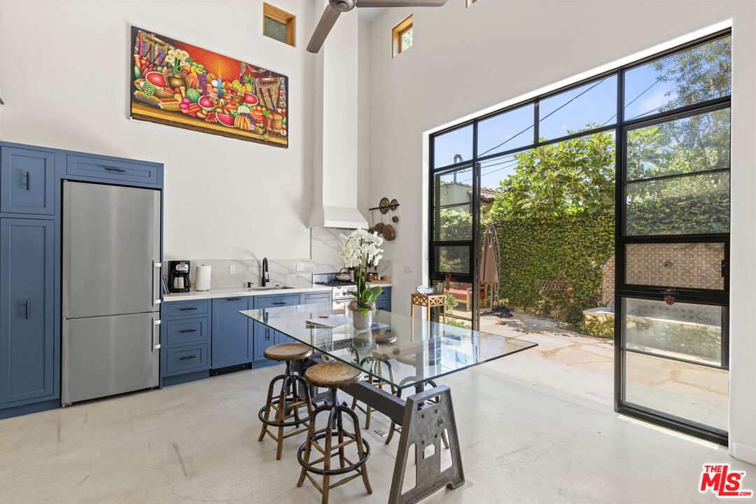 NEXT AVAILABLE DECEMBER 22nd. FULLY FURNISHED, TURN-KEY. Short term month to month. Sun filled 1000 square foot loft guest house on one of the best streets in the West Hollywood 90046 neighborhood, up the street from Paul Smith on Melrose. 21' soaring ceiling, newly constructed, concrete floors, open concept with full kitchen with state-of-the-art appliances. The oversized loft bedroom is complete with a king size bed and workspace, black out shades. Work or relax in the serene outdoor patio complemented by a fire pit, fountain and enjoy al fresco dining by the gas BBQ area. HVAC, High speed WIFI, Sono's sound and Apple TV. Full size washer and dryer included. FULL BATH plus outdoor shower. Close to studios, Cedars Sinai, stroll for coffee at Carrara Cafe, shop Sunday at the Melrose Place Farmers Market, just blocks from the Sunset Strips Tower Bar, Sunset Marquis and Nobu. Ample street parking available, city permit provided. Available month to month, short term only.