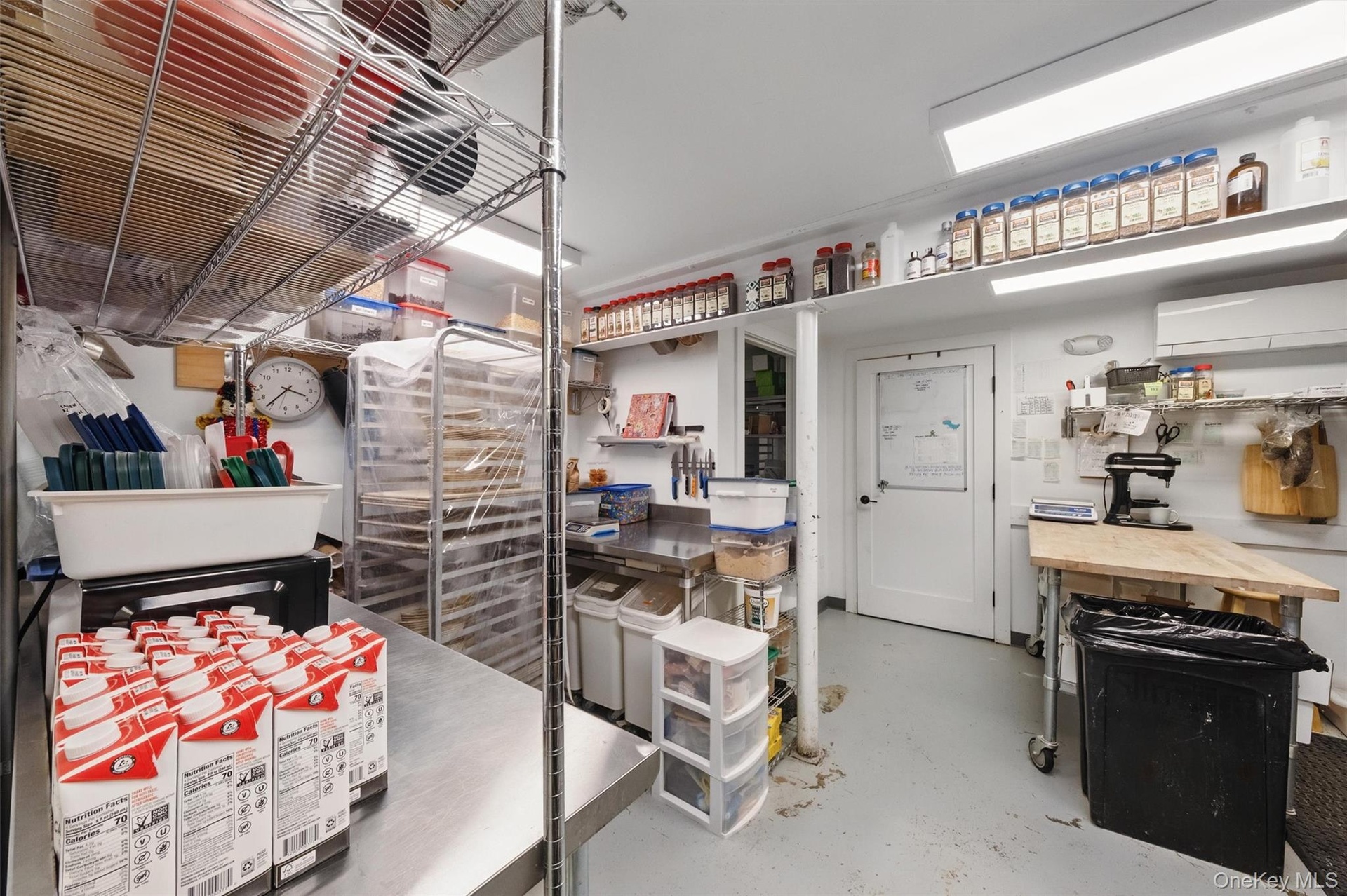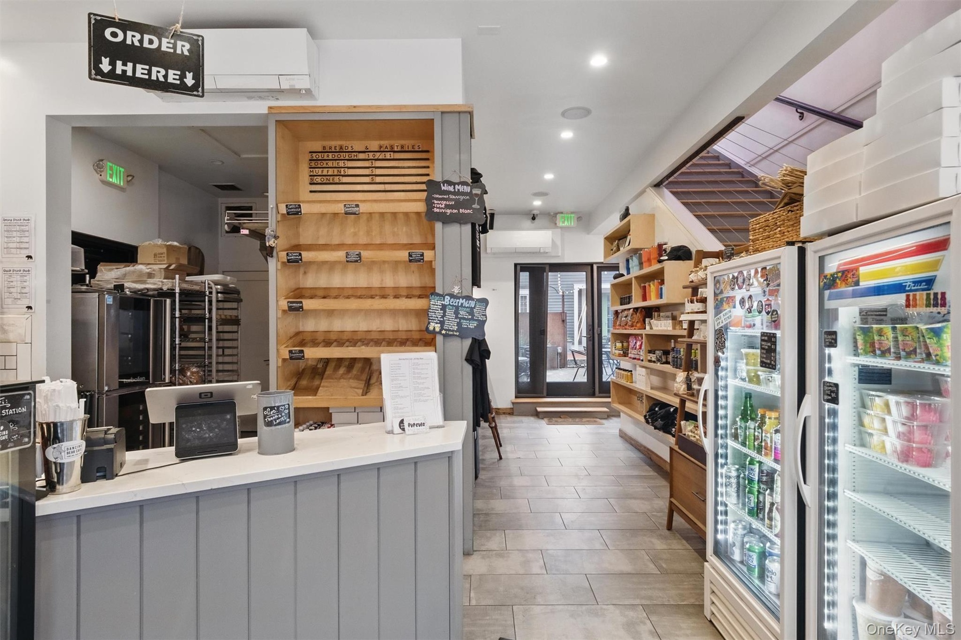 Operational highlights include a walk-in cooler, a large-scale bakery prep area on the lower level, and a high-end, commercial-grade bread oven designed for serious volume and quality. The facility also features display coolers stocked with fresh salads, grab-and-go items, and beverages for customers on the move.