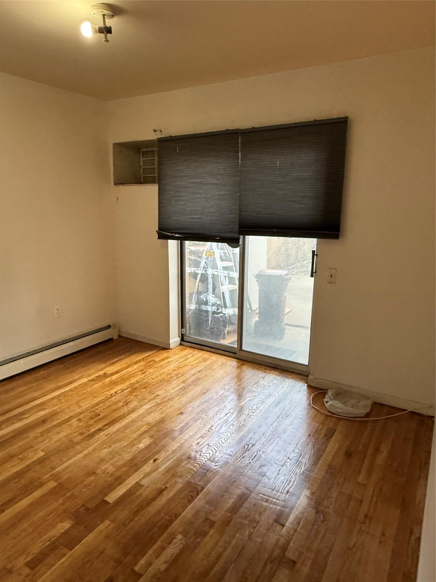 - Spare room with wood finished floors and a baseboard heating unit