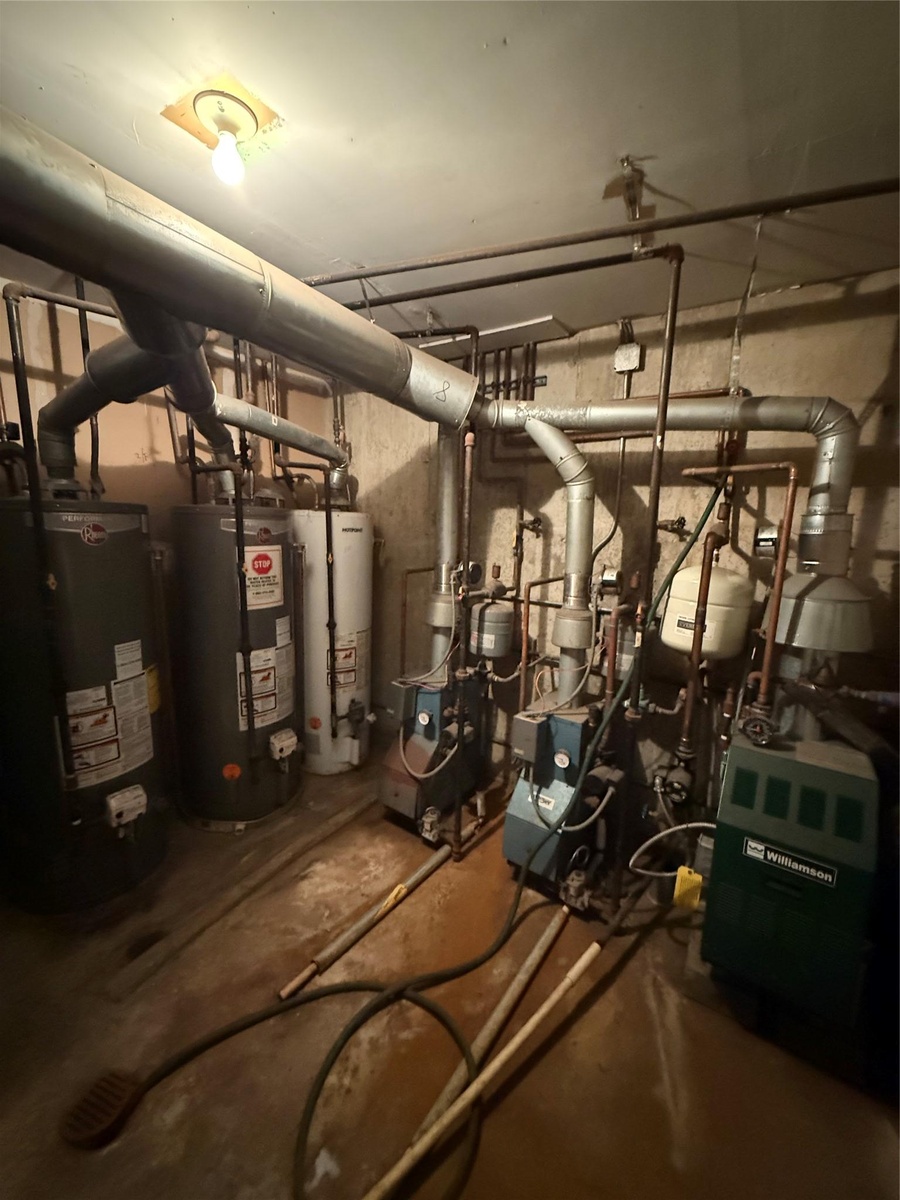 - Utilities featuring water heater and a heating unit