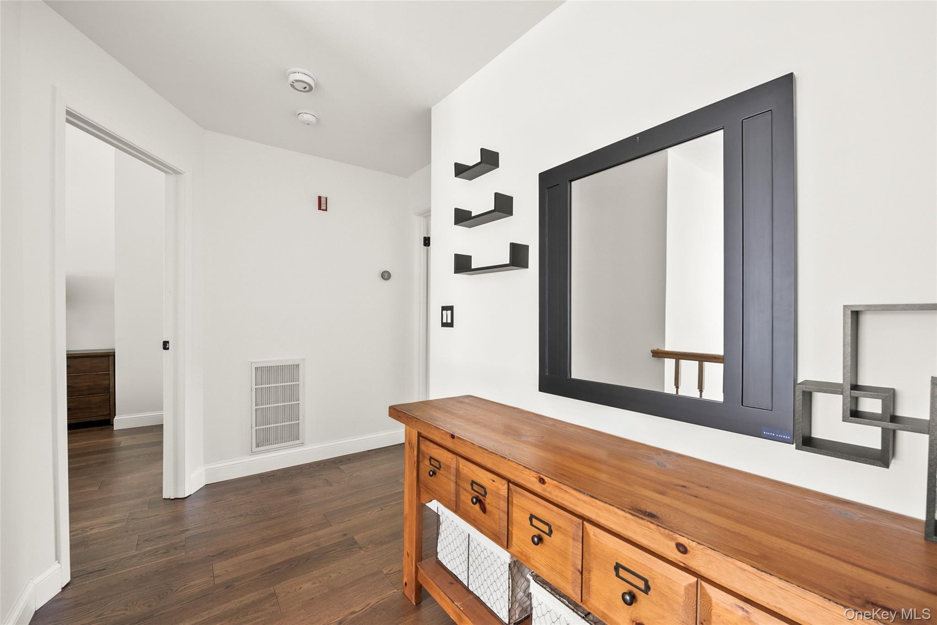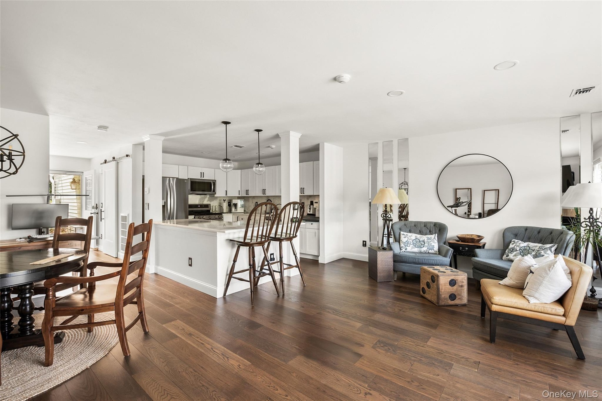 - Sitting room featuring dark wood-style flooring and recessed lighting