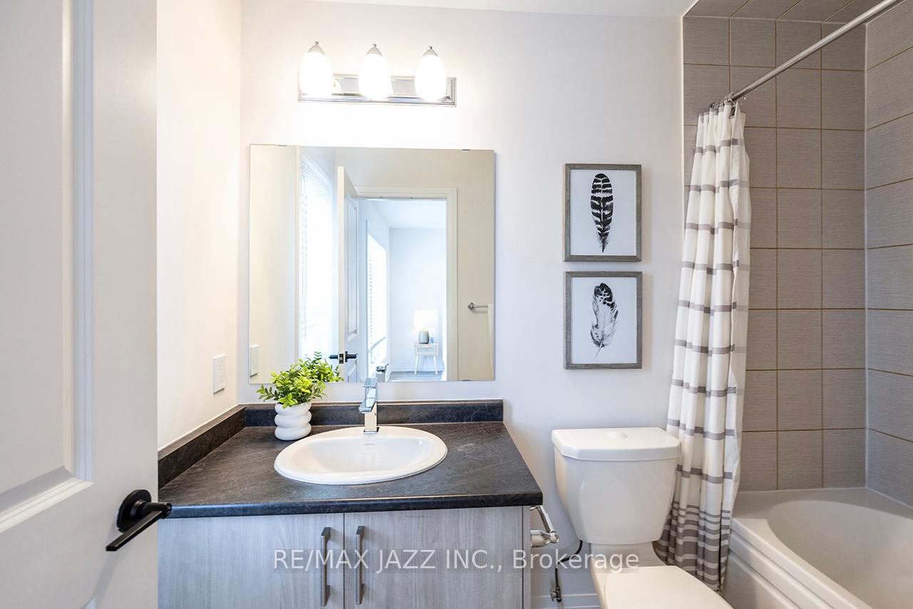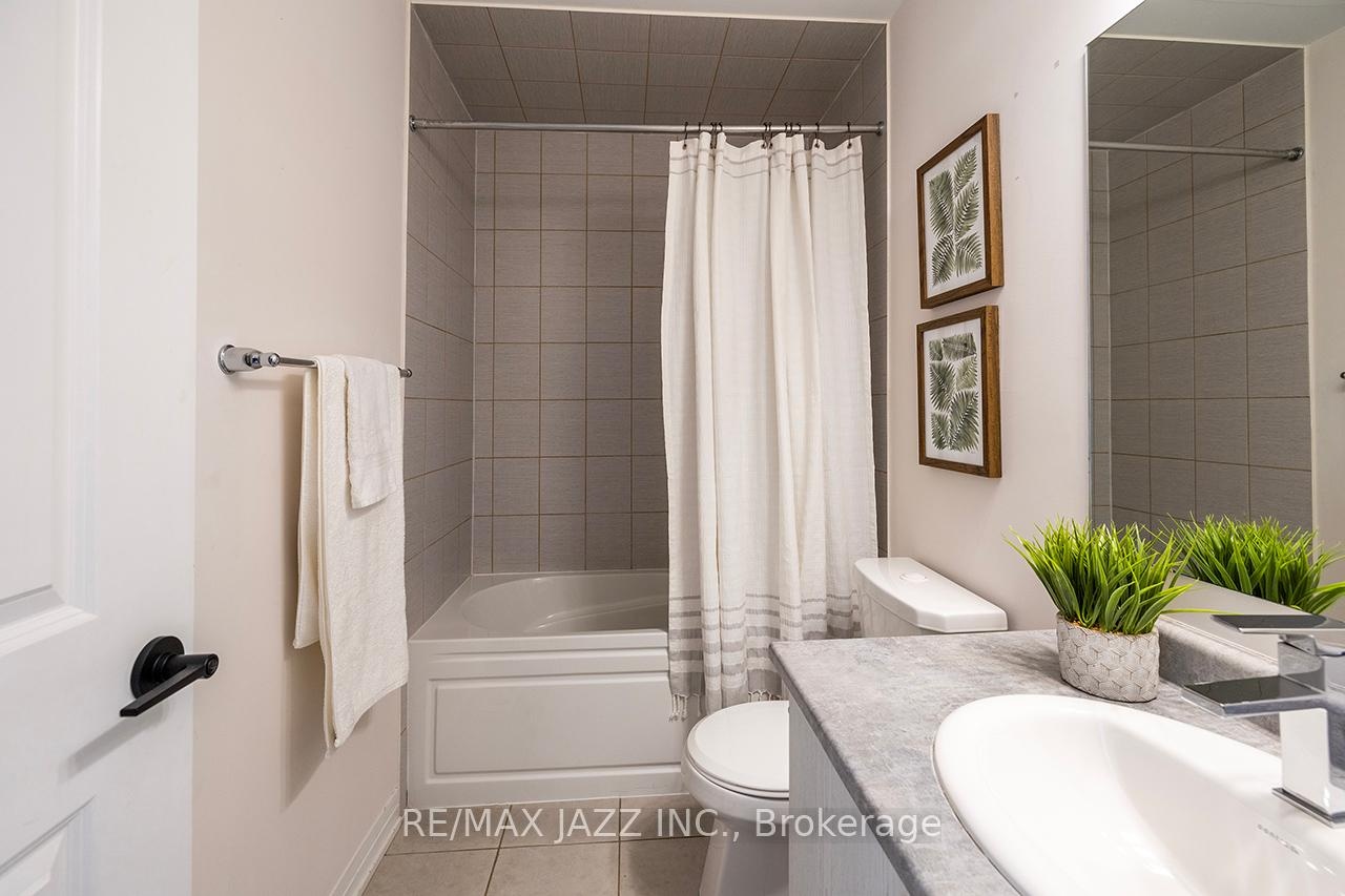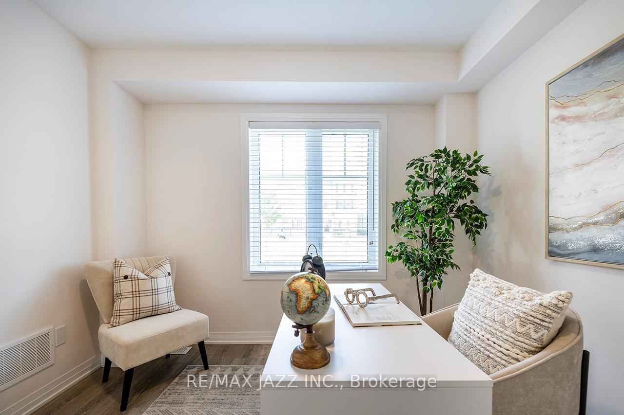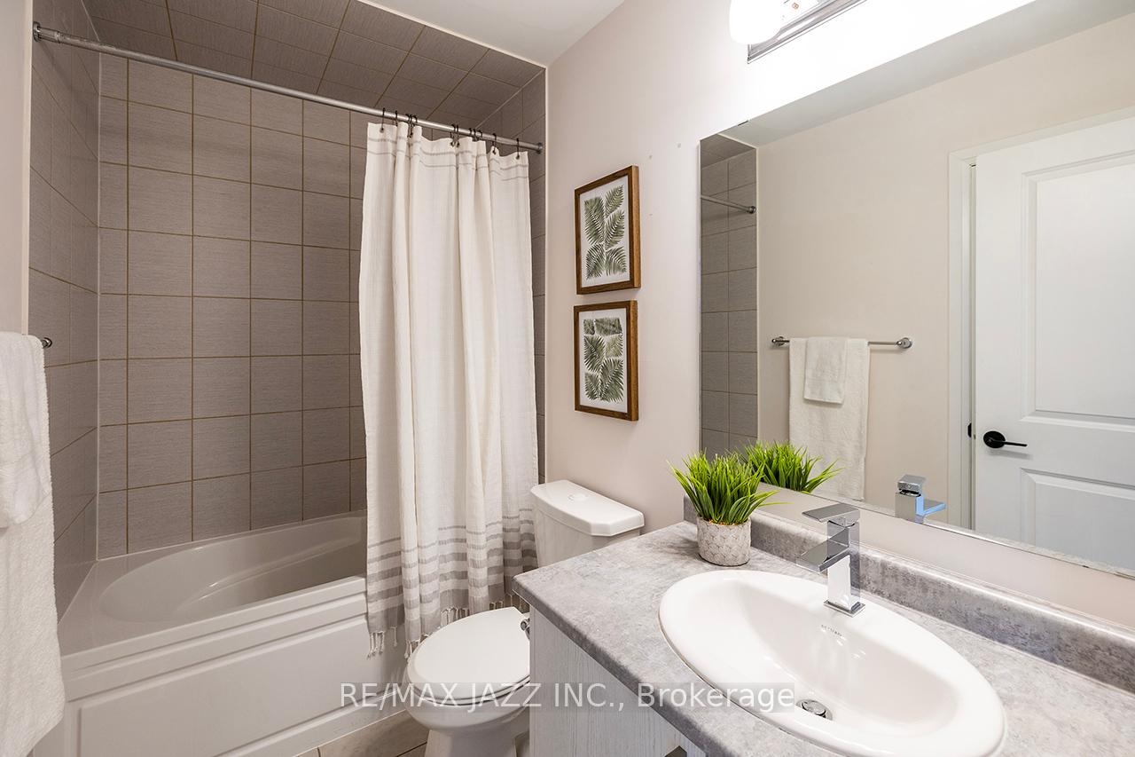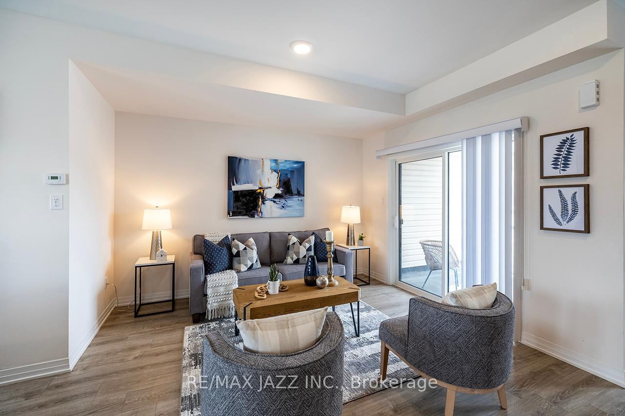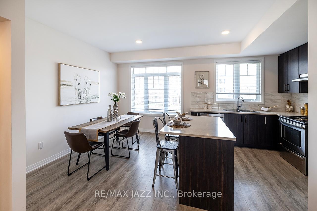 Better than new! The beautifully upgraded "Honeycrisp" model offers 1568 square feet of finished living space. This stunning executive Town-Home is still covered by the Tarion Warranty. It includes 3+1 bedrooms and 4 bathrooms, along with a gorgeous ground floor den/bedroom area that is perfect for a home office or recreation room. This fully upgraded home features laminate flooring throughout, a solid oak staircase with wrought iron spindles, indoor garage access, added convenience of front and rear entrances. The main floor boasts 9-foot ceilings and a lovely open concept design with numerous windows that allow for ample natural light. The large eat-in kitchen is equipped with a center island, quartz countertops, a custom backsplash, and stainless steel appliances. Additional highlights include a spacious covered patio, pot lighting, upgraded window coverings, central air conditioning with a full HRV system, energy-efficient tankless water on demand. This home truly has it all! The upper level contains 3 full bedrooms, with the primary bedroom featuring a full ensuite bath and a walk-in closet. It is simply immaculate and ready for you to move in. Dont hesitate on this one! Its located in an excellent family-friendly area, close to all amenities: schools, parks, shopping, and highways 407/401, among many others. Check out the HD video - its a perfect 10!
