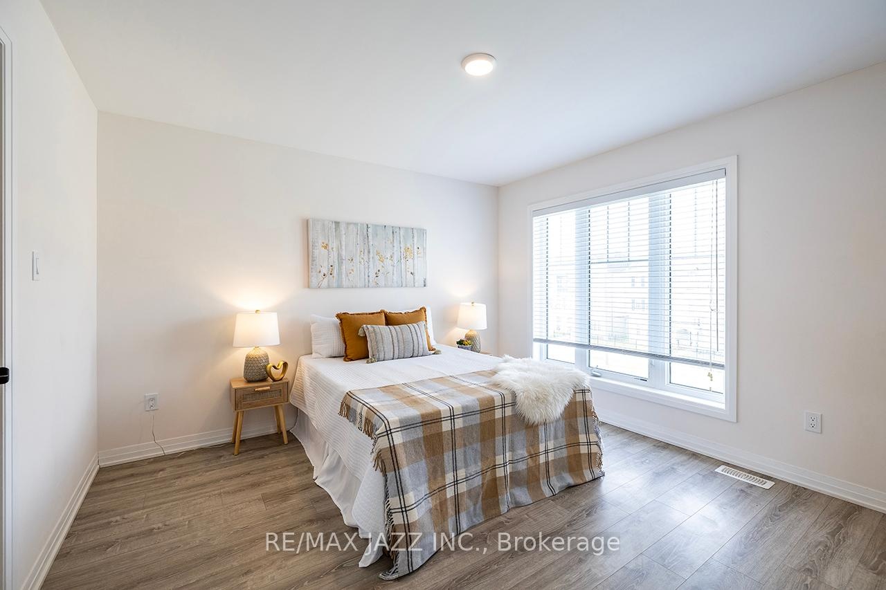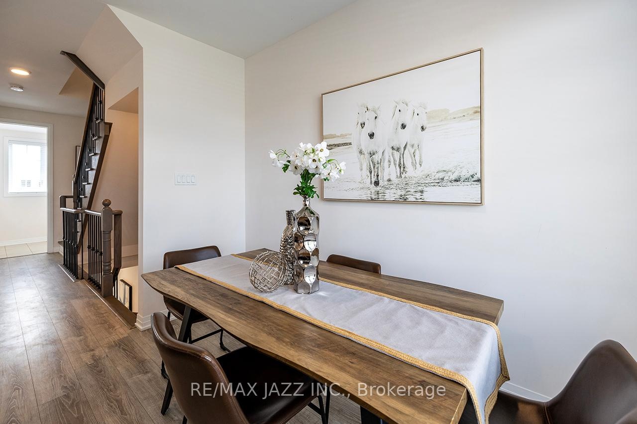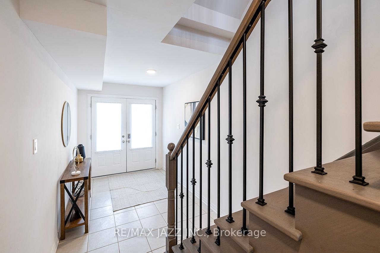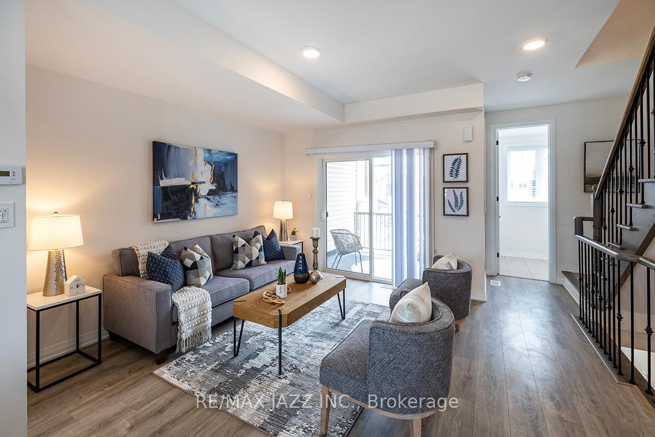 DescriptionBetter than new! The beautifully upgraded "Honeycrisp" model offers 1568 square feet of finished living space. This stunning executive Town-Home is still covered by the Tarion Warranty. It includes 3+1 bedrooms and 4 bathrooms, along with a gorgeous ground floor den/bedroom area that is perfect for a home office or recreation room. This fully upgraded home features laminate flooring throughout, a solid oak staircase with wrought iron spindles, indoor garage access, added convenience of front and rear entrances. The main floor boasts 9-foot ceilings and a lovely open concept design with numerous windows that allow for ample natural light. The large eat-in kitchen is equipped with a center island, quartz countertops, a custom backsplash, and stainless steel appliances. Additional highlights include a spacious covered patio, pot lighting, upgraded window coverings, central air conditioning with a full HRV system, energy-efficient tankless water on demand. This home truly has it all! The upper level contains 3 full bedrooms, with the primary bedroom featuring a full ensuite bath and a walk-in closet. It is simply immaculate and ready for you to move in. Dont hesitate on this one! Its located in an excellent family-friendly area, close to all amenities: schools, parks, shopping, and highways 407/401, among many others. Check out the HD video - its a perfect 10!Virtual Tour: https://vimeo.com/1089329709?share=copy#t=0Amenities- ERV/HRV