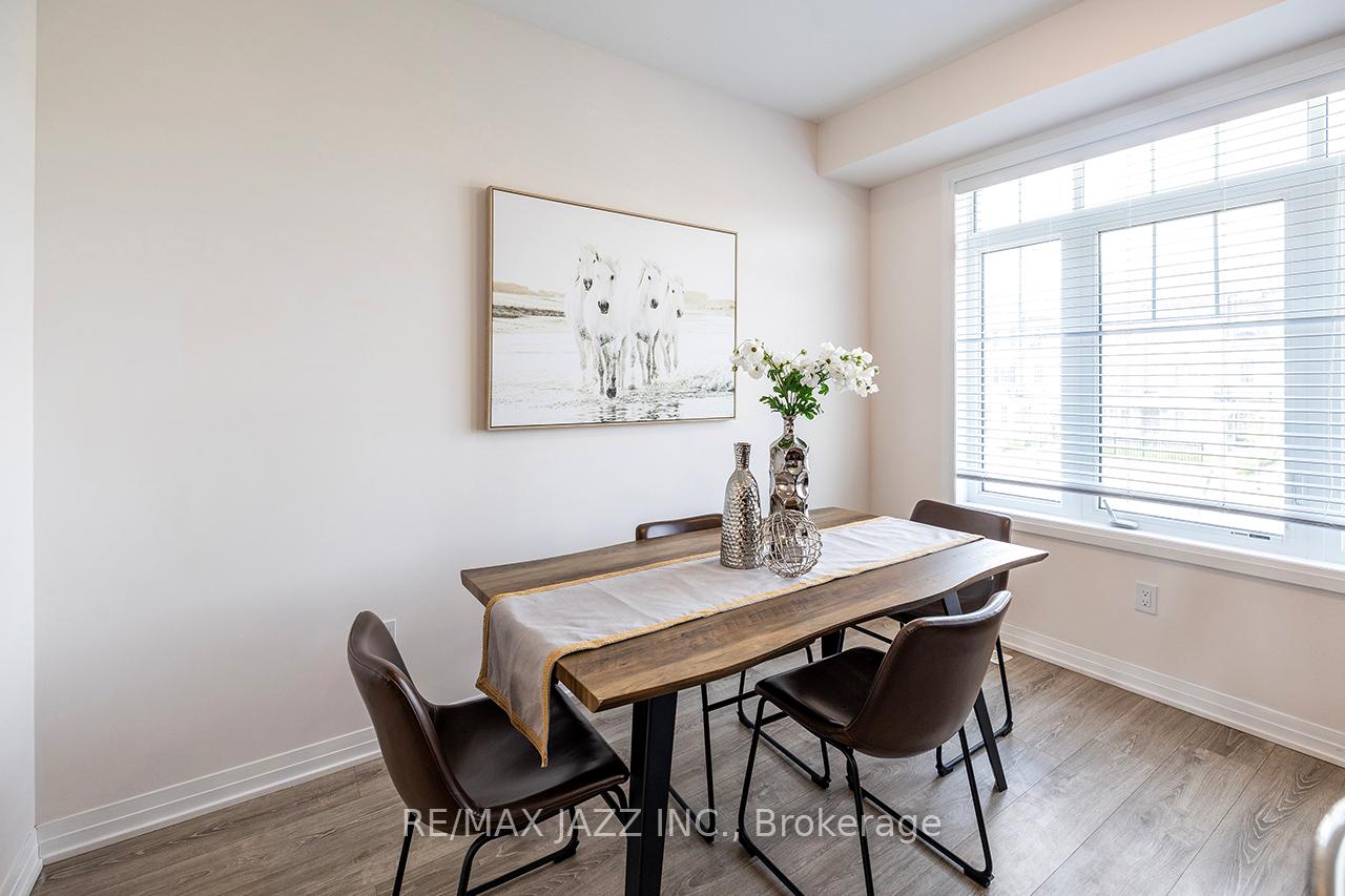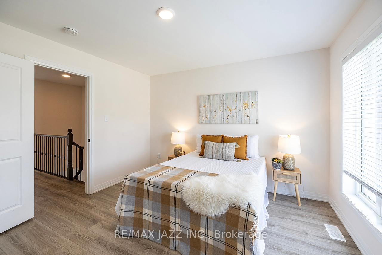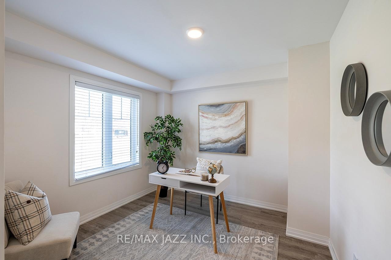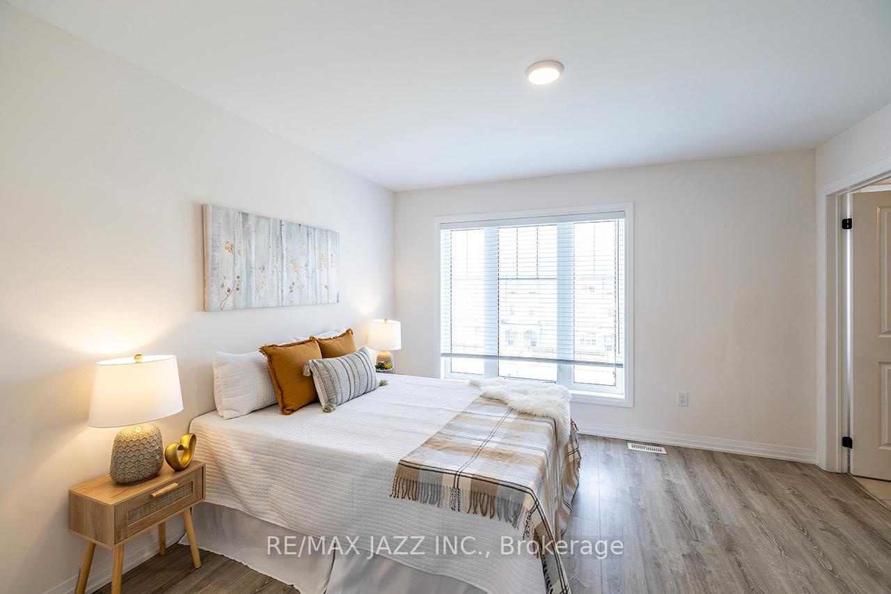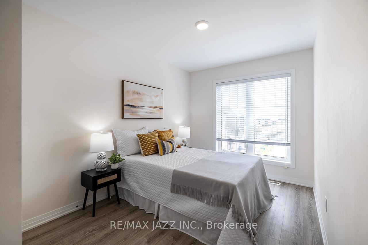 DescriptionBetter than new! The beautifully upgraded "Honeycrisp" model offers 1568 square feet of finished living space. This stunning executive Town-Home is still covered by the Tarion Warranty. It includes 3+1 bedrooms and 4 bathrooms, along with a gorgeous ground floor den/bedroom area that is perfect for a home office or recreation room. This fully upgraded home features laminate flooring throughout, a solid oak staircase with wrought iron spindles, indoor garage access, added convenience of front and rear entrances. The main floor boasts 9-foot ceilings and a lovely open concept design with numerous windows that allow for ample natural light. The large eat-in kitchen is equipped with a center island, quartz countertops, a custom backsplash, and stainless steel appliances. Additional highlights include a spacious covered patio, pot lighting, upgraded window coverings, central air conditioning with a full HRV system, energy-efficient tankless water on demand. This home truly has it all! The upper level contains 3 full bedrooms, with the primary bedroom featuring a full ensuite bath and a walk-in closet. It is simply immaculate and ready for you to move in. Dont hesitate on this one! Its located in an excellent family-friendly area, close to all amenities: schools, parks, shopping, and highways 407/401, among many others. Check out the HD video - its a perfect 10!Virtual Tour: https://vimeo.com/1089329709?share=copy#t=0Amenities- ERV/HRV