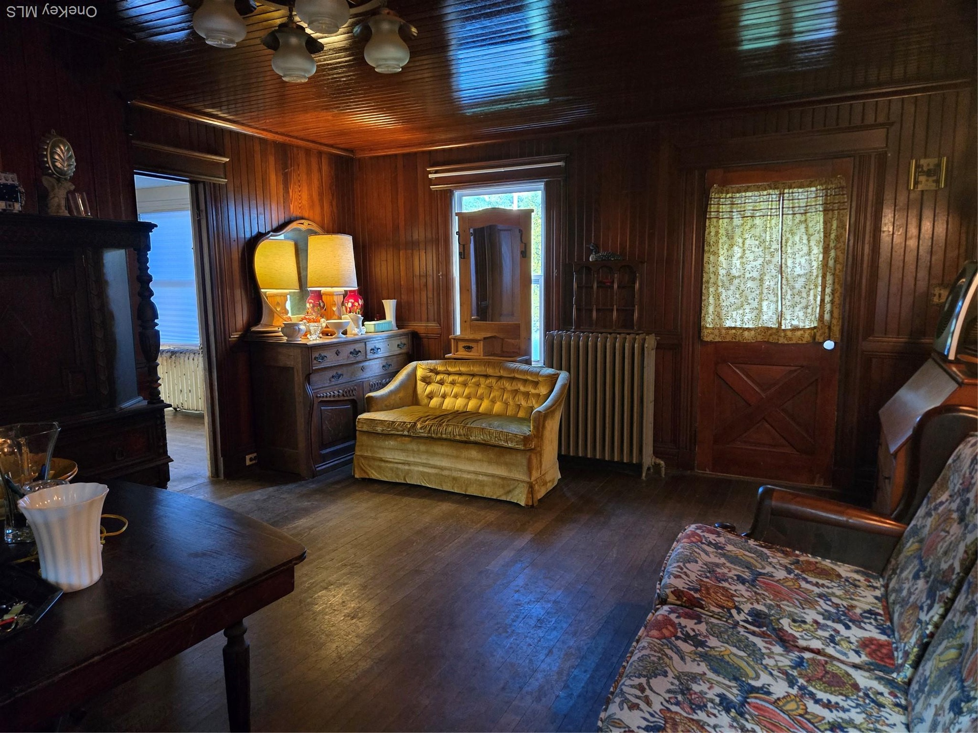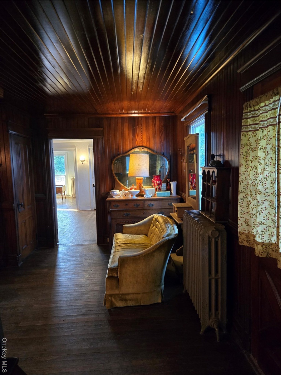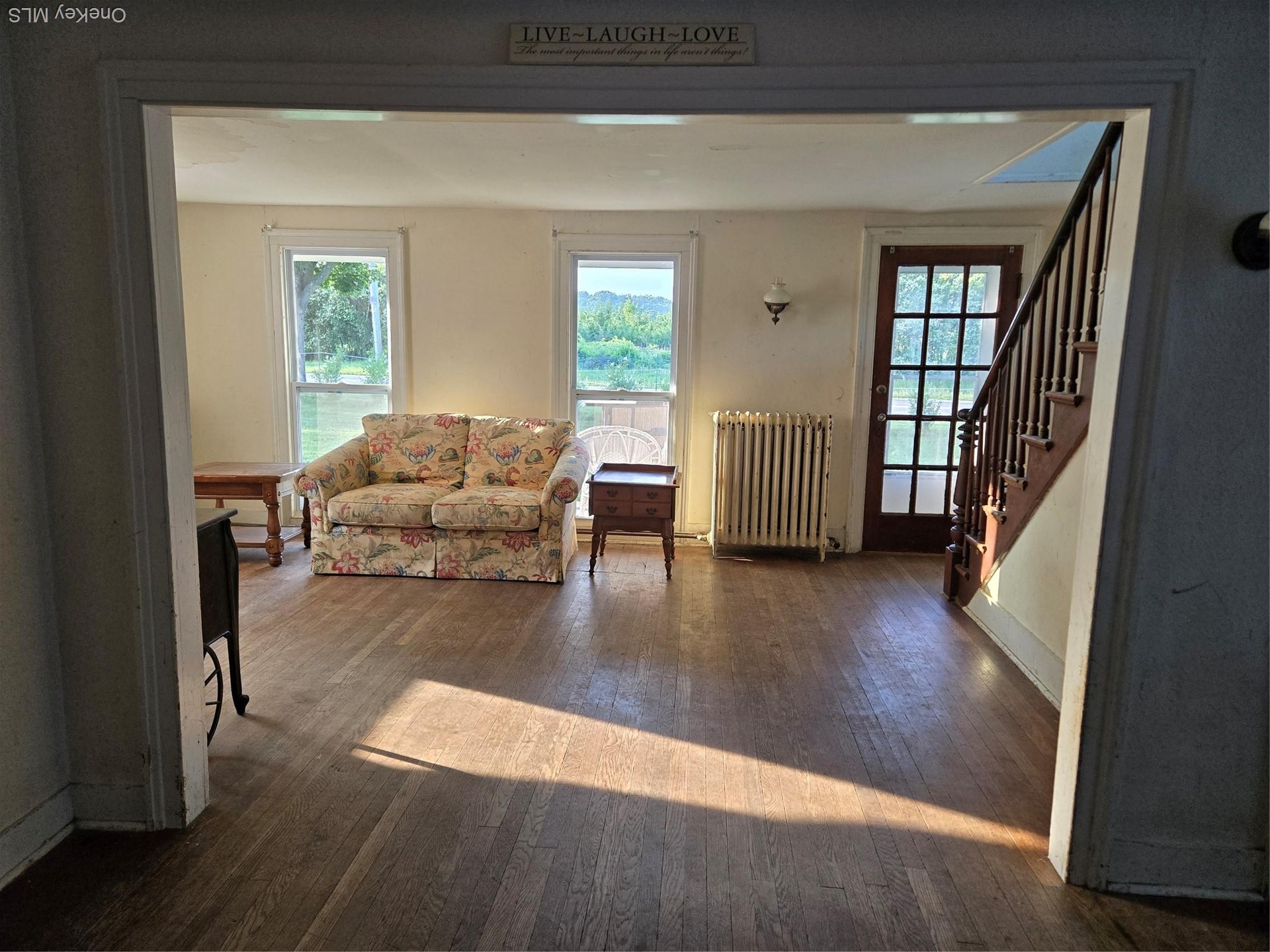 - Foyer entrance featuring radiator heating unit, hardwood / wood-style flooring, and plenty of natural light