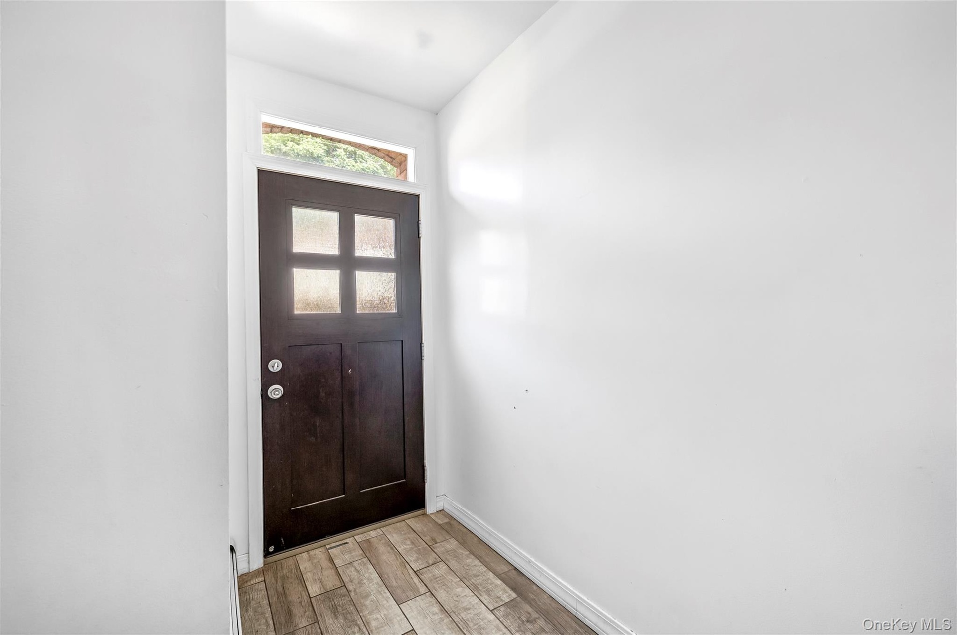 - Foyer with light wood-style floors and baseboards