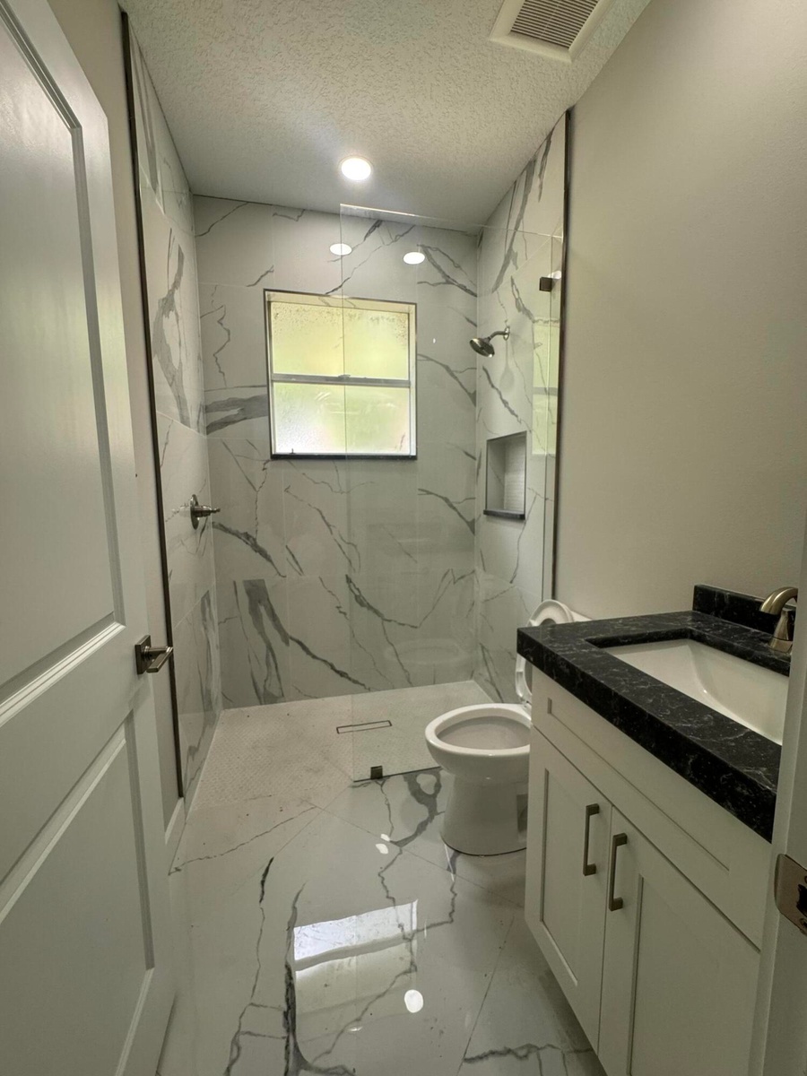 COMPLETELY REMODELED 4 BEDROOMS AND 2 AND 1/2 BATHROOMS. BRAND NEW UPSCALE SOFT TOUCH KITCHEN CABINETS WITH QUARTZ COUNTER TOPS AND TILED BACKSPLASH. ELEGANT REDONE BATHROOMS TILED TO THE CEILING WITH HIGH END FRAMELESS GLASS SHOWER DOORS AND RAINFALL SHOWER. 33'' PORCELAIN TILE THROUGHOUT. LARGE WALK IN CLOSETS. STAINLESS STEEL APPLIANCES. NEWER METAL ROOF. BRAND NEW A/C, WATER HEATER AND UPGRADED ELECTRIC. LARGE INGROUND POOL WITH SCREENED PATIO. LAKE VIEW. LOCATED IN A CUL DE SAC LOT.