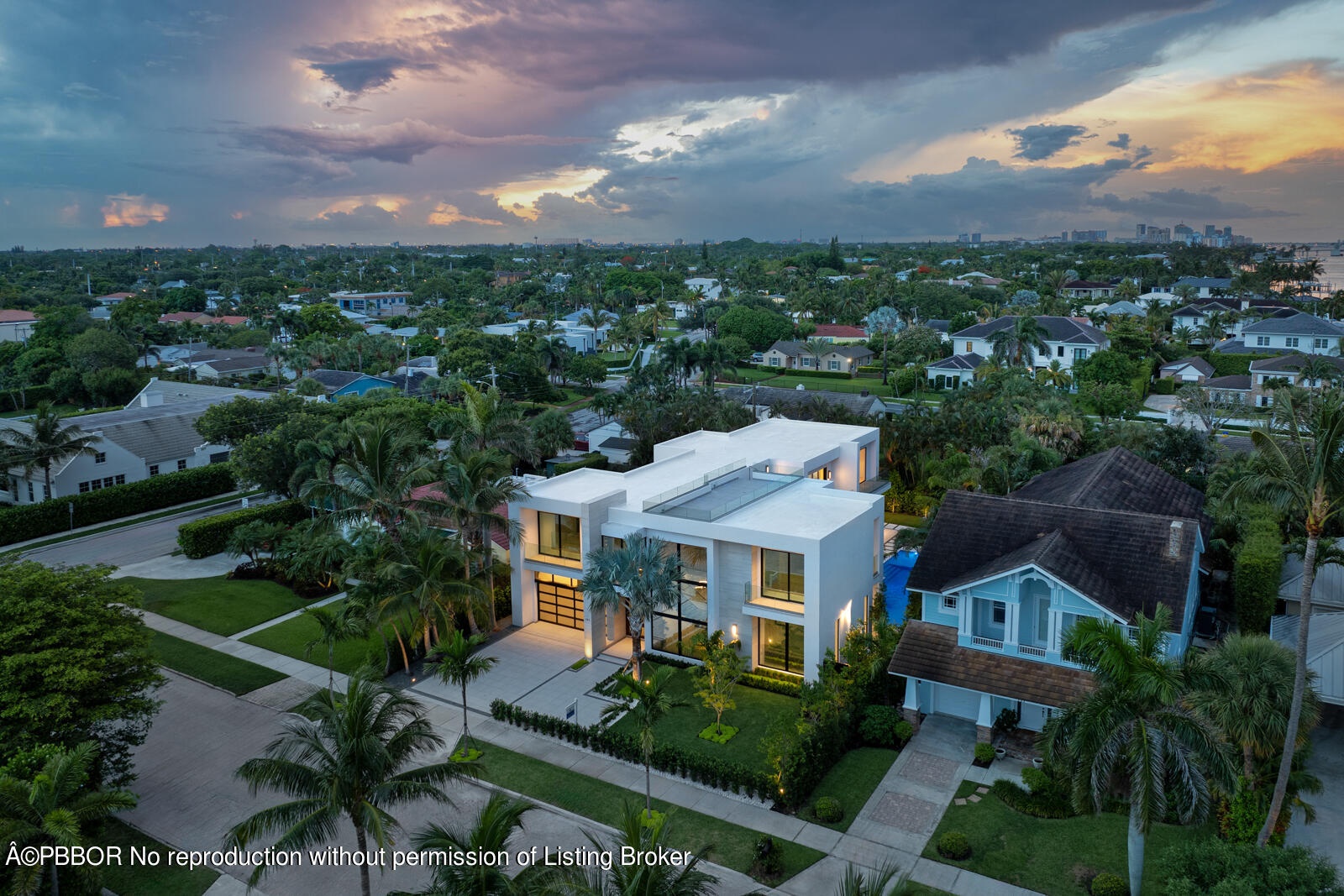 Experience cutting-edge design and comfort at 141 Cortez Rd. in W.P.B.'s prestigious SoSo area, near the Intracoastal. This 6,774 sq. ft. home epitomizes modern luxury, offering sophistication and ease. Highlights include a grand entry foyer with a magnificent staircase, a state-of-the-art media room, and a chef's kitchen with high-end appliances and wood-accented ceilings. The stylish dining area provides pool views. The living room features a fireplace and wet bar, perfect for entertaining. The attached guest house includes a kitchenette and private balcony. The owner's suite boasts dual baths and a balcony overlooking the pool. Enjoy the rooftop deck with stunning views. Additional features include a luxurious elevator, Control4 automation, laundry on both floors, and a 60 kW generator Welcome to 141 Cortez Rd., where cutting-edge design meets unparalleled comfort in the heart of West Palm Beach's prestigious SoSo area, just four homes away from the Intracoastal. This extraordinary home boasts 6,774 sq. ft. of air-conditioned space and is a testament to modern luxury, offering a lifestyle of sophistication and ease.