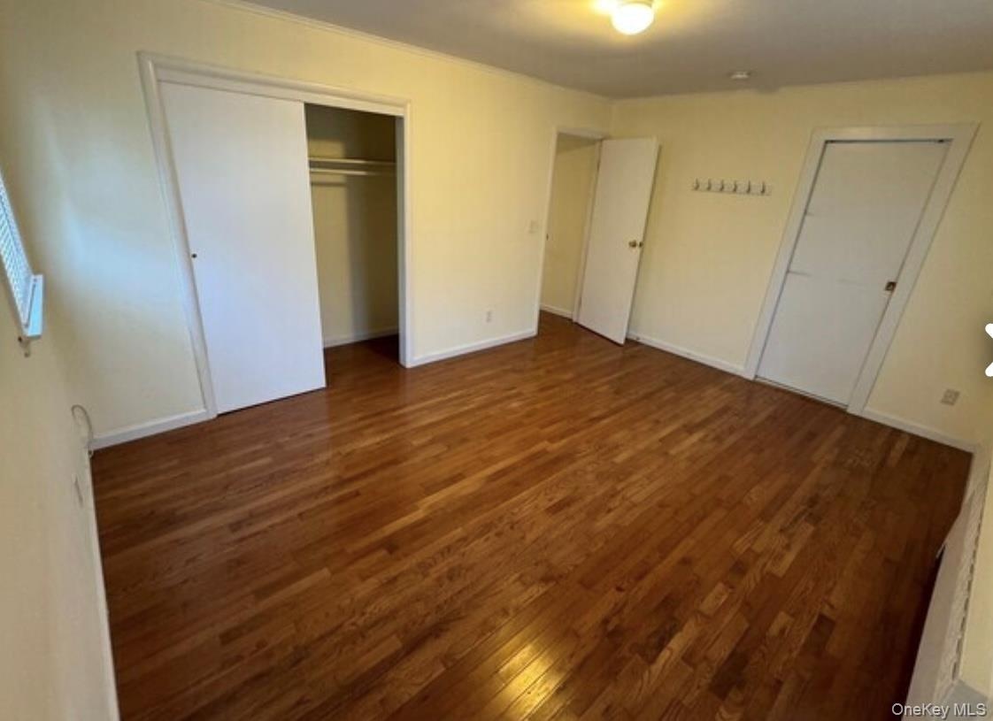 - Unfurnished bedroom featuring wood finished floors and a closet