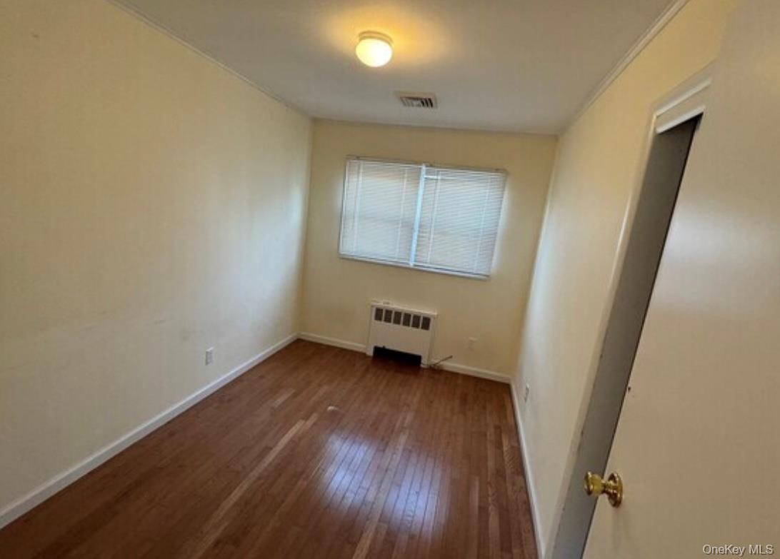 - Spare room featuring radiator and hardwood / wood-style flooring