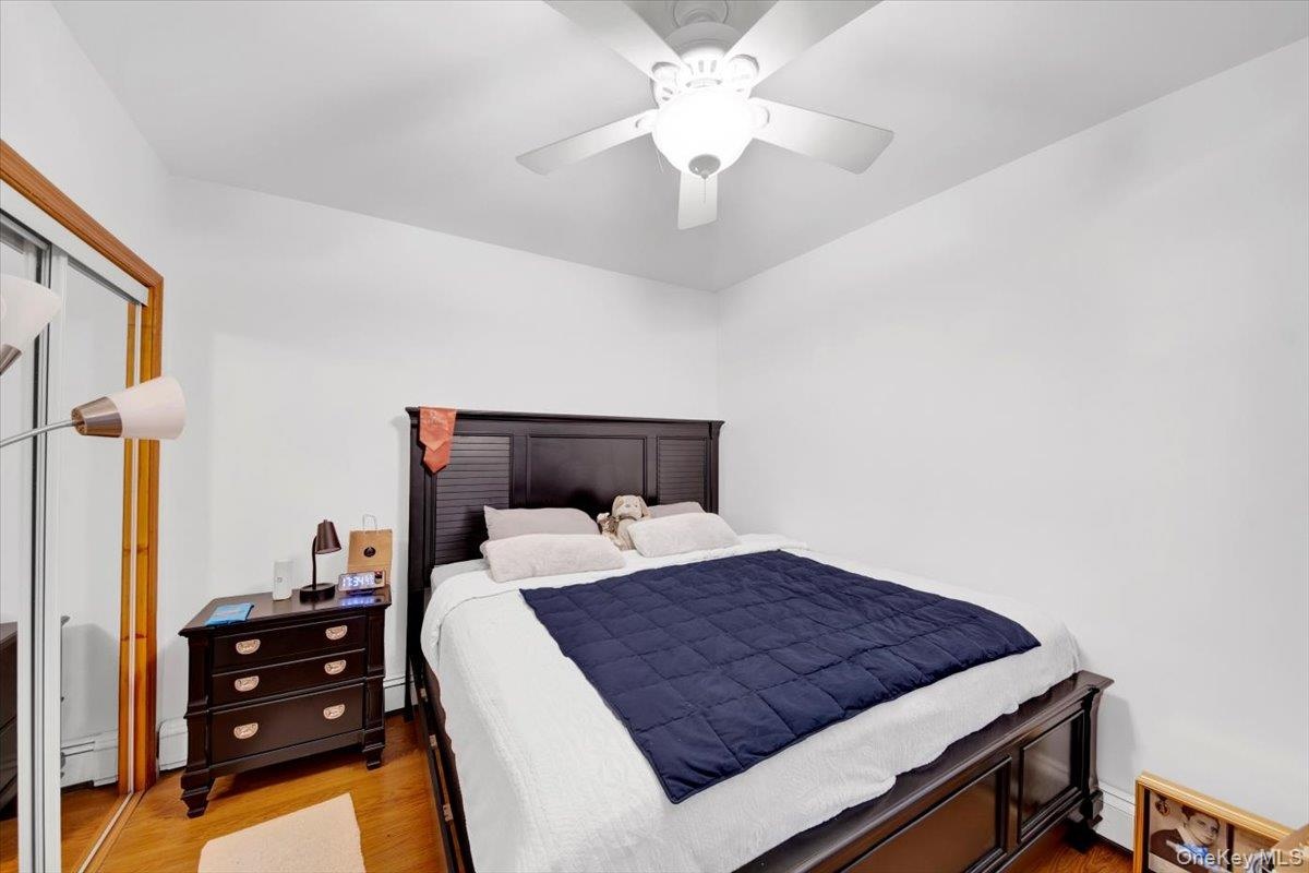 - Bedroom featuring light wood-style flooring and a ceiling fan