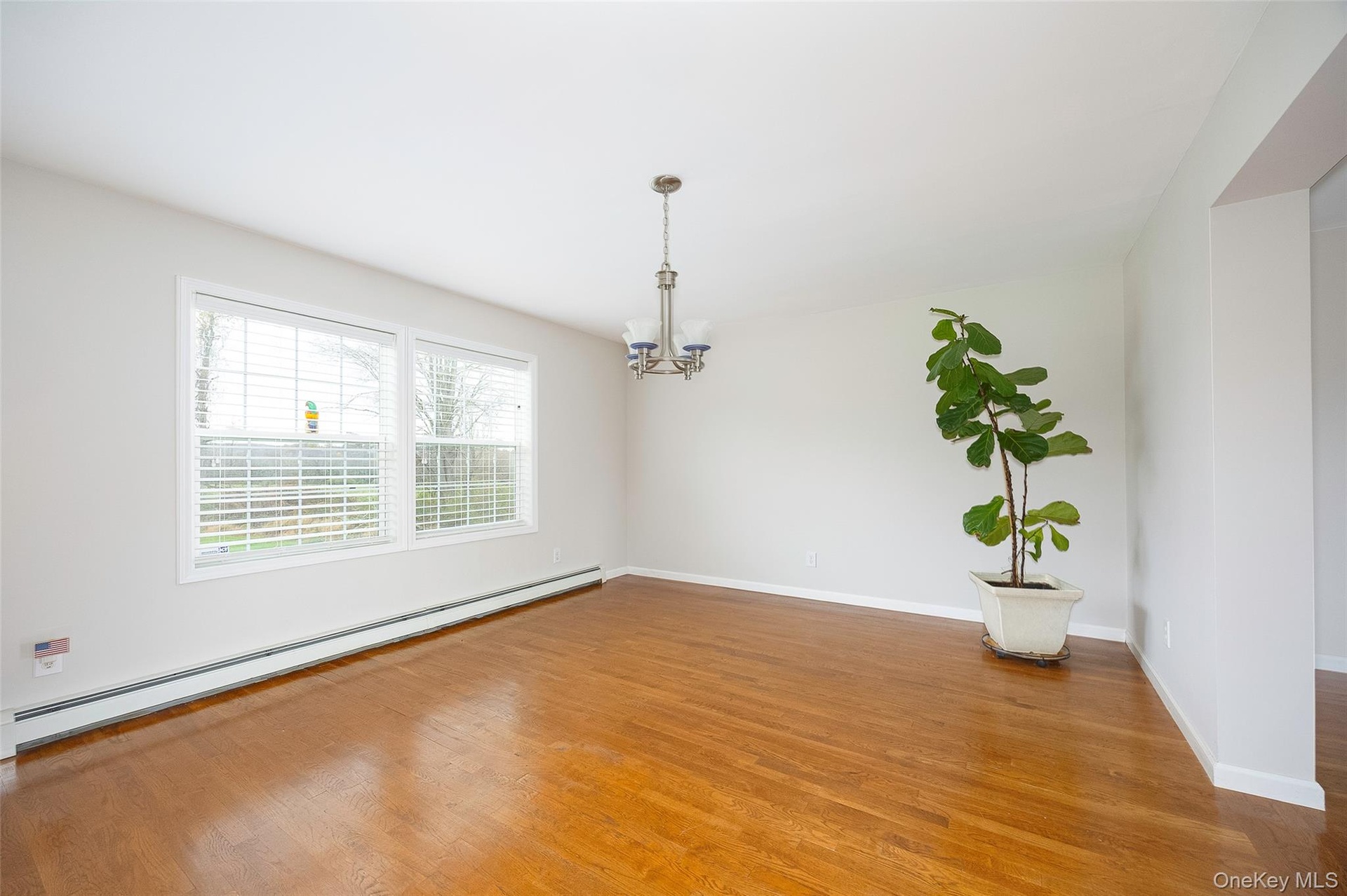 - great for entertaining spacious area, wood finished floors, and a chandelier