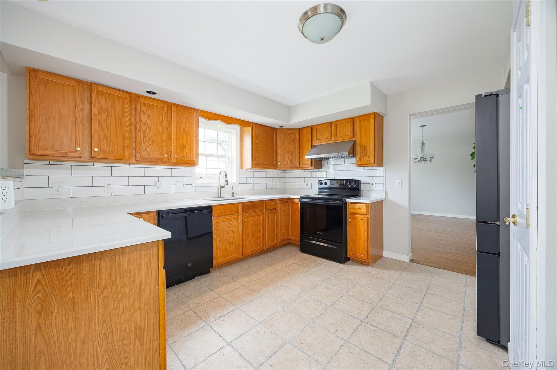 - Kitchen with new ceramic tile back splash, all appliances, custom cabinets, new counter tops