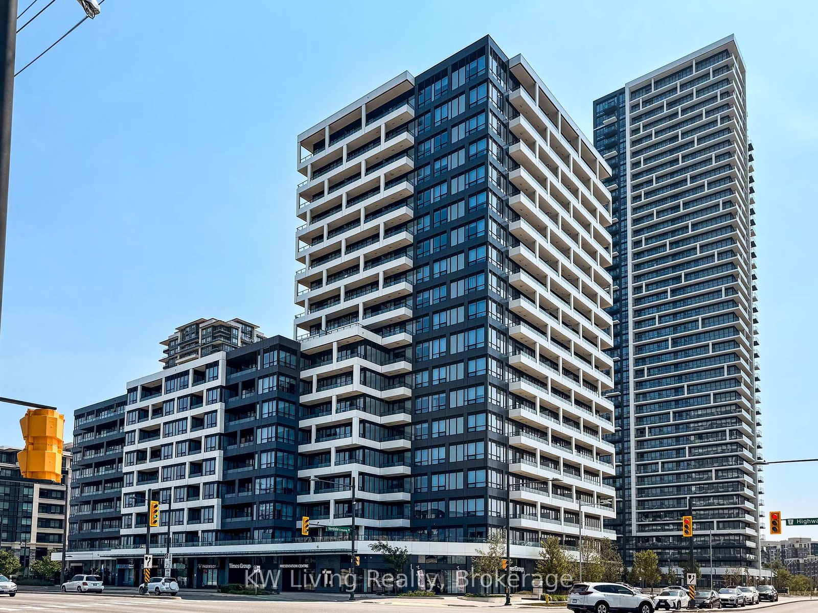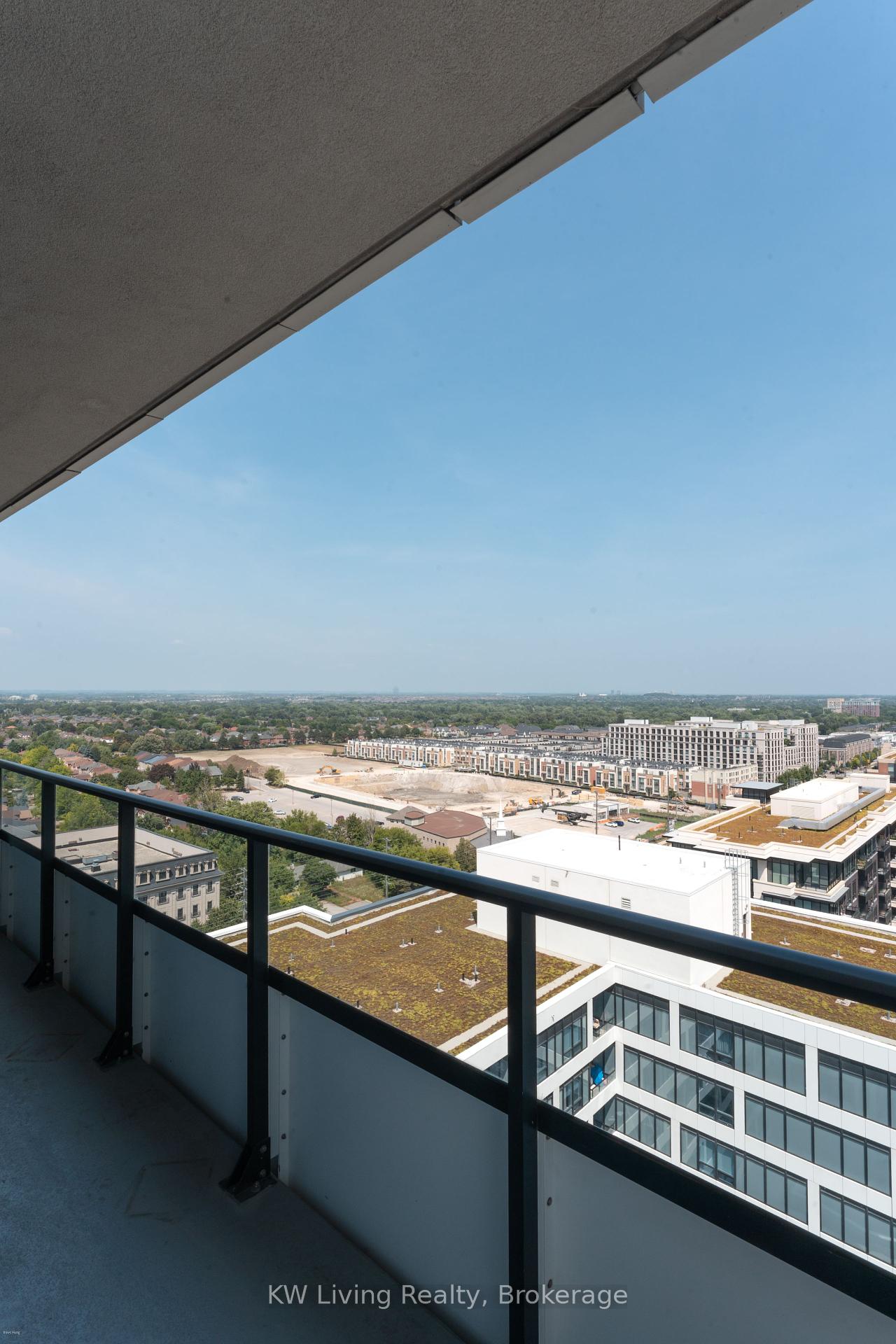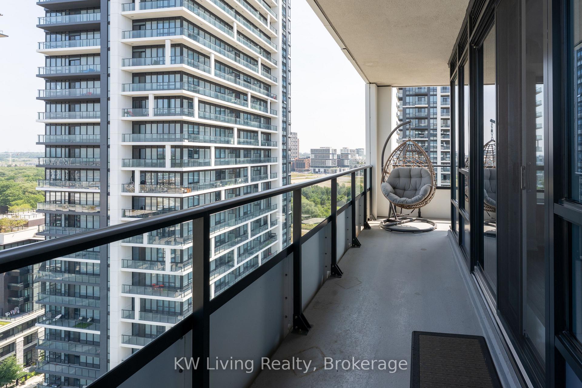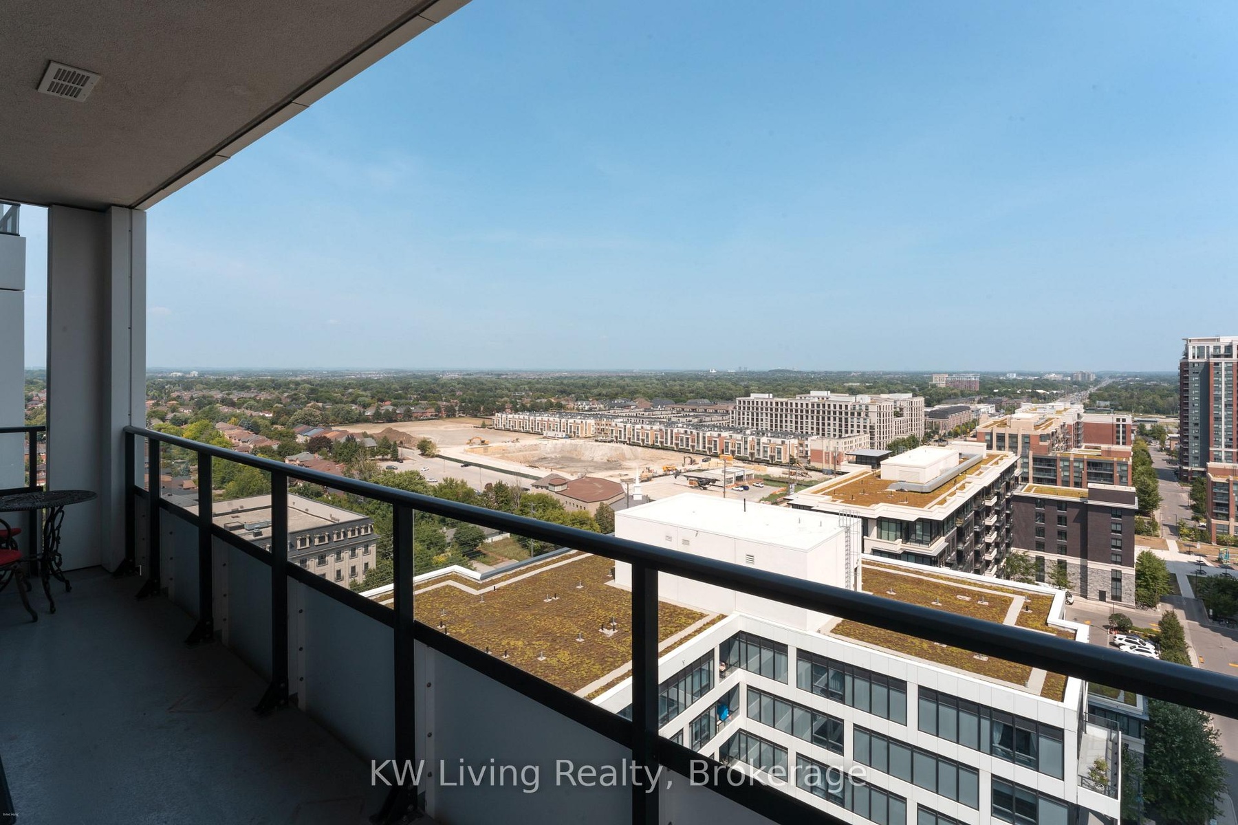 Riverview 2 Condos - Rare Corner Suite with Wrap-Around Balcony | 2 Bed + Den 1,056 Sq.Ft. I Parking. Act fast-this is one of the most sought-after layouts at Riverview 2 by Times Group in Downtown Markham. This bright and spacious 2-bedroom plus den corner unit spans 1,056 sq.ft. of highly functional space and features a premium wrap-around balcony offering panoramic views. Designed for comfort and flexibility, the split-bedroom floor plan allows for maximum privacy and efficient use of space. The den is perfect for a home office or additional living area. Floor-to-ceiling windows flood the living space with natural light, while the open-concept kitchen boasts modern cabinetry, quartz countertops, and full-size stainless steel appliances. Enjoy the best of both worlds: a calm, walkable community with top-tier amenities and rapid access to major routes. Included are one underground parking spot and a dedicated locker for added storage. Residents enjoy a 24-hour concierge, a state-of-the-art fitness centre, party room, rooftop terrace, and visitor parking. Located in the heart of Markham's thriving urban centre-steps to VIVA Transit, shops, Whole Foods, top restaurants, Cineplex, parks, and trails. Minutes to Highway 407 and 404.