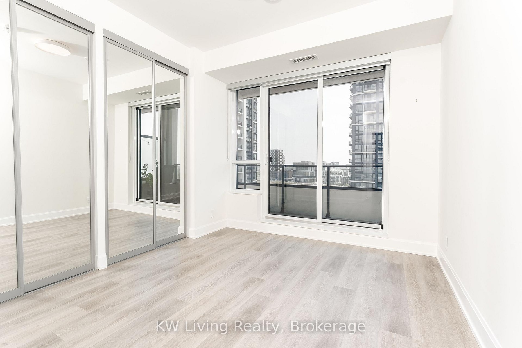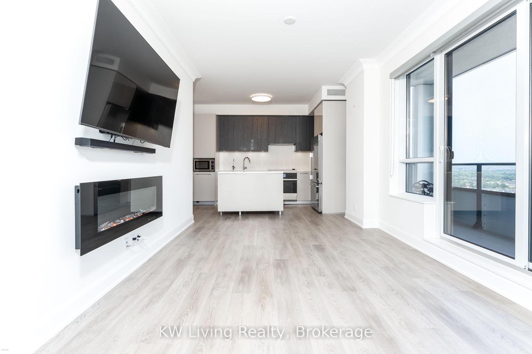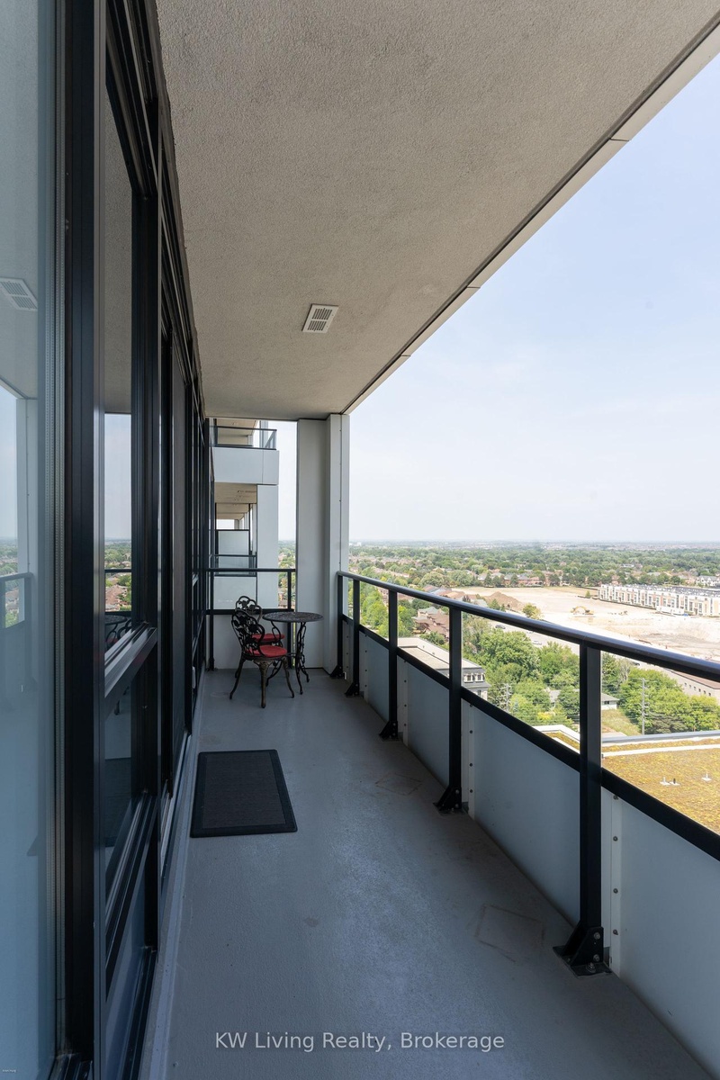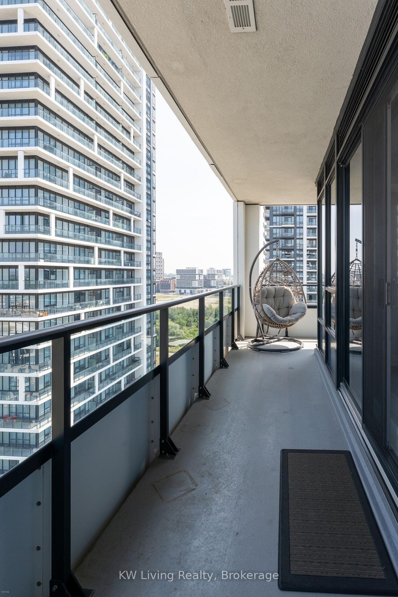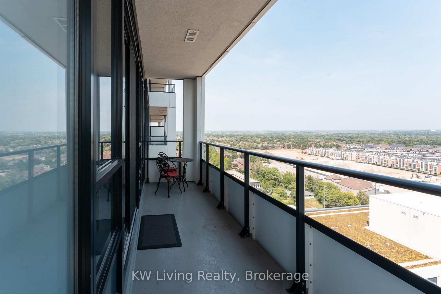 Riverview 2 Condos - Rare Corner Suite with Wrap-Around Balcony | 2 Bed + Den 1,056 Sq.Ft. I Parking. Act fast-this is one of the most sought-after layouts at Riverview 2 by Times Group in Downtown Markham. This bright and spacious 2-bedroom plus den corner unit spans 1,056 sq.ft. of highly functional space and features a premium wrap-around balcony offering panoramic views. Designed for comfort and flexibility, the split-bedroom floor plan allows for maximum privacy and efficient use of space. The den is perfect for a home office or additional living area. Floor-to-ceiling windows flood the living space with natural light, while the open-concept kitchen boasts modern cabinetry, quartz countertops, and full-size stainless steel appliances. Enjoy the best of both worlds: a calm, walkable community with top-tier amenities and rapid access to major routes. Included are one underground parking spot and a dedicated locker for added storage. Residents enjoy a 24-hour concierge, a state-of-the-art fitness centre, party room, rooftop terrace, and visitor parking. Located in the heart of Markham's thriving urban centre-steps to VIVA Transit, shops, Whole Foods, top restaurants, Cineplex, parks, and trails. Minutes to Highway 407 and 404.