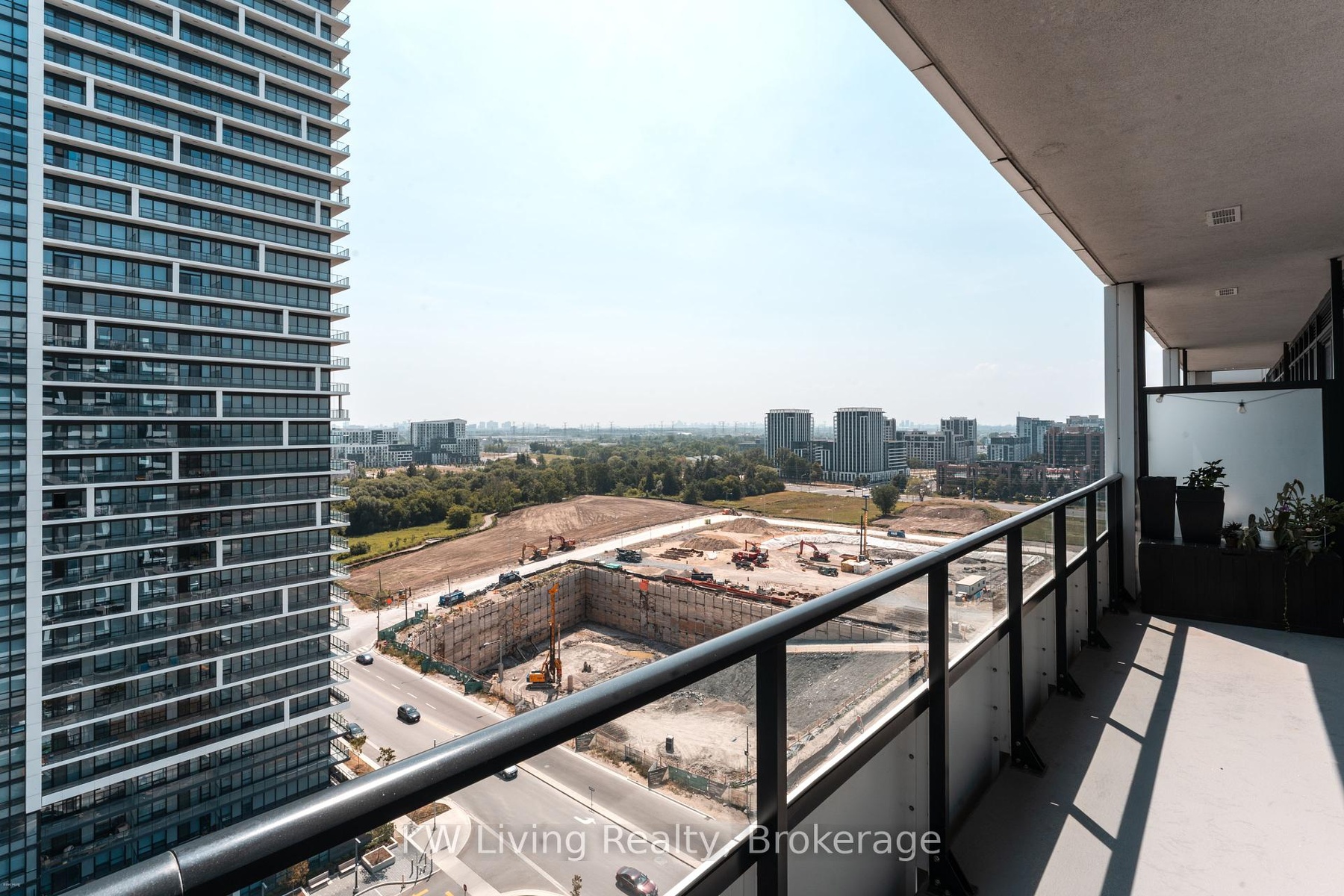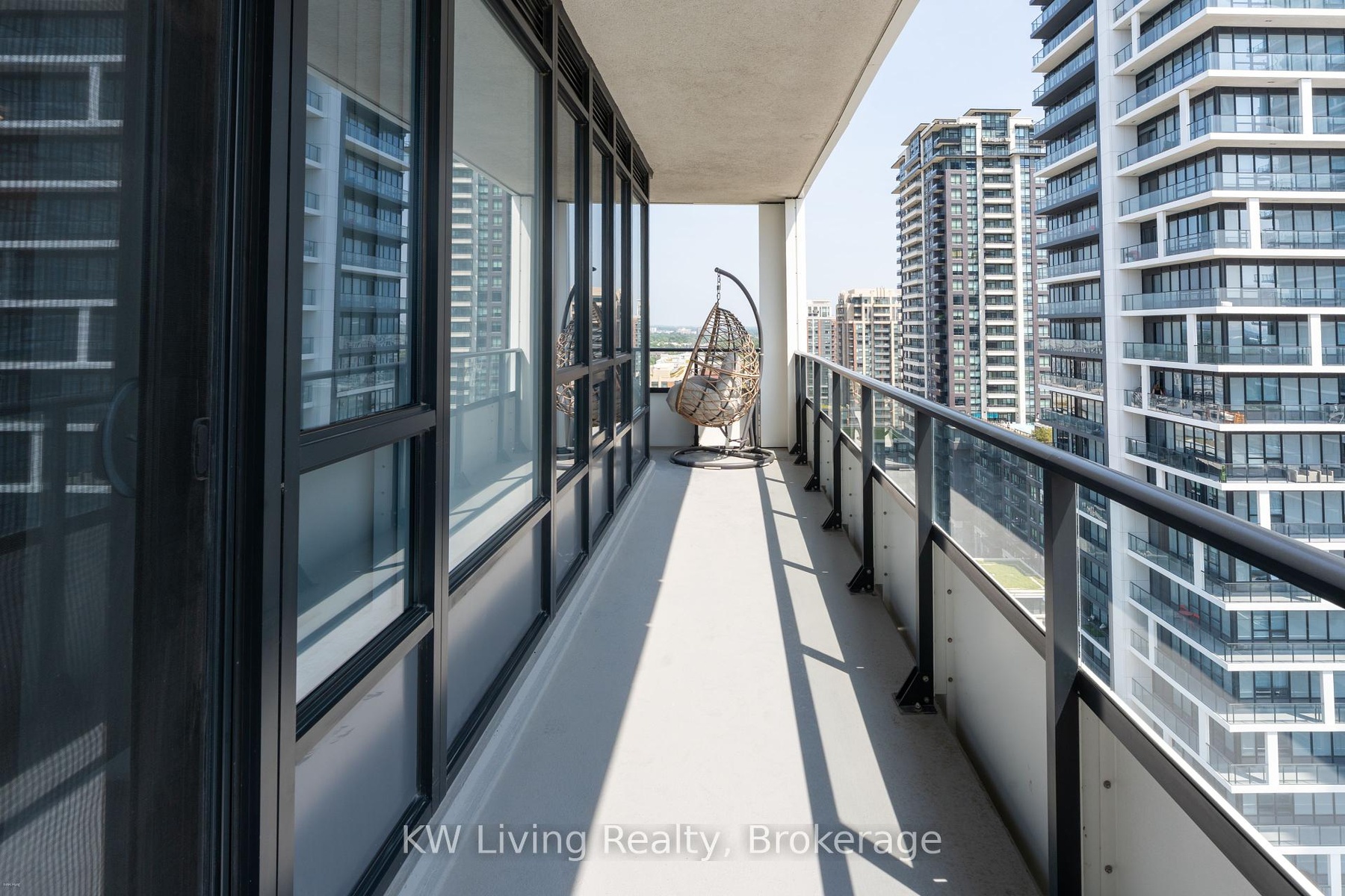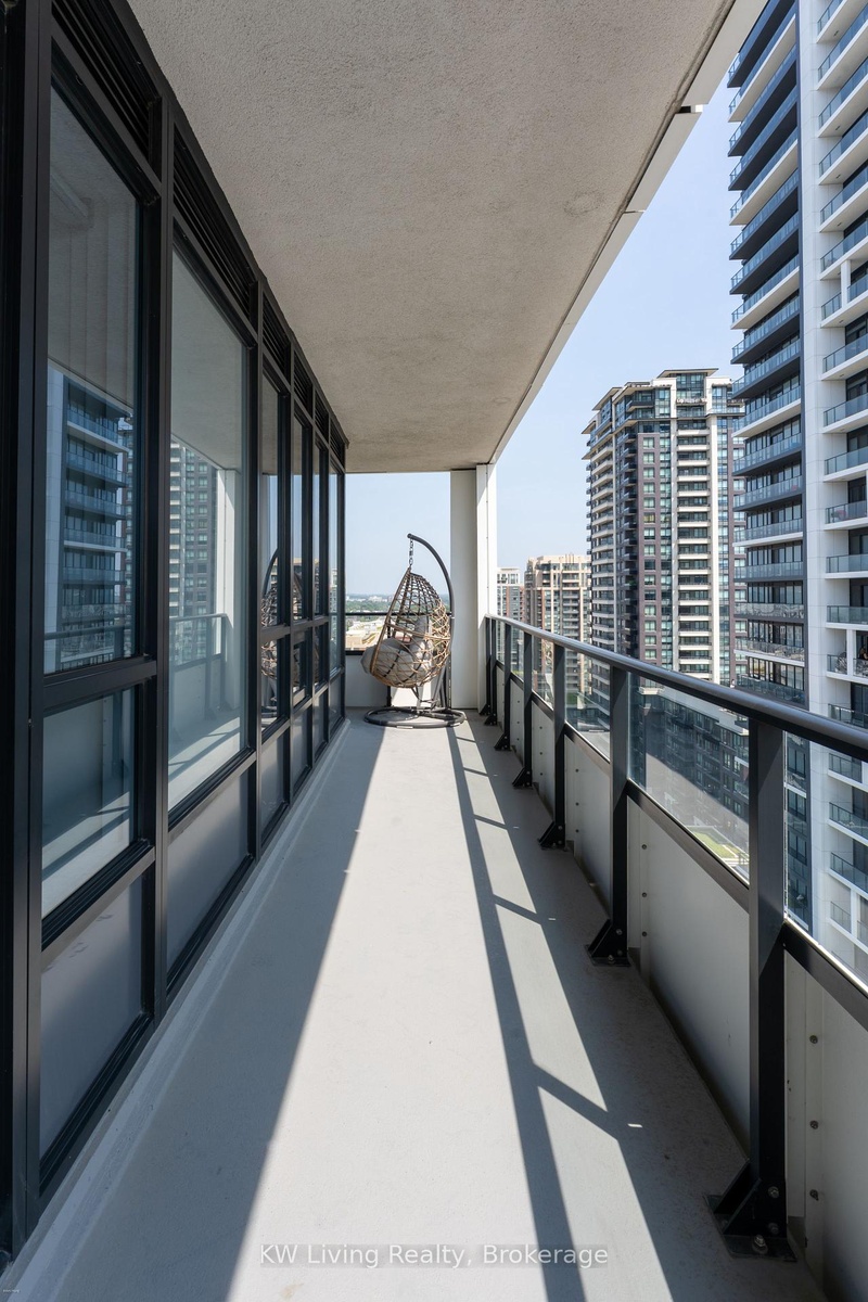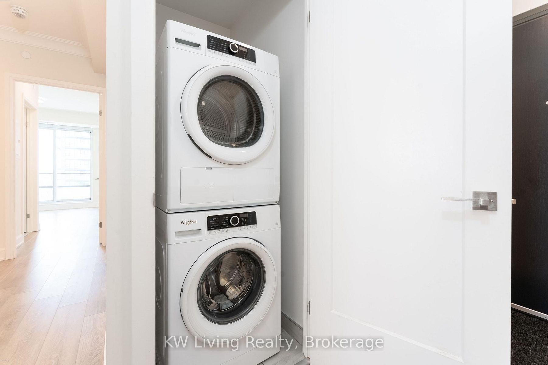 Riverview 2 Condos - Rare Corner Suite with Wrap-Around Balcony | 2 Bed + Den 1,056 Sq.Ft. I Parking. Act fast-this is one of the most sought-after layouts at Riverview 2 by Times Group in Downtown Markham. This bright and spacious 2-bedroom plus den corner unit spans 1,056 sq.ft. of highly functional space and features a premium wrap-around balcony offering panoramic views. Designed for comfort and flexibility, the split-bedroom floor plan allows for maximum privacy and efficient use of space. The den is perfect for a home office or additional living area. Floor-to-ceiling windows flood the living space with natural light, while the open-concept kitchen boasts modern cabinetry, quartz countertops, and full-size stainless steel appliances. Enjoy the best of both worlds: a calm, walkable community with top-tier amenities and rapid access to major routes. Included are one underground parking spot and a dedicated locker for added storage. Residents enjoy a 24-hour concierge, a state-of-the-art fitness centre, party room, rooftop terrace, and visitor parking. Located in the heart of Markham's thriving urban centre-steps to VIVA Transit, shops, Whole Foods, top restaurants, Cineplex, parks, and trails. Minutes to Highway 407 and 404.