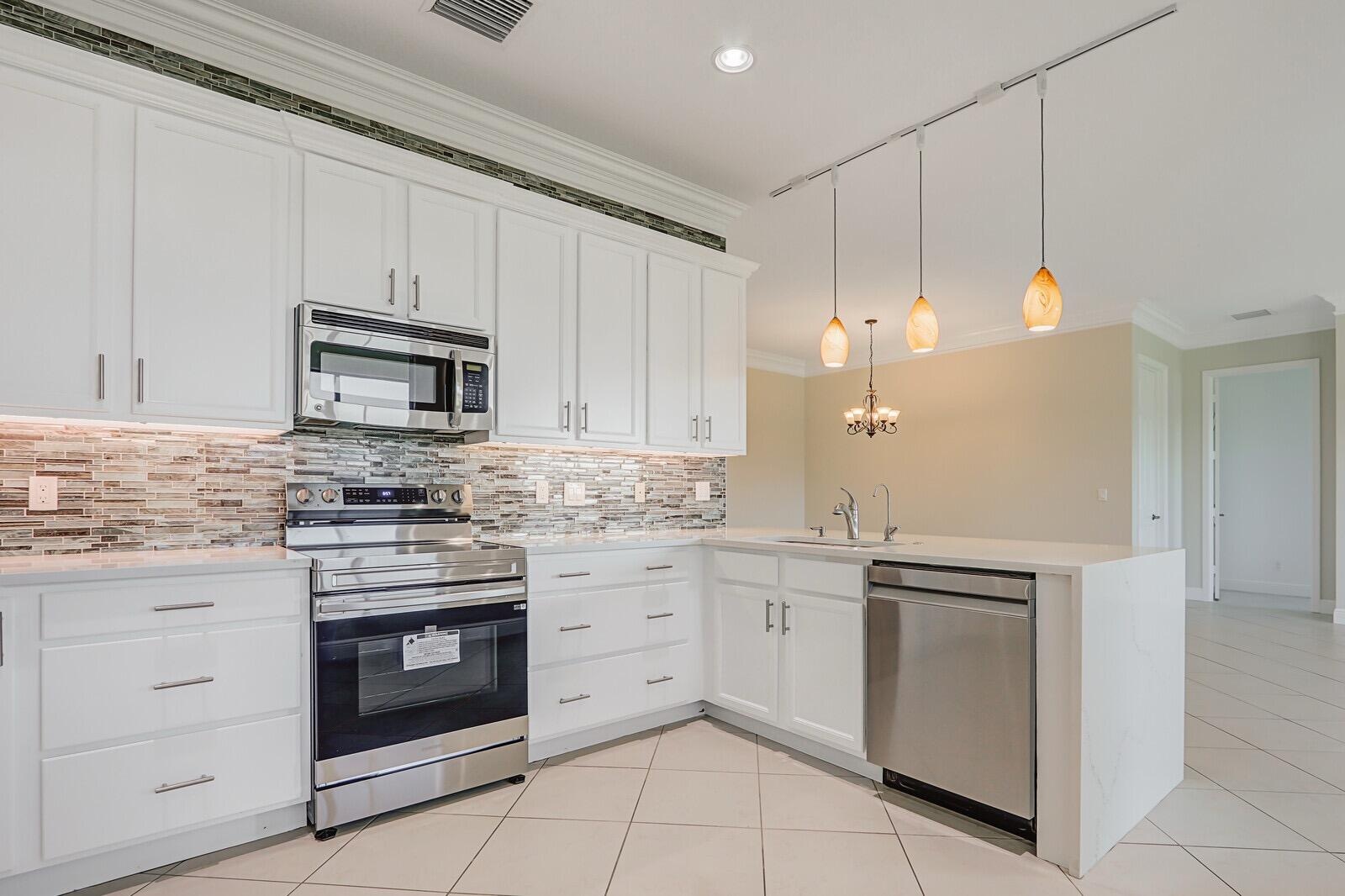 Located in the sought-after PGA Verano community, this move-in ready 2BR/2BA +Den/Office home feels like new and showcases many tasteful and thoughtfully selected upgrades throughout. Enjoy crown molding, recessed high-hat lighting, and a stunning designer kitchen with new Samsung stainless appliances, waterfall quartz countertops, pendant lighting, and full-height glass backsplash. Custom California Closets in all closets and pantry. Freshly painted interior, upgraded garage with epoxy flooring and space for your golf cart. Primary suite offers dual sinks, walk-in shower & Roman soaking tub.. Enjoy sunsets from the screened patio with C-24 Canal views. Lake view in front, near dog park, and easy access to entry gate. Double insulation in attic/garage adds energy efficiency. A must-see!