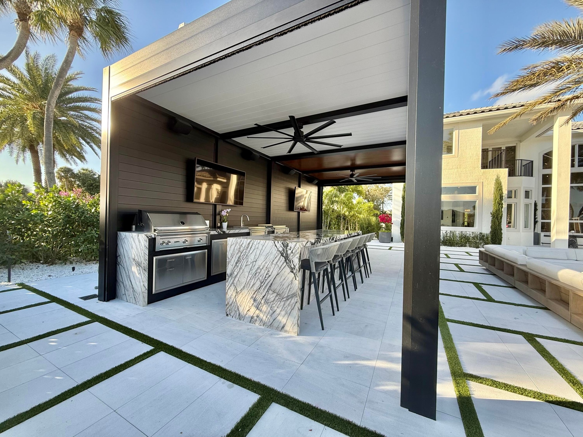 Experience resort-style living in this fully redesigned, move-in-ready, luxury home in the prestigious Jupiter Country Club. This 5-star, magazine-worthy estate blends modern sophistication with refined, timeless elegance. Interior Highlights: Impeccable designer chef's kitchen with quartz countertops and backsplash, Sub-Zero, Thermador & JennAir appliances, built-in coffee maker and gas range. Grand ceilings and ultra high-end fixtures and finishes throughout.