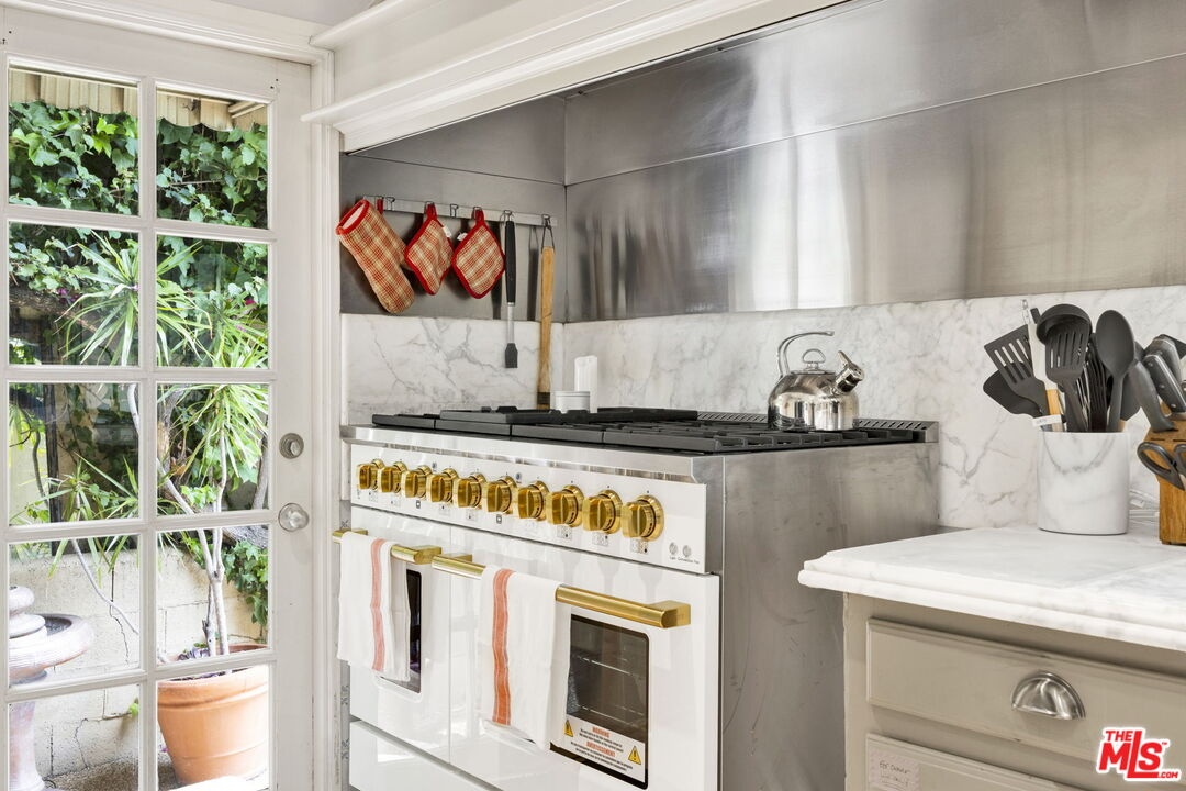 Wrapped in ivy and surrounded by lush gardens, this 1920s Spanish Revival captures old-world Los Angeles with modern ease. Offered fully furnished, it delivers rare character, privacy, and effortless livability in the heart of Hancock Park. Inside, arched rooms flow from a sun-filled living room and cozy sunroom to a billiards lounge and eat-in kitchen designed for connection. Upstairs, two en suite bedrooms include a tranquil primary suite with a private balcony. The family room with a wet bar by the pool offers a queen pull-out sofa for a third guest accommodation. A detached guest casita adds flexibility with its own bedroom, bath, and kitchenette, ideal for guests, work, or retreat. Outdoors, enjoy a secluded garden setting with a dining patio, fire pit, and pool surrounded by mature hedges. The kitchen has new appliances and a larger chef's range. Lease options starting at: 12 mo  $9,500/mo | 18 mo  $9,000/mo | 24 mo  $8,500/mo [The owner's car remains on site. Housekeeper visits twice monthly at tenant's expense.]