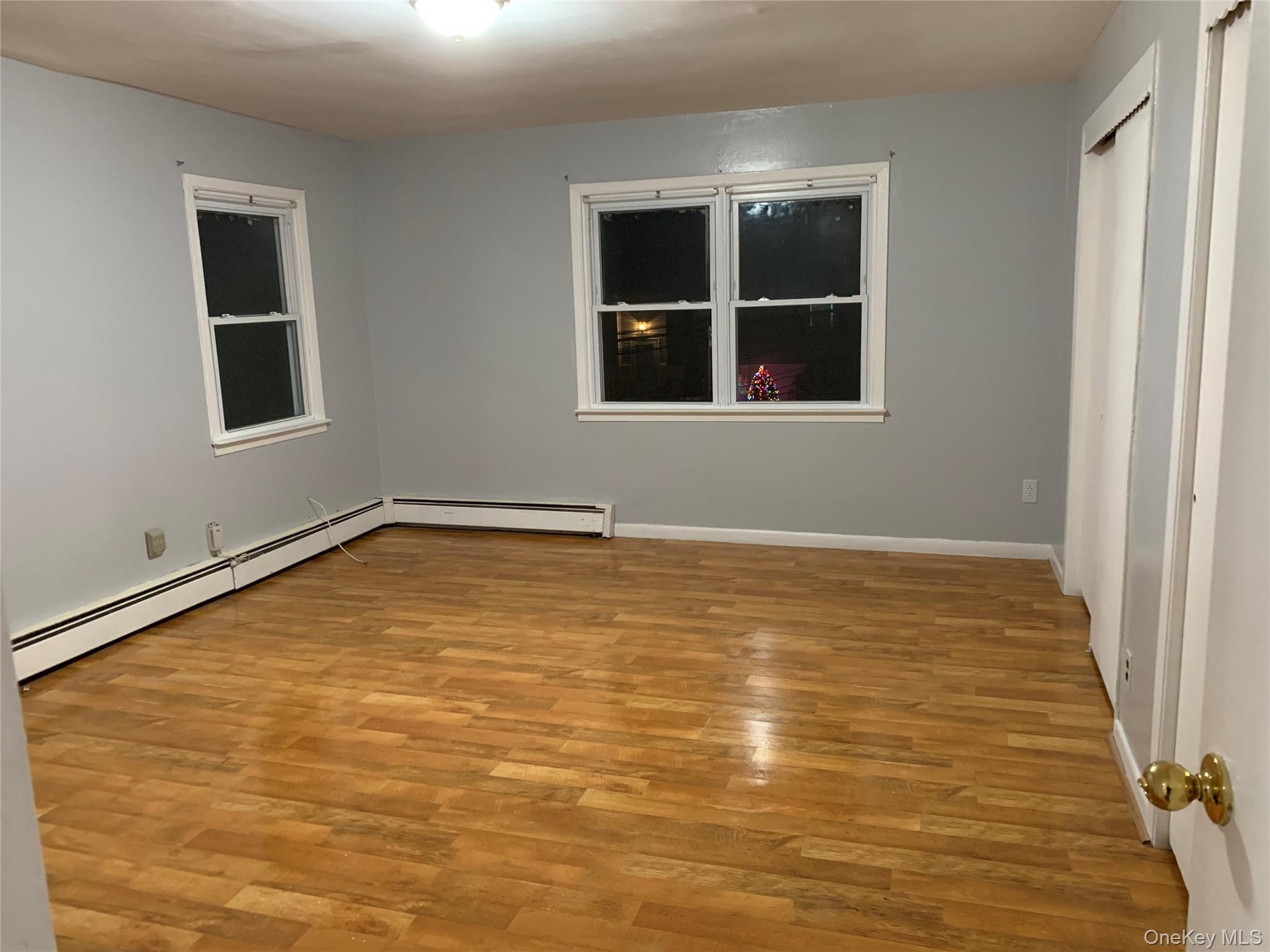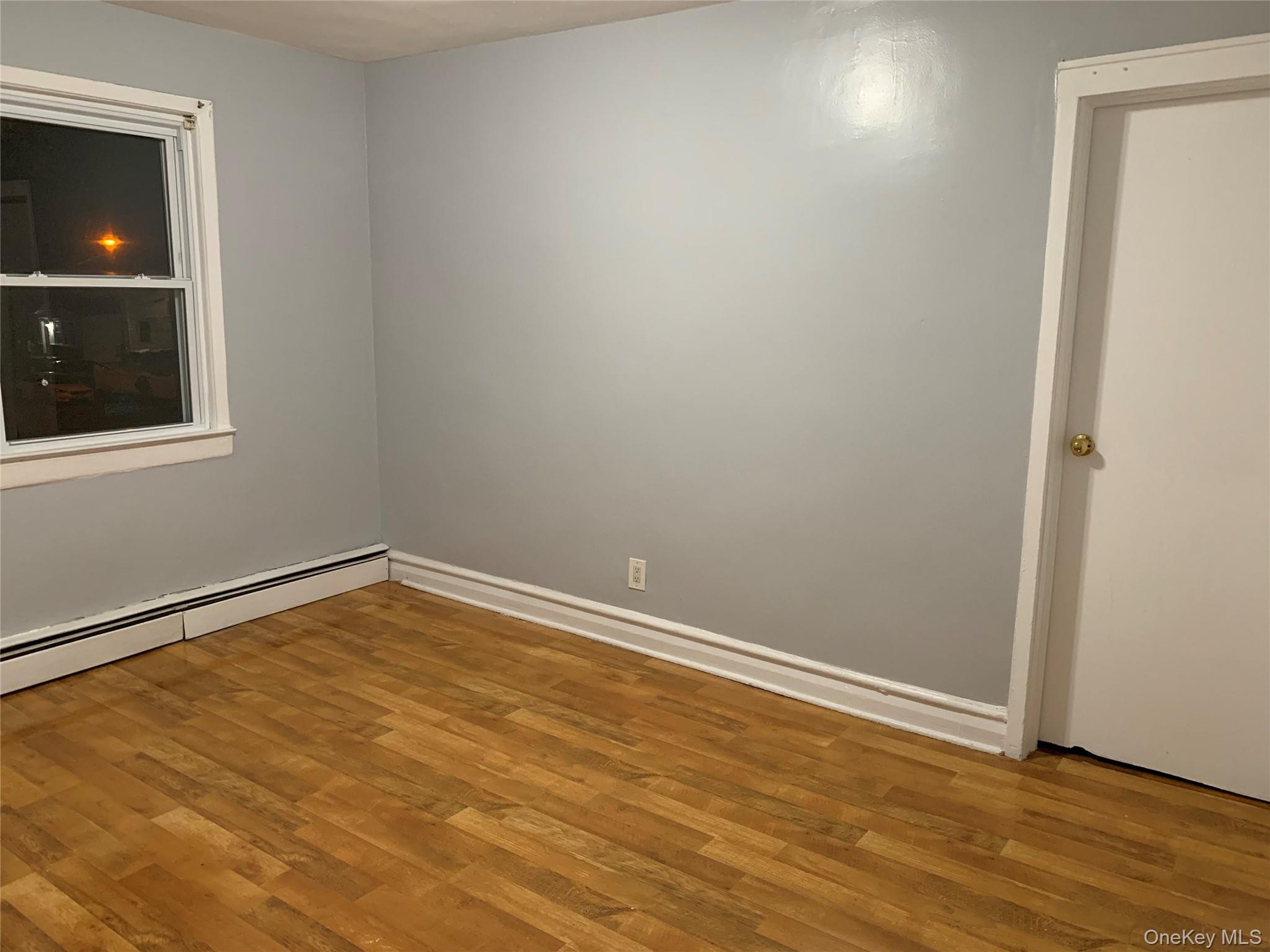 - Unfurnished bedroom with wood finished floors and baseboard heating