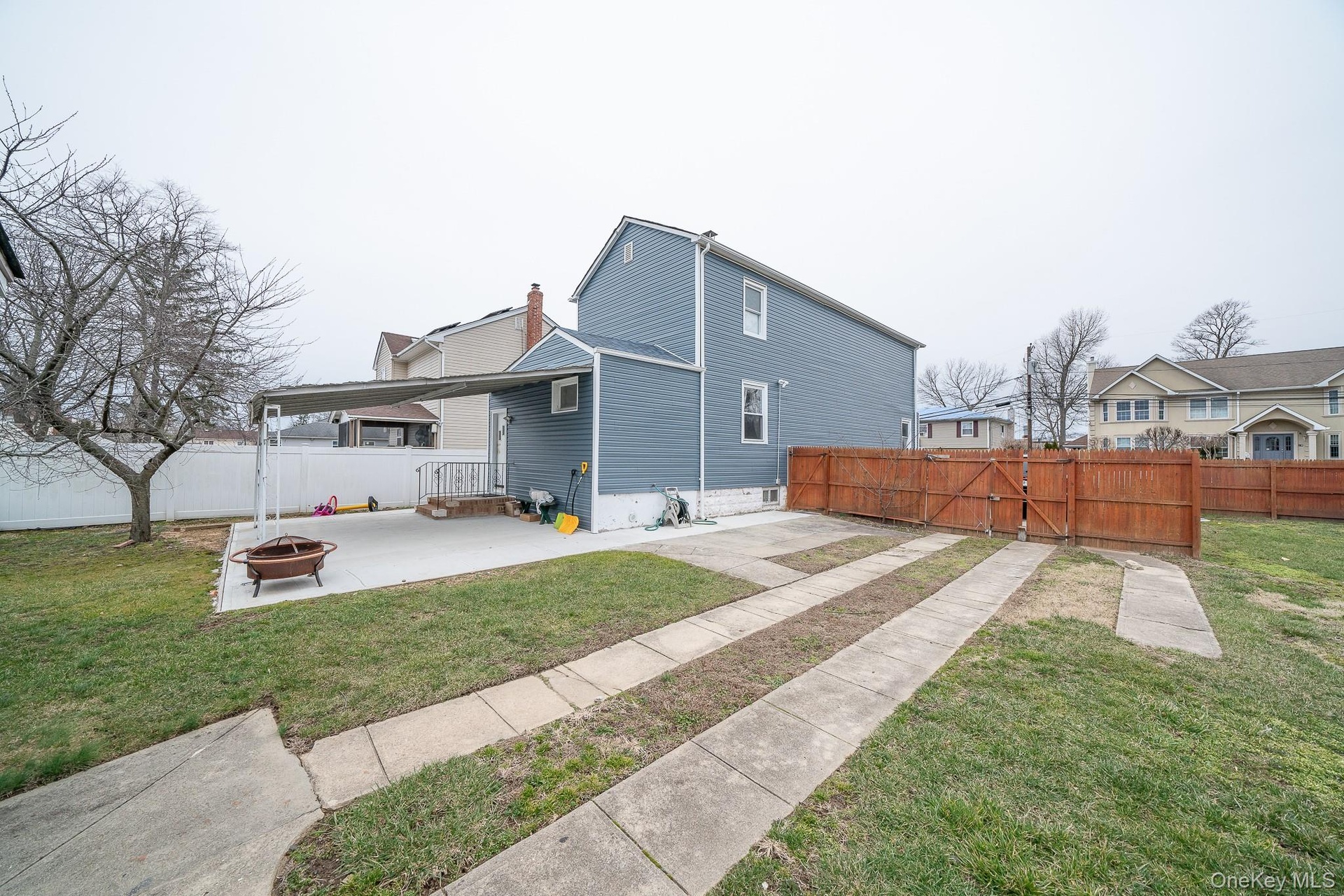 - Rear view of property featuring an outdoor fire pit, a patio area, and a fenced backyard