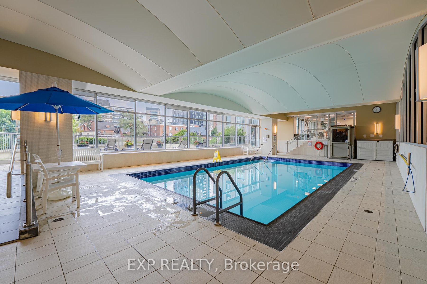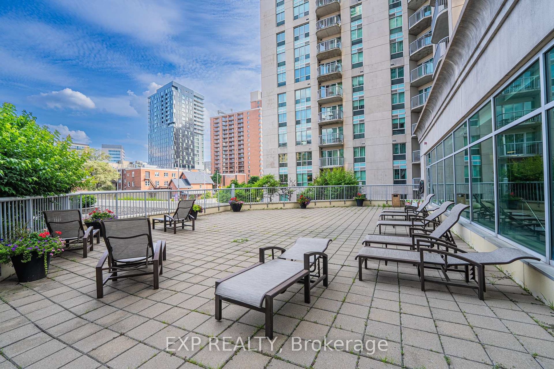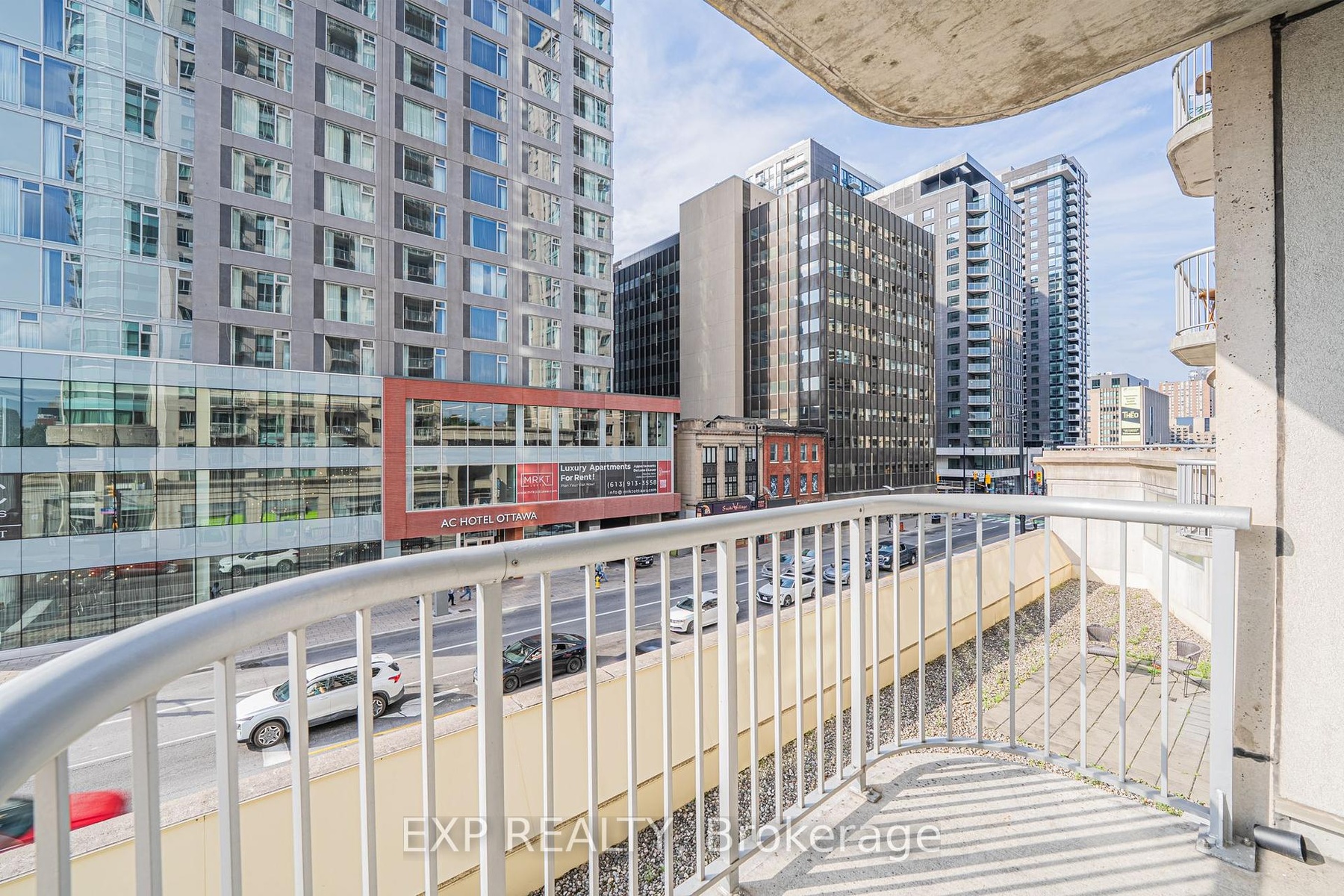 Experience the best of city living in this elegant two-bedroom plus den condo at Claridge Plaza. Perfectly positioned in the heart of downtown, this stylish home offers easy access to all the conveniences the city has to offer. The kitchen boasts a raised breakfast bar and a convenient pass-through that connects to the living and dining area. The living room opens up to a private balcony with sweeping views of the vibrant Rideau Street landscape. Hardwood flooring flows throughout the living/dining room and den, adding a touch of warmth. The spacious primary suite features a four-piece ensuite, while the secondary bedroom shares a well-appointed four-piece bathroom. This immaculately maintained condo is just steps from Ottawas top amenities. The building itself offers exceptional features, including an indoor pool, gym, sauna, terrace, library, and concierge services. Welcome home!