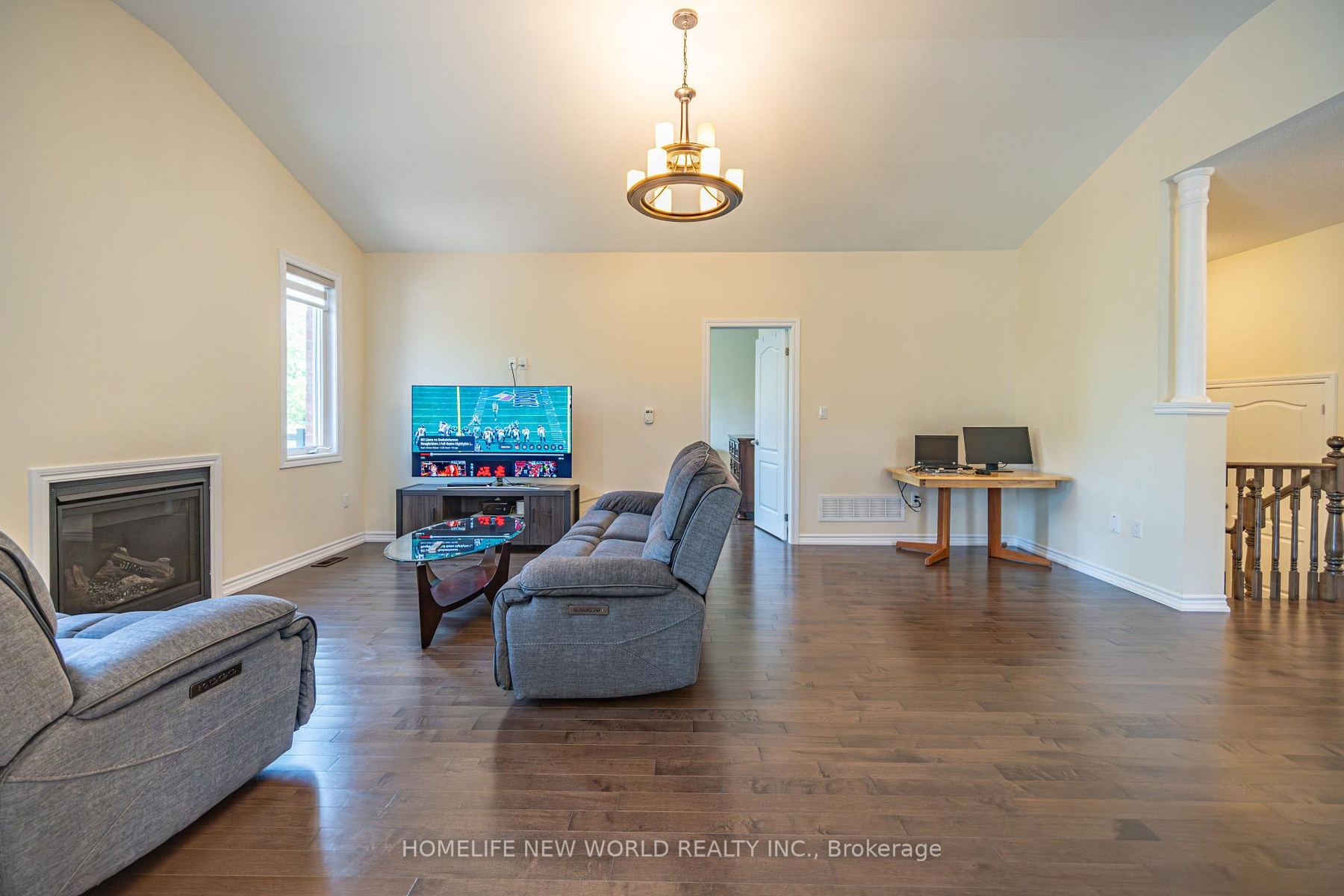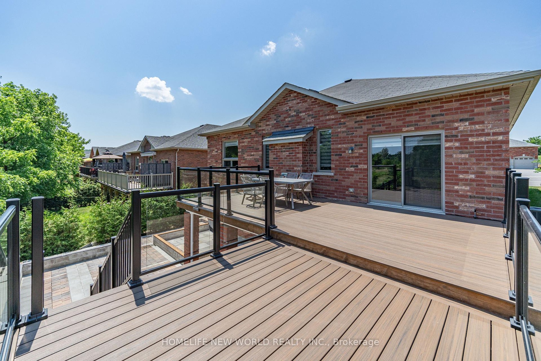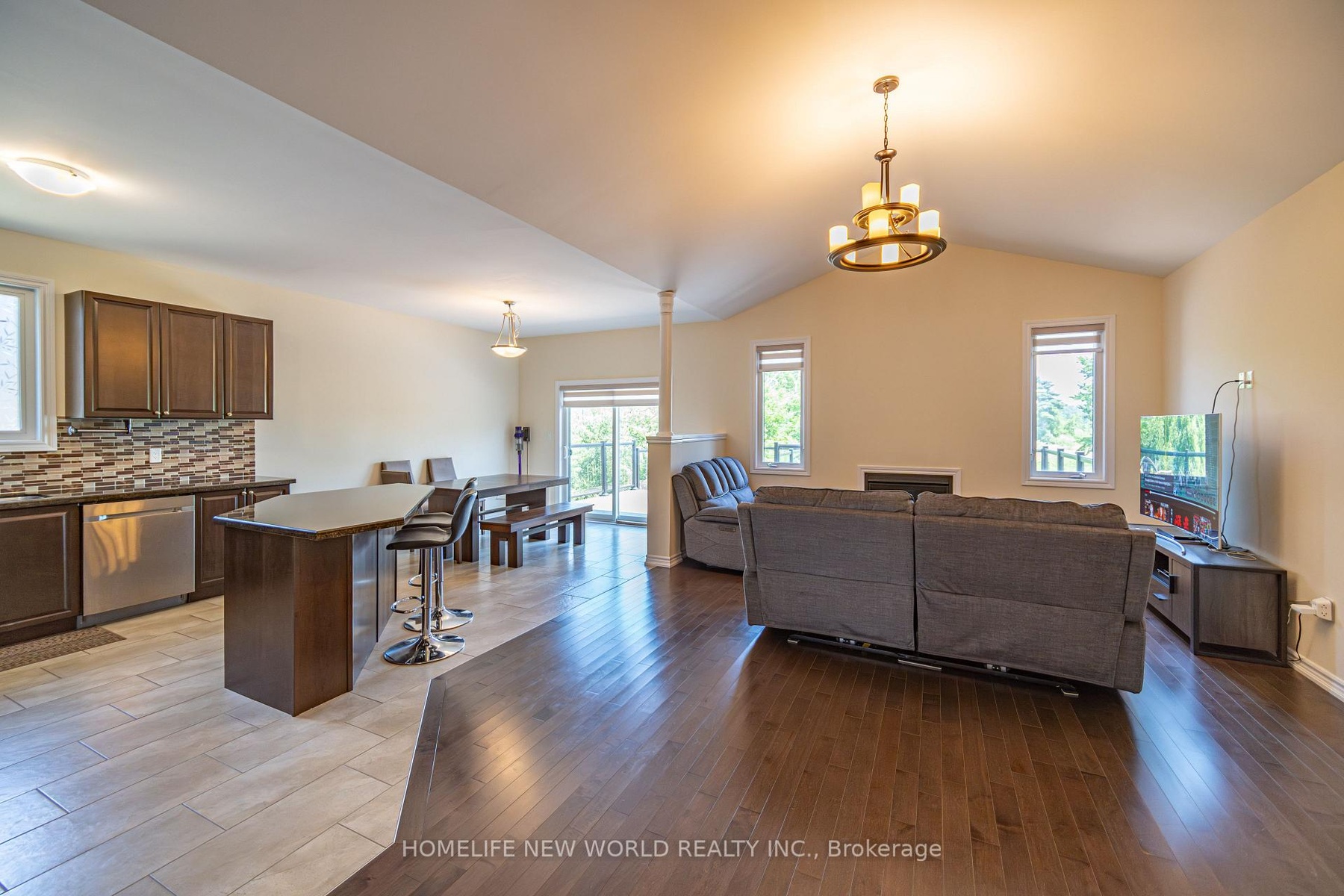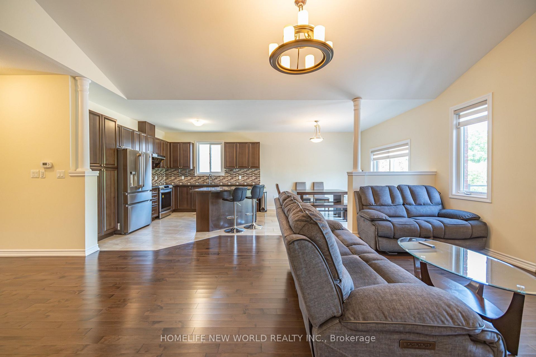 The bungalow W/o sidewalk is situated on a beautifully landscaped lot that backs onto grassy pastures with expansive views from the patio. Walking distance to all amenities such as shops, grocery stores, restaurants, cafes, fitness centers, schools, library. Great recreational activities such as fishing, boating, or just relaxing by the water. Marinas, Beaches, Golf clubs, trails to choose from nearby. The maintained home with solid brick walls walks out to a huge deck for outdoor dining and/or relaxing by the gas fireplace. The interior has numerous upgrades, an open concept 9 Cathedral ceiling, dining area, and High-quality kitchen --Samsung Appliances W/ an Induction oven and FOTILE hoods with granite countertops. The Maple Hardwood Floor also features a large Master Bedroom and Ensuite, 2nd & 3rd Bedrooms and 4-piece bathroom w/toilet, laundry. Walkout basement with access to patio (all framing & painting finished) is designed to let you enjoy a tranquil connection with nature. Side Stone Steps to Back Block floor & BBQ gas line outside,Big Deck-Vinyl flooring W/Glass Railing + Brick Concrete columns. Drainage Collection System for Enjoying the View Anytime