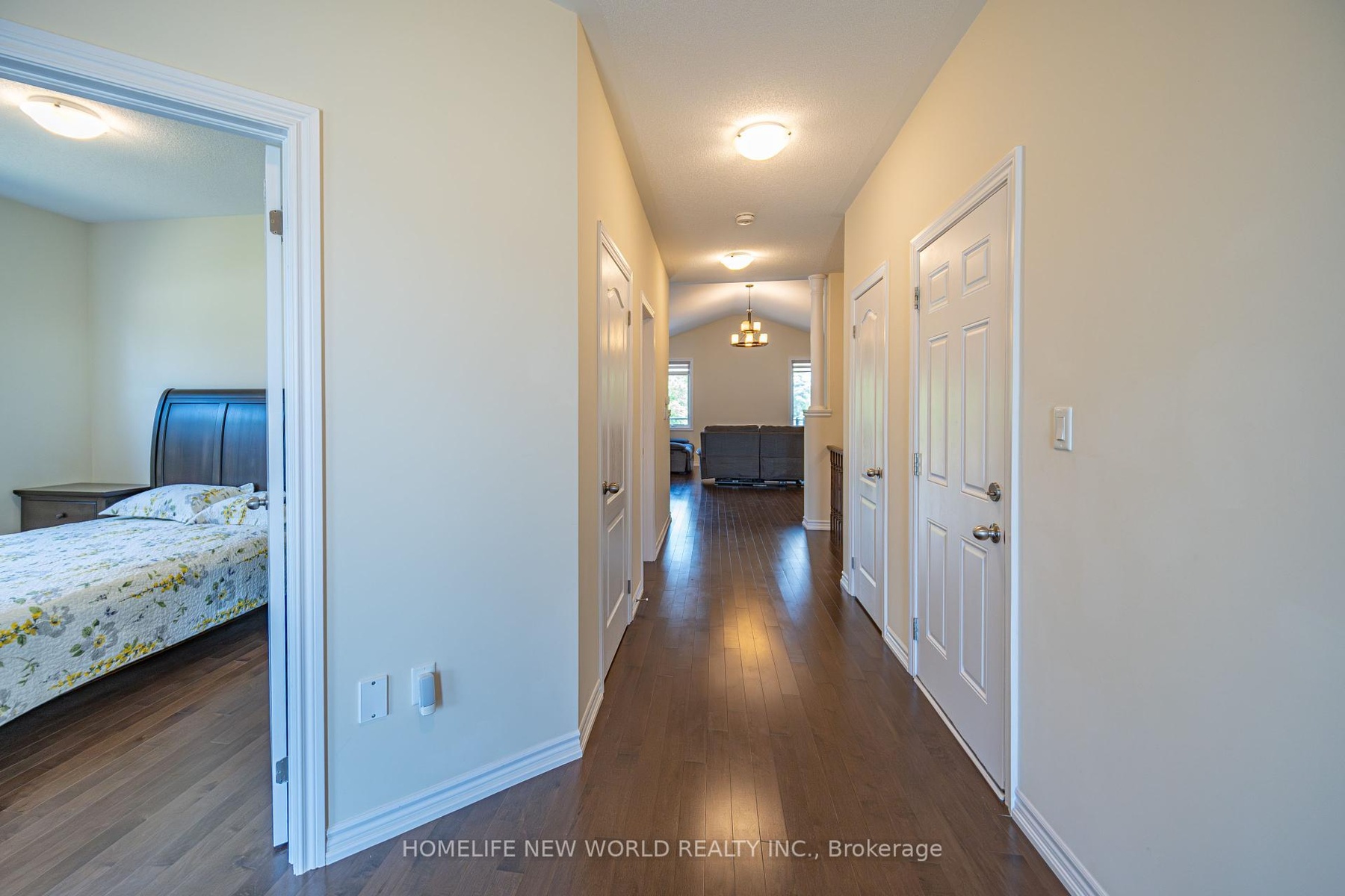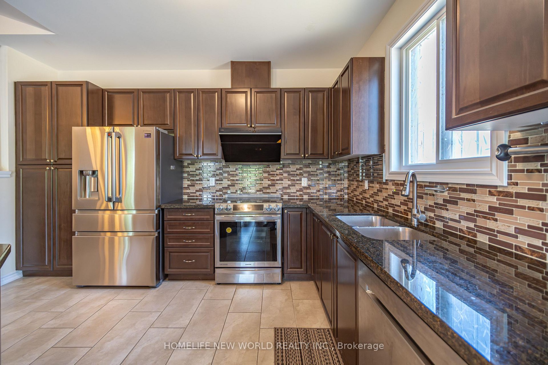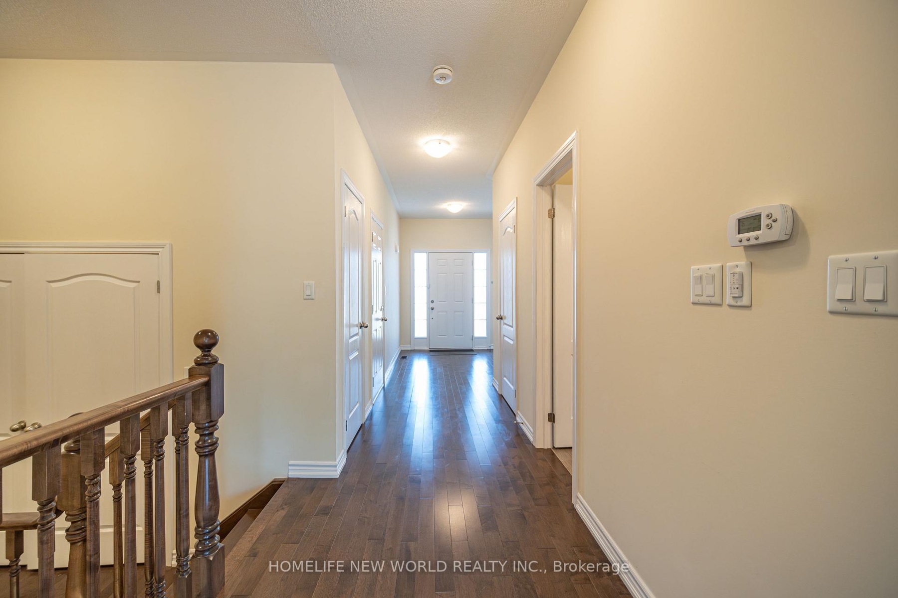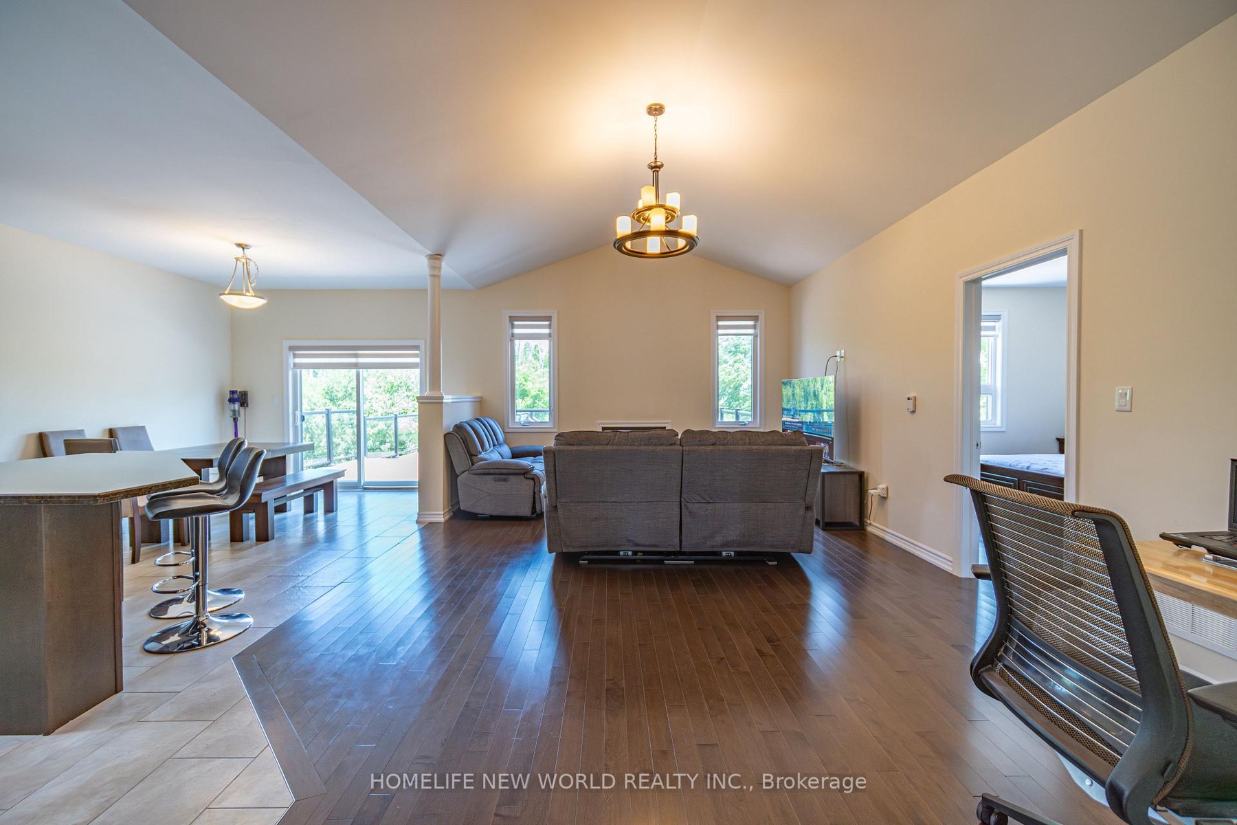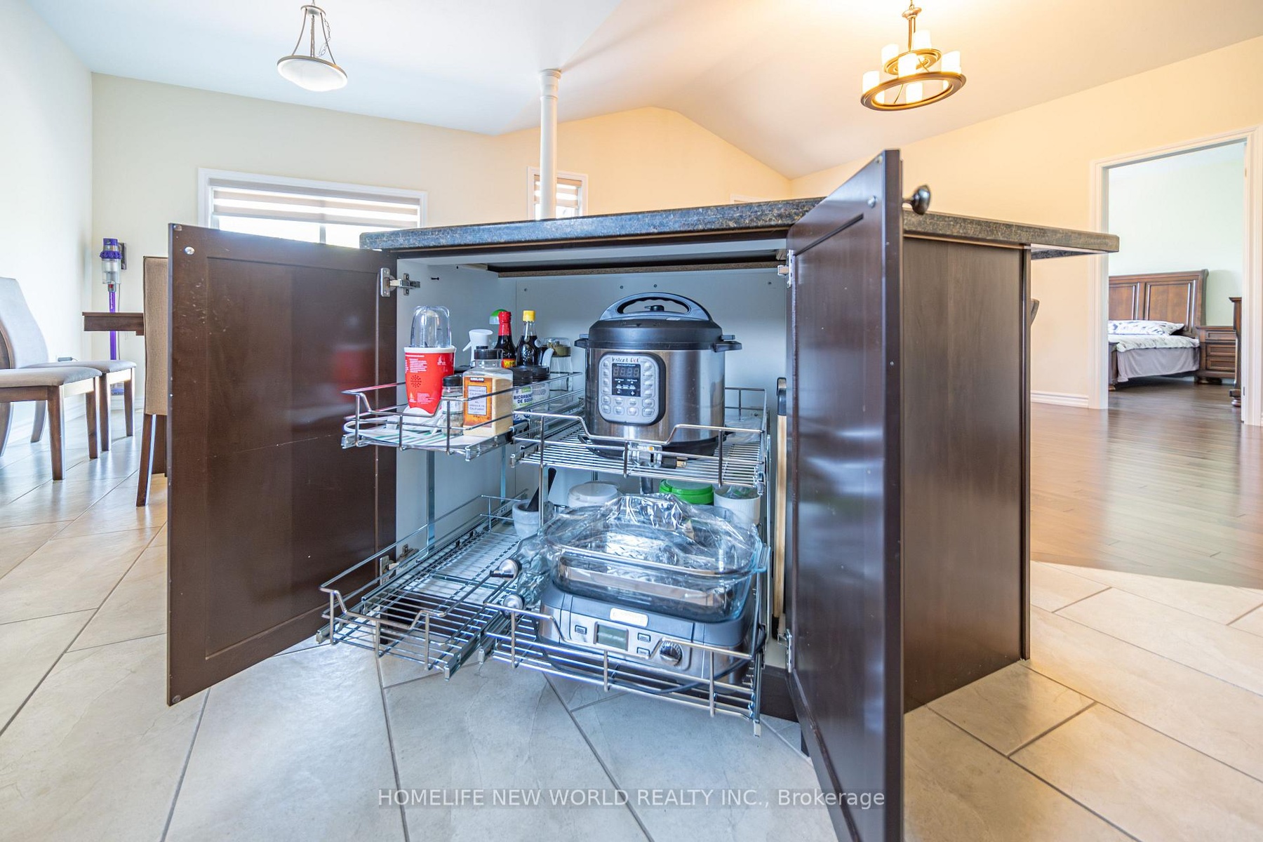 The bungalow W/o sidewalk is situated on a beautifully landscaped lot that backs onto grassy pastures with expansive views from the patio. Walking distance to all amenities such as shops, grocery stores, restaurants, cafes, fitness centers, schools, library. Great recreational activities such as fishing, boating, or just relaxing by the water. Marinas, Beaches, Golf clubs, trails to choose from nearby. The maintained home with solid brick walls walks out to a huge deck for outdoor dining and/or relaxing by the gas fireplace. The interior has numerous upgrades, an open concept 9 Cathedral ceiling, dining area, and High-quality kitchen --Samsung Appliances W/ an Induction oven and FOTILE hoods with granite countertops. The Maple Hardwood Floor also features a large Master Bedroom and Ensuite, 2nd & 3rd Bedrooms and 4-piece bathroom w/toilet, laundry. Walkout basement with access to patio (all framing & painting finished) is designed to let you enjoy a tranquil connection with nature. Side Stone Steps to Back Block floor & BBQ gas line outside,Big Deck-Vinyl flooring W/Glass Railing + Brick Concrete columns. Drainage Collection System for Enjoying the View Anytime