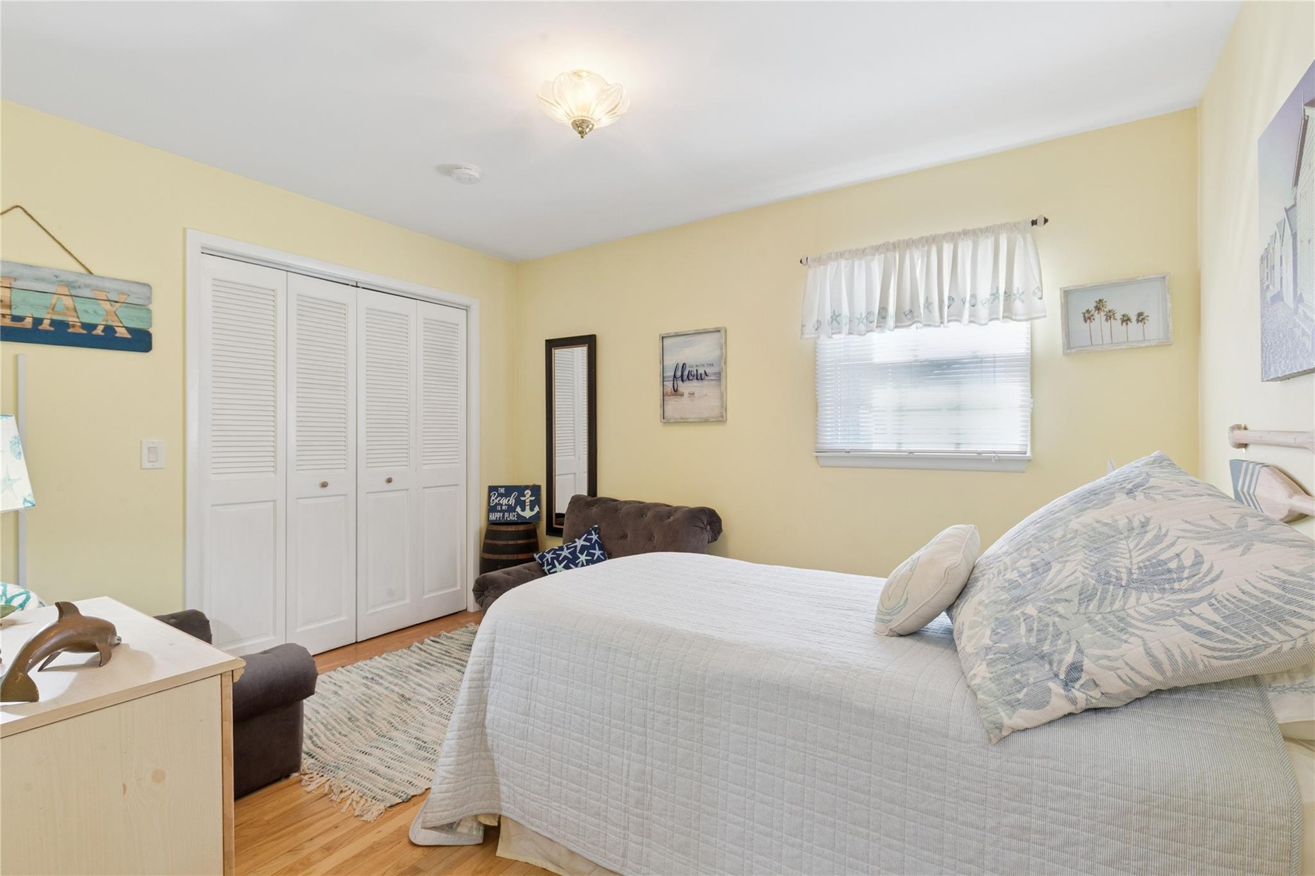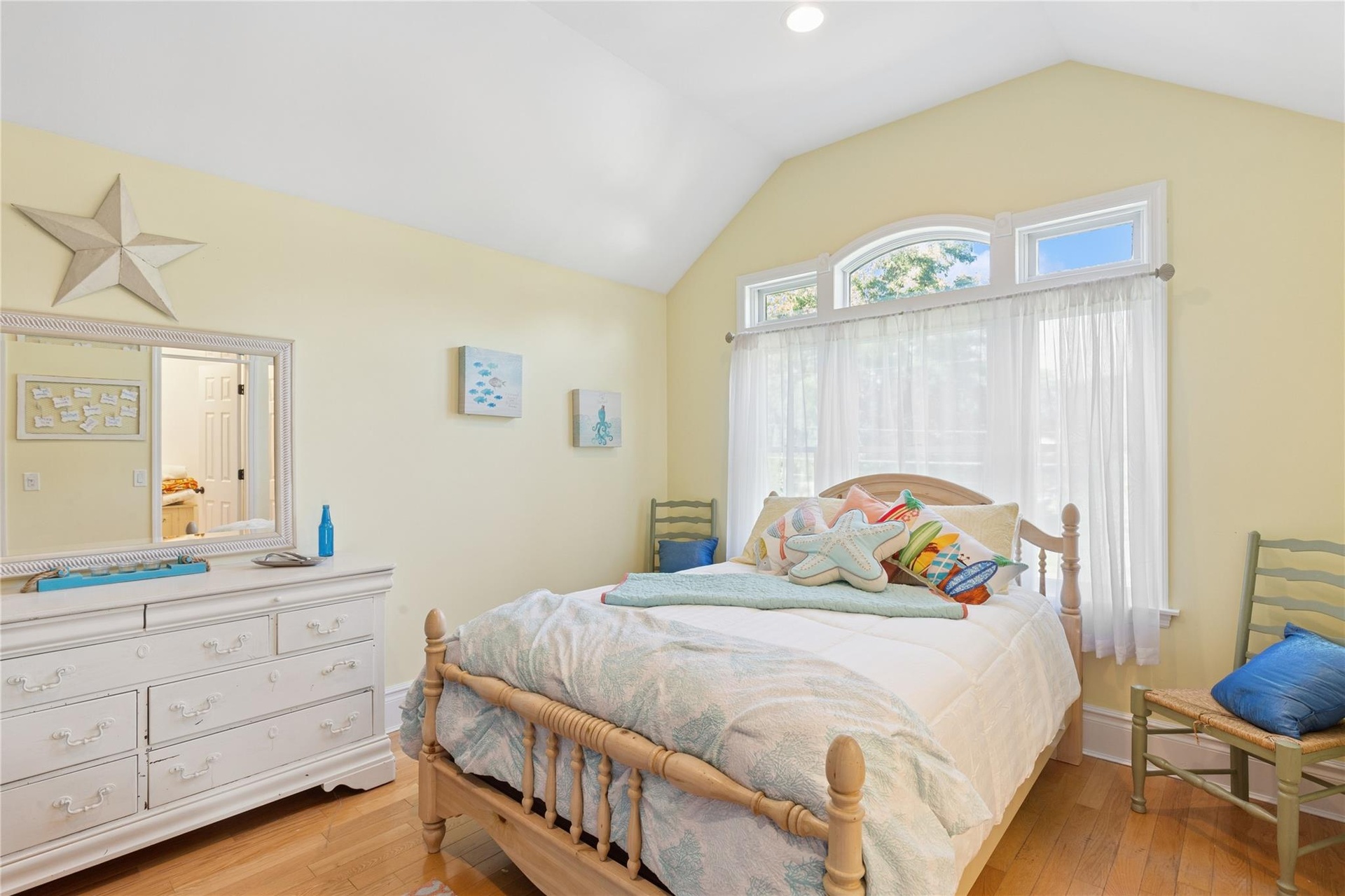 - Bedroom featuring vaulted ceiling and wood finished floors