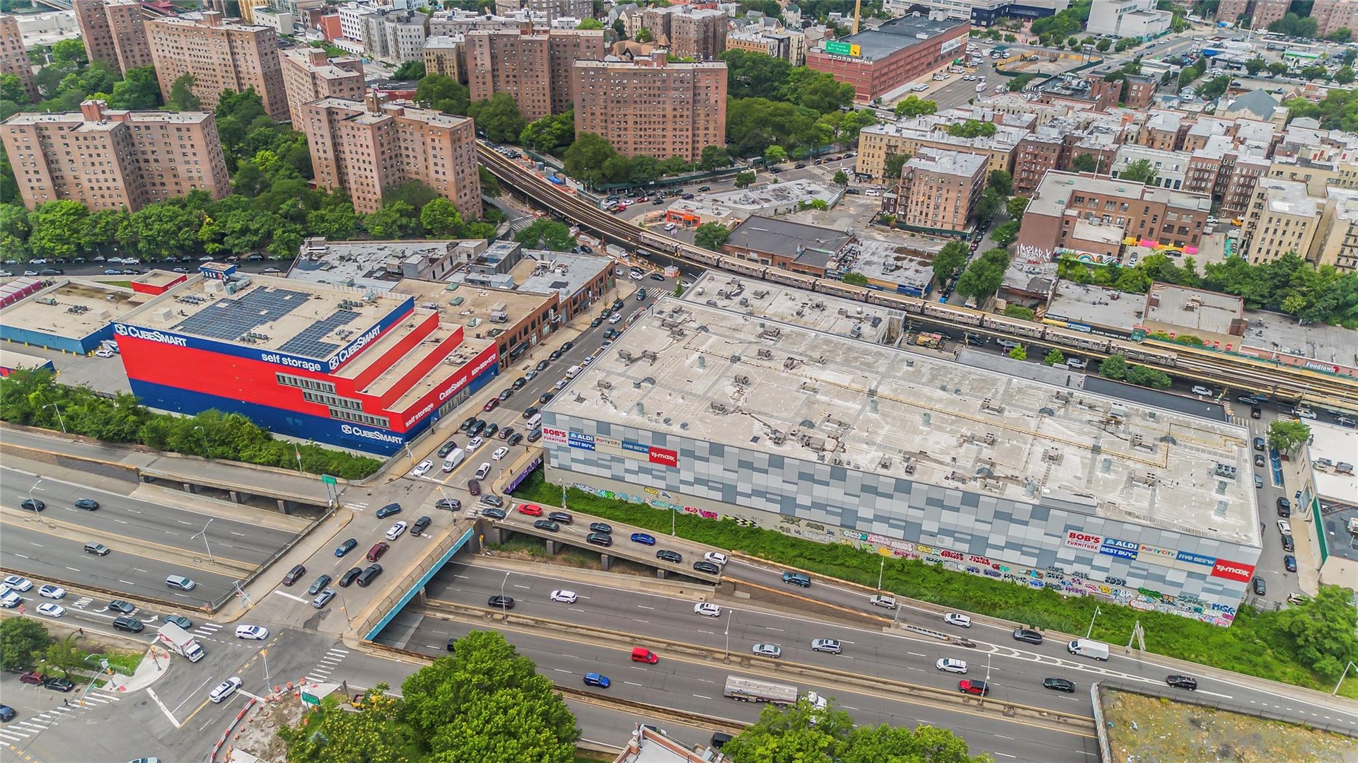 - View of urban area featuring a main thoroughfare and a nearby body of water