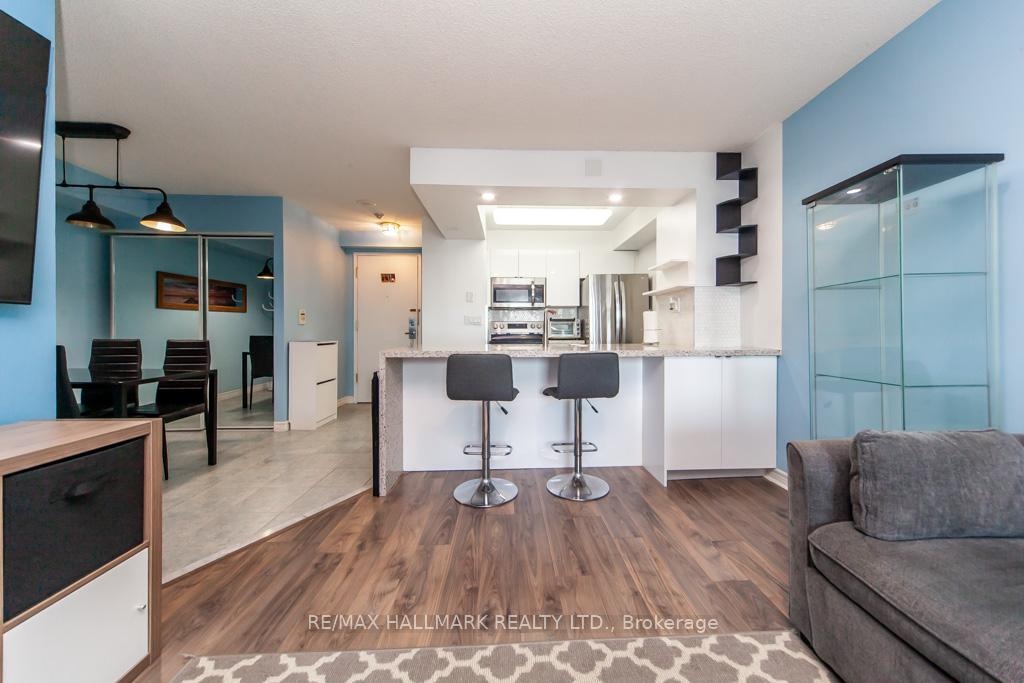 Welcome to this well-designed 1+1 bedroom suite featuring a spacious solarium on a high floor with breathtaking, unobstructed east-facing views. The open-concept kitchen is updated with quartz countertops, while modern flooring adds a sleek and stylish touch throughout. Enjoy a bright and airy living room that flows seamlessly into the generous den/solarium-ideal as a second bedroom, home office, or cozy relaxation area. The primary bedroom offers a comfortable retreat with ample space and natural light. This well-maintained Tridel building offers exceptionally low maintenance fees that include all utilities and underground parking. Located just steps to Scarborough Town Centre, with TTC at your doorstep and easy access to Highway 401. Enjoy resort-style amenities: indoor and outdoor pools, gym, sauna, bowling alley, tennis & squash courts, party room, BBQ terrace, guest suites, and 24-hour concierge. Don't miss this opportunity to own in one of Scarborough's most desirable communities!