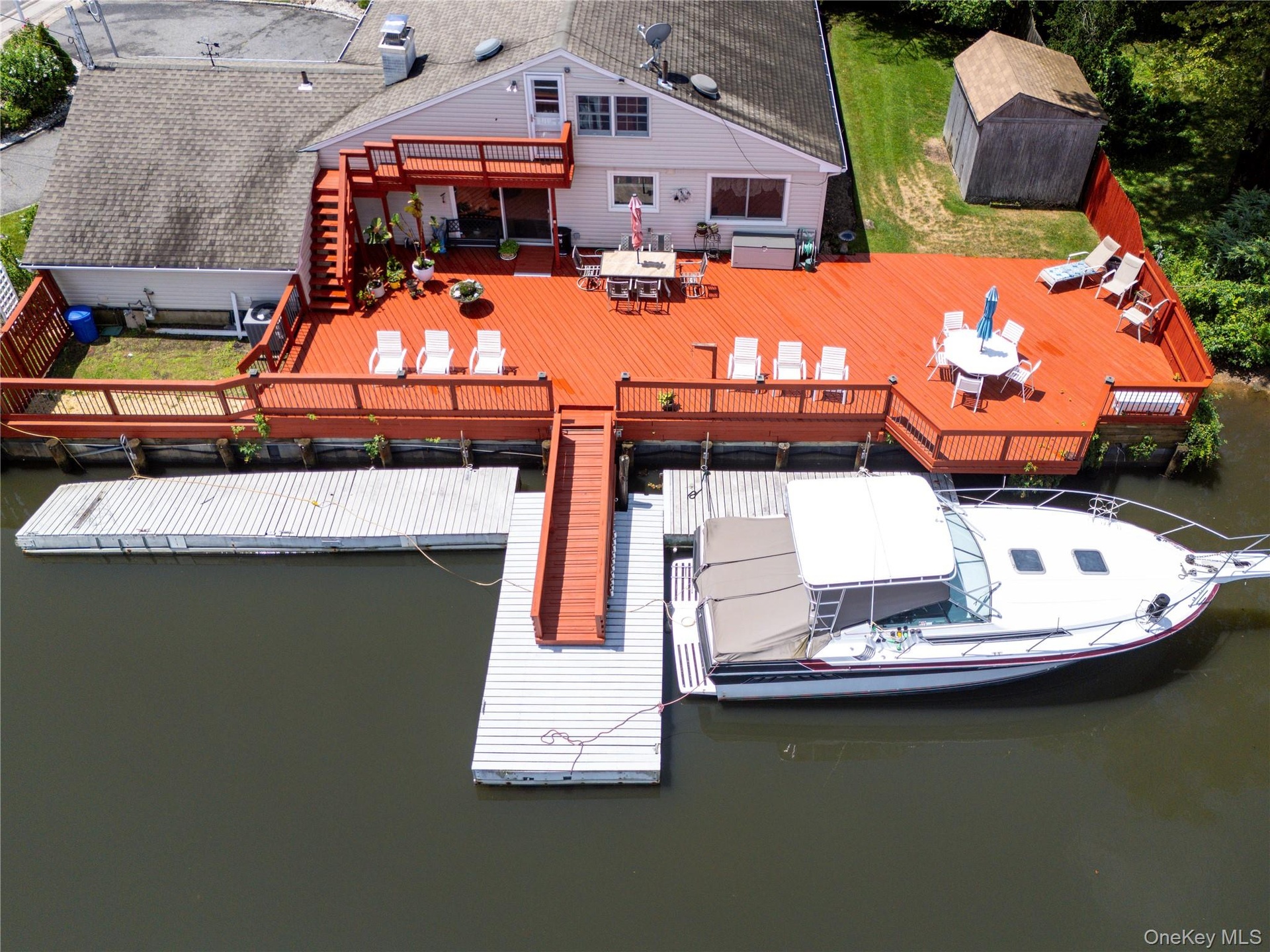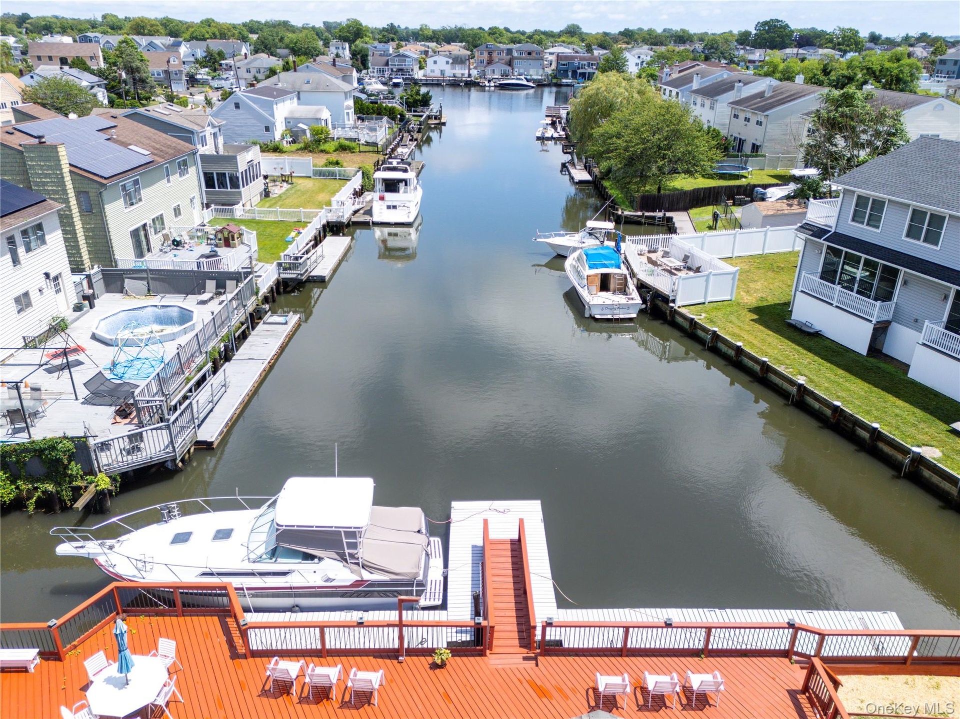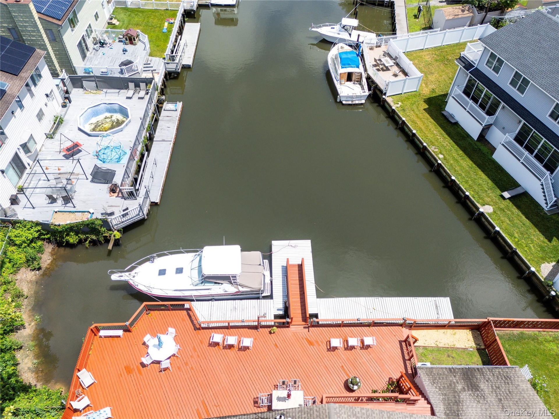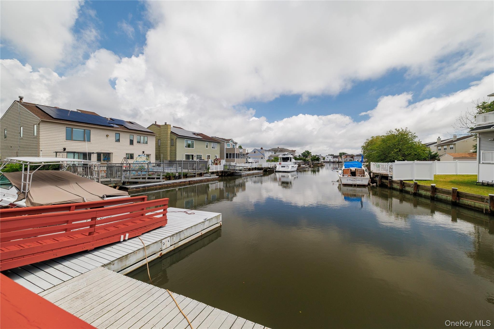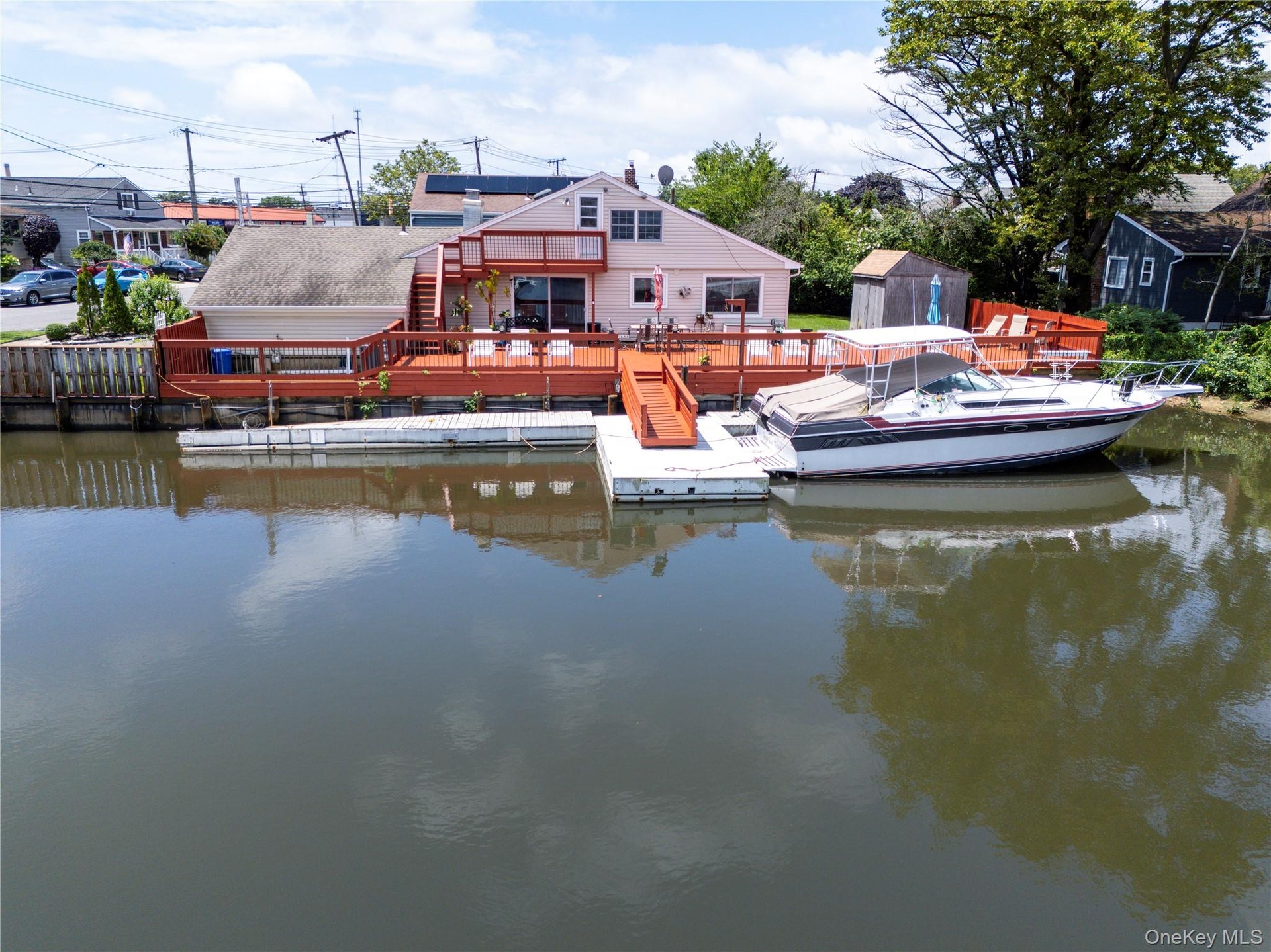 Welcome to this Renovated 4 Bedroom 3 Bathroom Waterfront Ranch. Your Double Door Entrance Hall Leads To Nice Open Layout with a Large Livingroom & Formal Dining Room, Huge Eat In Kitchen and Family Room with an Eight Foot Slide to your Expansive Deck and Private Dock, 100 Foot of Bulkhead and 3 Floating Docks. Gas Fireplace. Primary Bedroom with a Private Bathroom and Walk In Closet. 2 additional Bedrooms & a Full Bathroom. Large Finished 2nd Floor Walk Up Attic. New Hardwood Floors. Gas Cooking & Heat, Huge Deck,Y ard, 1.5 Car Gar, 200 Amp Electric, New Central Air & so Much More.