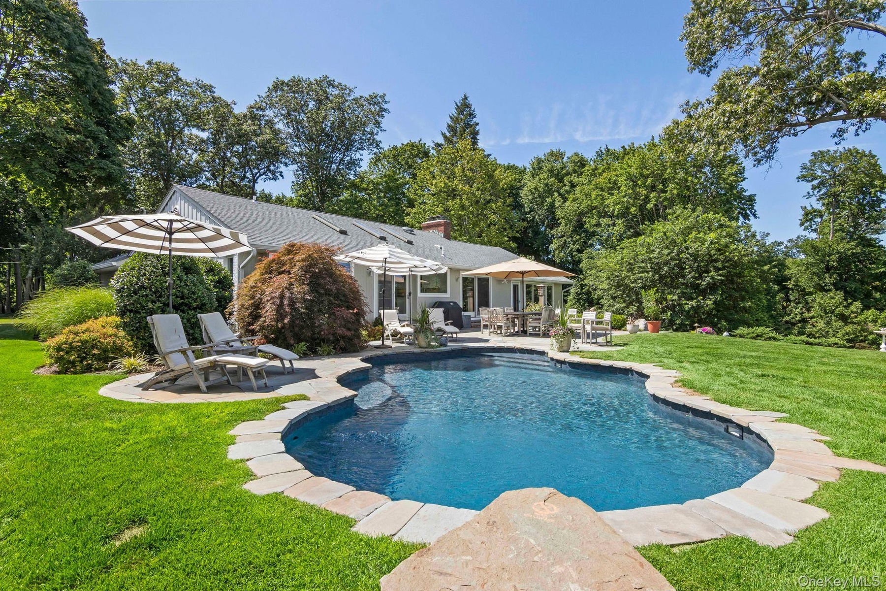 Welcome to Your Private Waterfront Paradise in beautiful and historical hamlet of Strong's Neck Experience a rare opportunity to own a newly renovated 3-bedroom, 2.5-bath wide-line ranch nestled on 2.6 acres of pristine waterfront property with 205' of private beach access and a separate deeded acre that can be kept as a buffer for privacy or future building possibilities. The property has sweeping, unobstructed views of both Setauket and Port Jefferson Harbors, this exceptional home offers luxurious living in a serene, natural setting. The home was designed with an open-concept layout, with large windows that flood the living space with light and showcase breathtaking water views from nearly every room. A gated private driveway leads to the home, offering both security and a grand sense of arrival. Enjoy a seamless indoor-outdoor lifestyle: lounge by the in-ground pool overlooking the harbor, host gatherings on the meticulously maintained, level grounds, or relax on your own private beach. For boating enthusiasts, a town-permitted mooring allows you to keep your boat in full view from your backyard. Additional highlights include a finished basement with access to a 2-car garage below, This is more than a home—it’s a lifestyle. Privacy, beauty, and coastal elegance await. Pictures can not possibly give the true impact of viewing this property in person. Schedule your private showing today! This is more than a home—it’s a lifestyle. Privacy, beauty, and coastal elegance await.