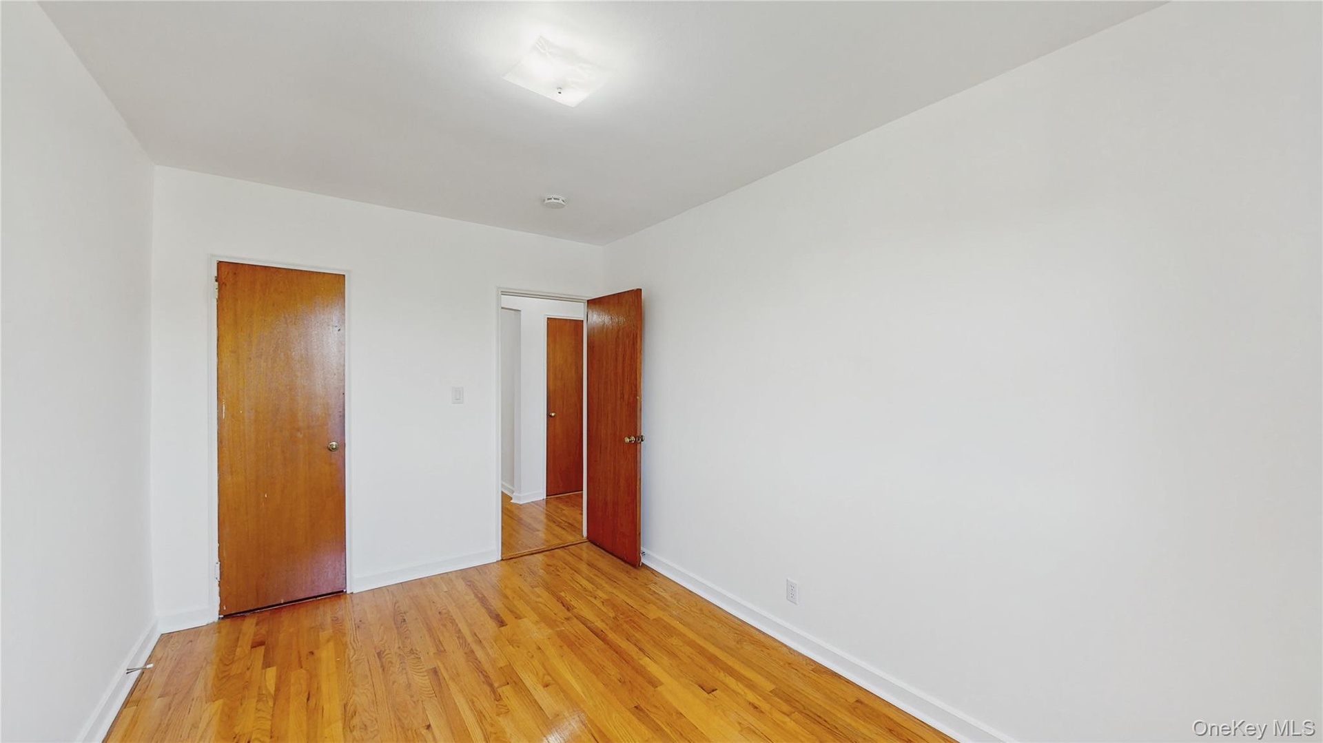 - Unfurnished bedroom with light wood-type flooring and baseboards