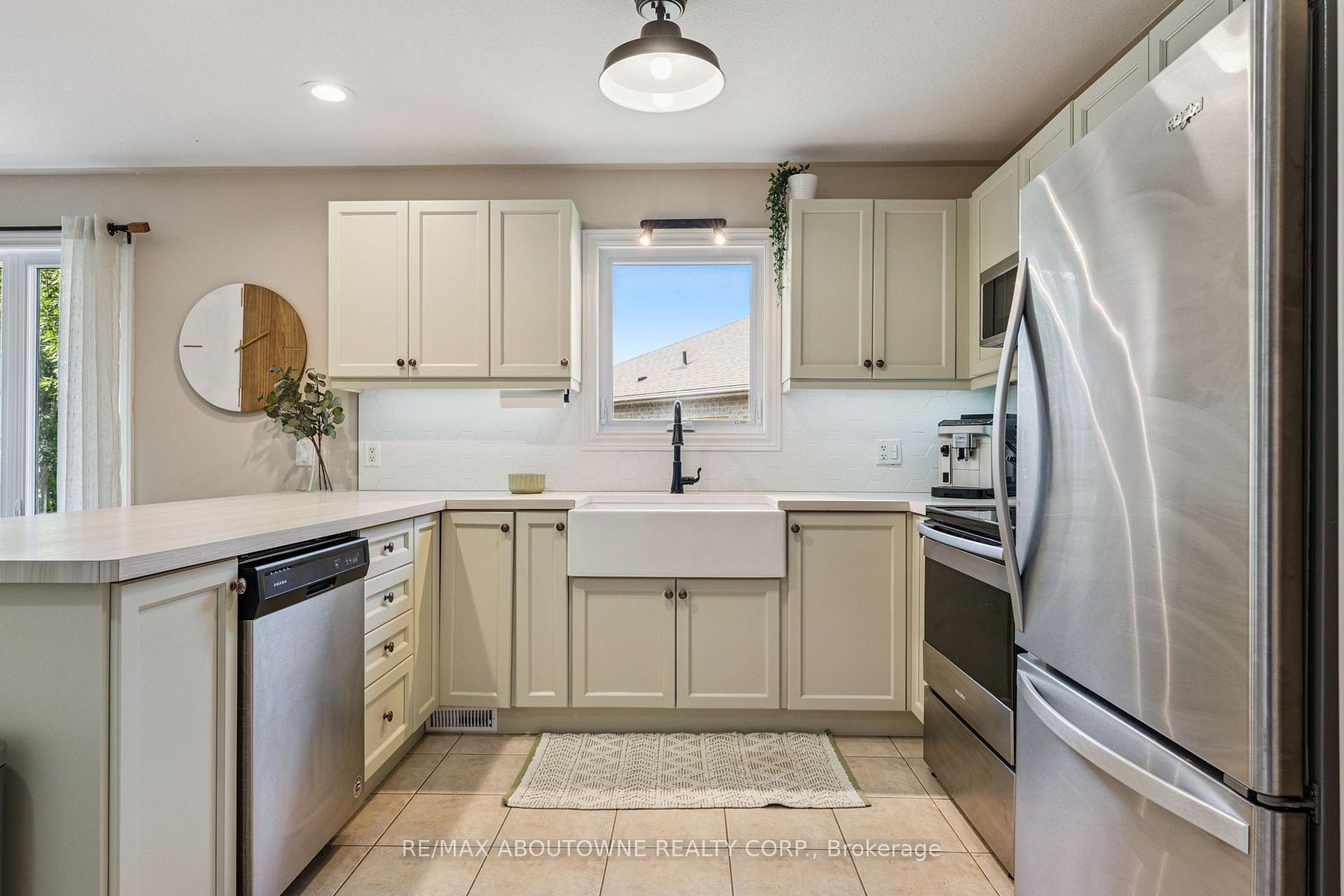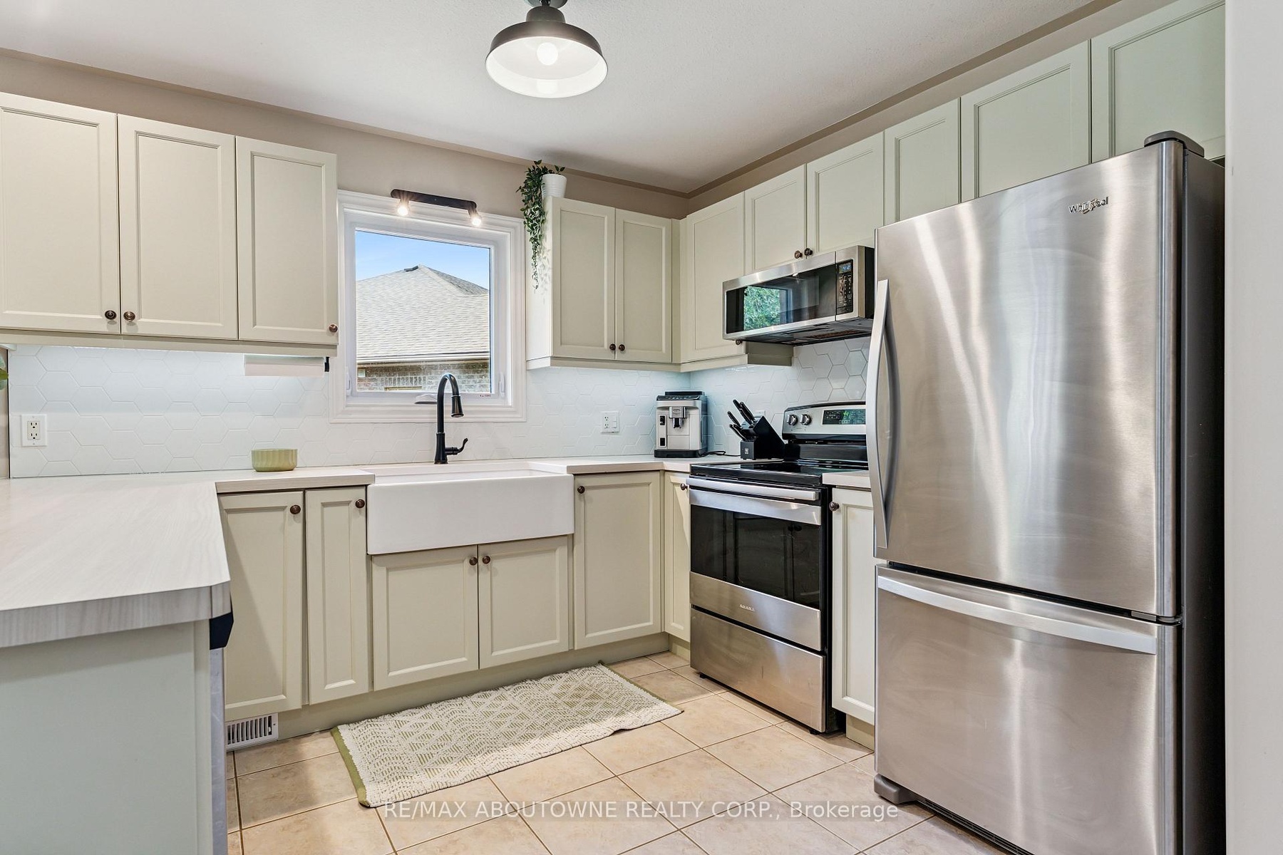 Nestled on a quiet court in an exclusive neighborhood, backing on to parkland, this beautifully updated semi-detached home sits on a rare, oversized pie-shaped lot measuring an impressive 75 feet wide at the rear offering exceptional privacy and space. Step inside to discover approximately 1,200 square feet of thoughtfully renovated living space featuring top-quality finishes throughout. The main floor offers convenient inside access from the garage to a bright laundry room, complete with a new washer and dryer. The 2023 kitchen renovation shines with a charming farmhouse sink, sleek new appliances, and stylish cabinetry. Freshly painted and boasting new flooring throughout, this home also includes modern upgrades such as a Nest thermostat, 2022 asphalt shingles and A/C, 2023 energy-efficient windows with a Lifetime Transferable Warranty, and a brand new furnace installed in 2025. The basement includes a rough-in for a future bathroom, offering added potential for customization. Located just minutes from shopping, parks, transit, and major highways, this home blends tranquility with convenience. Please complete Disclosure in Supplements. Floor plan & survey in Supplements.