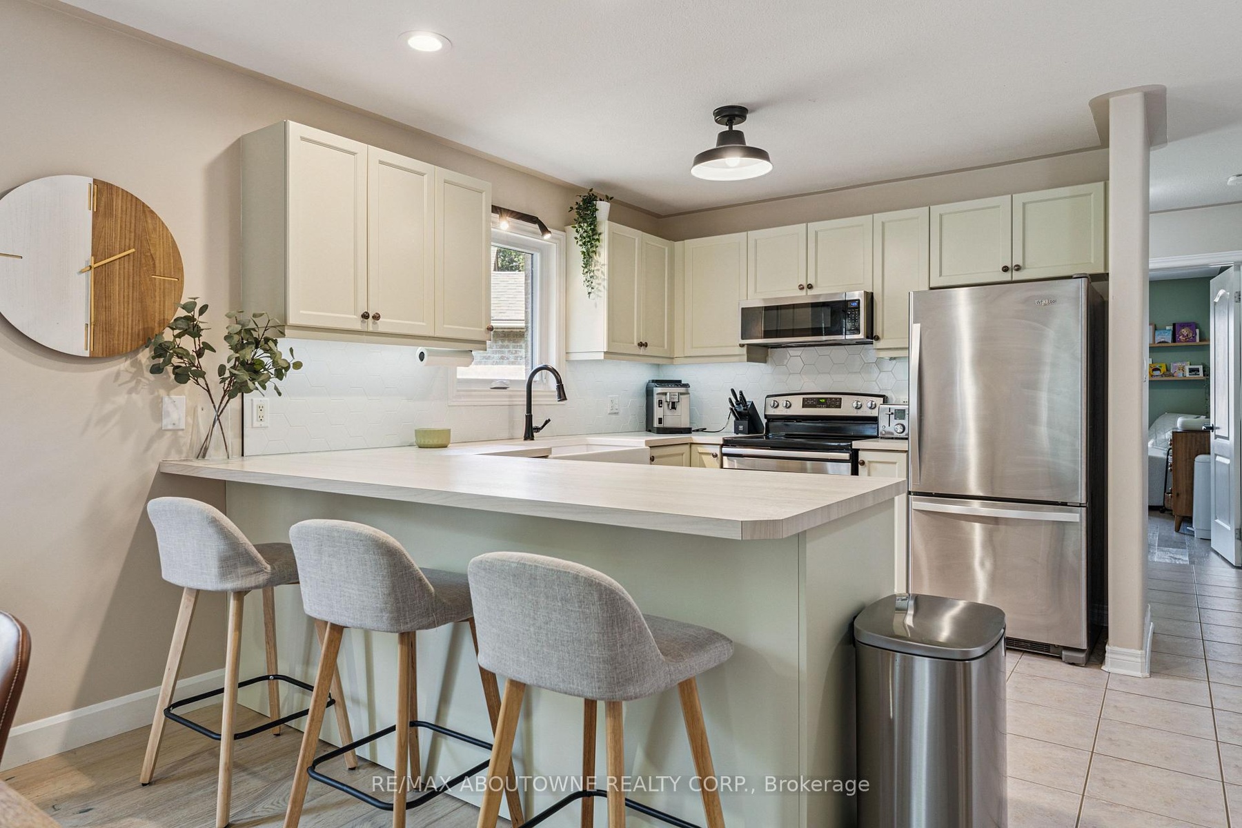 DescriptionNestled on a quiet court in an exclusive neighborhood, backing on to parkland, this beautifully updated semi-detached home sits on a rare, oversized pie-shaped lot measuring an impressive 75 feet wide at the rear offering exceptional privacy and space. Step inside to discover approximately 1,200 square feet of thoughtfully renovated living space featuring top-quality finishes throughout. The main floor offers convenient inside access from the garage to a bright laundry room, complete with a new washer and dryer. The 2023 kitchen renovation shines with a charming farmhouse sink, sleek new appliances, and stylish cabinetry. Freshly painted and boasting new flooring throughout, this home also includes modern upgrades such as a Nest thermostat, 2022 asphalt shingles and A/C, 2023 energy-efficient windows with a Lifetime Transferable Warranty, and a brand new furnace installed in 2025. The basement includes a rough-in for a future bathroom, offering added potential for customization. Located just minutes from shopping, parks, transit, and major highways, this home blends tranquility with convenience. Please complete Disclosure in Supplements. Floor plan & survey in Supplements.Amenities- Deck