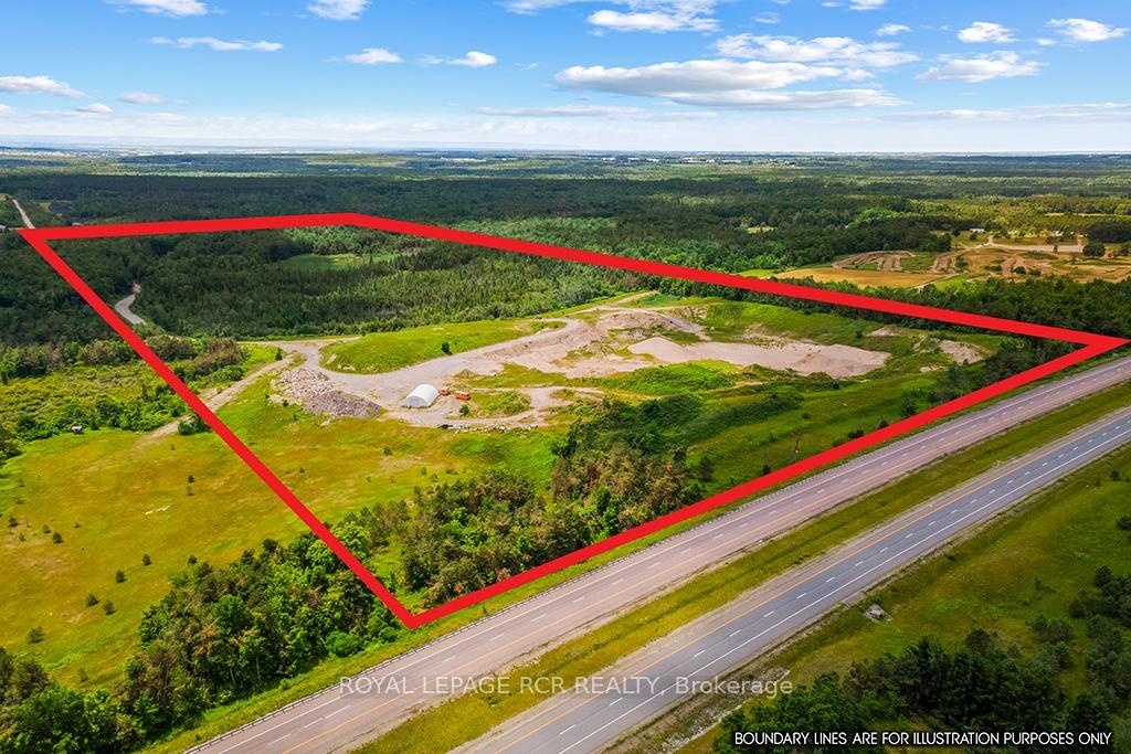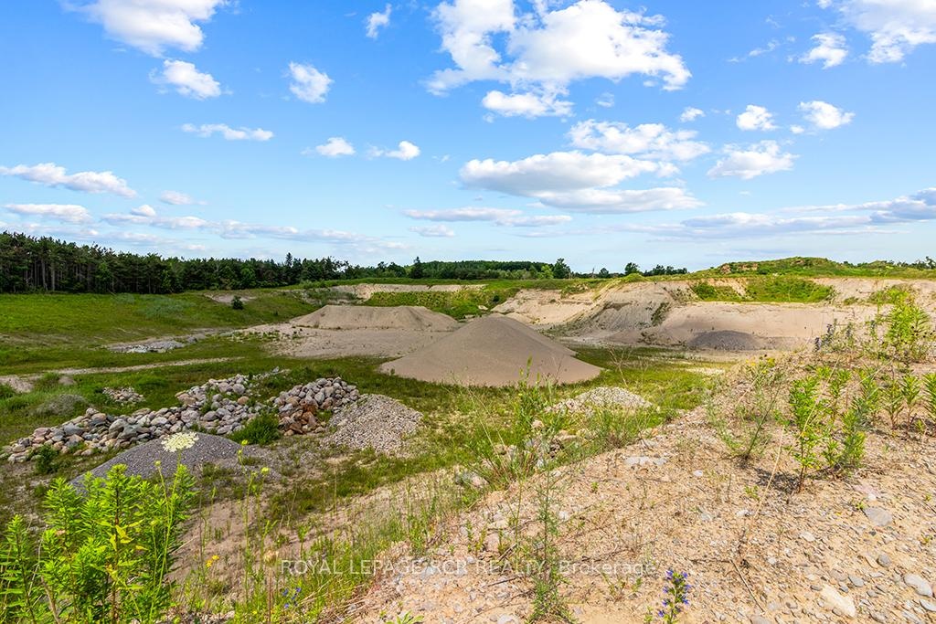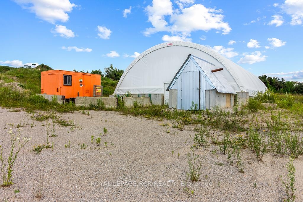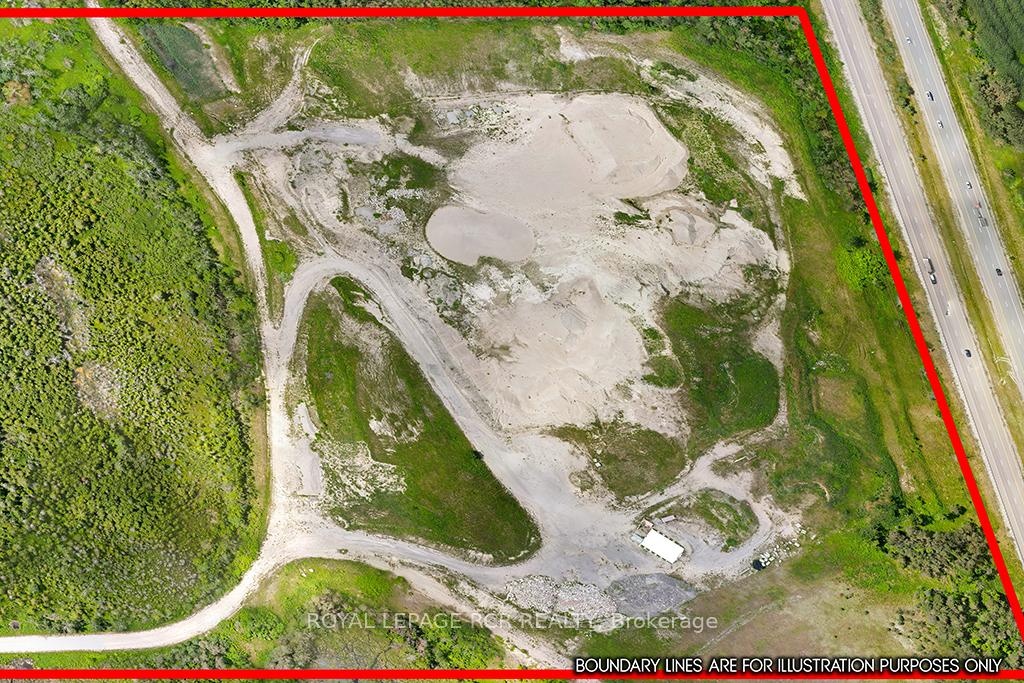 This licensed pit boasts an exceptional location. Abutting Hwy 400 this property is only 5 minutes away from the Forbes rd exit and just north of Barrie. The entire property is 97.5 acres zoned a mix of ME-9 Extraction Industrial Special | A Agriculture | OS Open Space. The licensed area is 19.38 ha (47.9 acres). License number 32554 Class A, with an excellent annual extraction cap of 500,000 tonnes per year. A full discovery was executed by Skelton Brumwell & Associates Inc. establishing an estimated reserve of 1,150,000 tonnes within the current site plan. Reserve is mostly sand with mixed stone, good for B Gravel or various screened sands. This reserve is in addition to the current stockpiles on site. The site plan also allows for recycled granular of concrete, asphalt and brick on site. Additional property amenities include a) a heated and electricity powered scale house, with weigh station b) diesel heated 40 X 60 tarpaulin structure on concrete block foundation with a 16 foot drive door c) 2 office trailers d) ample parking area for equipment and storage.