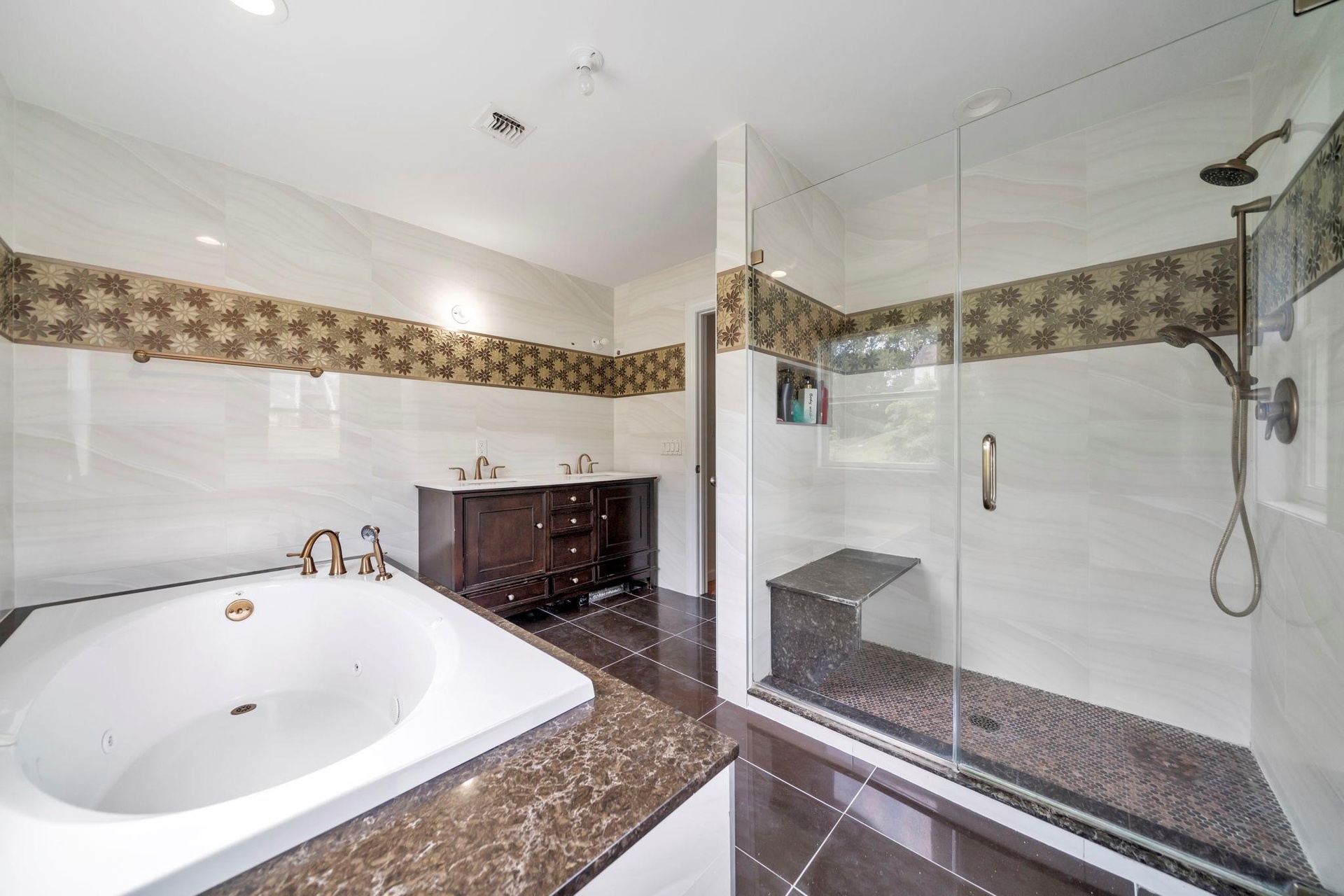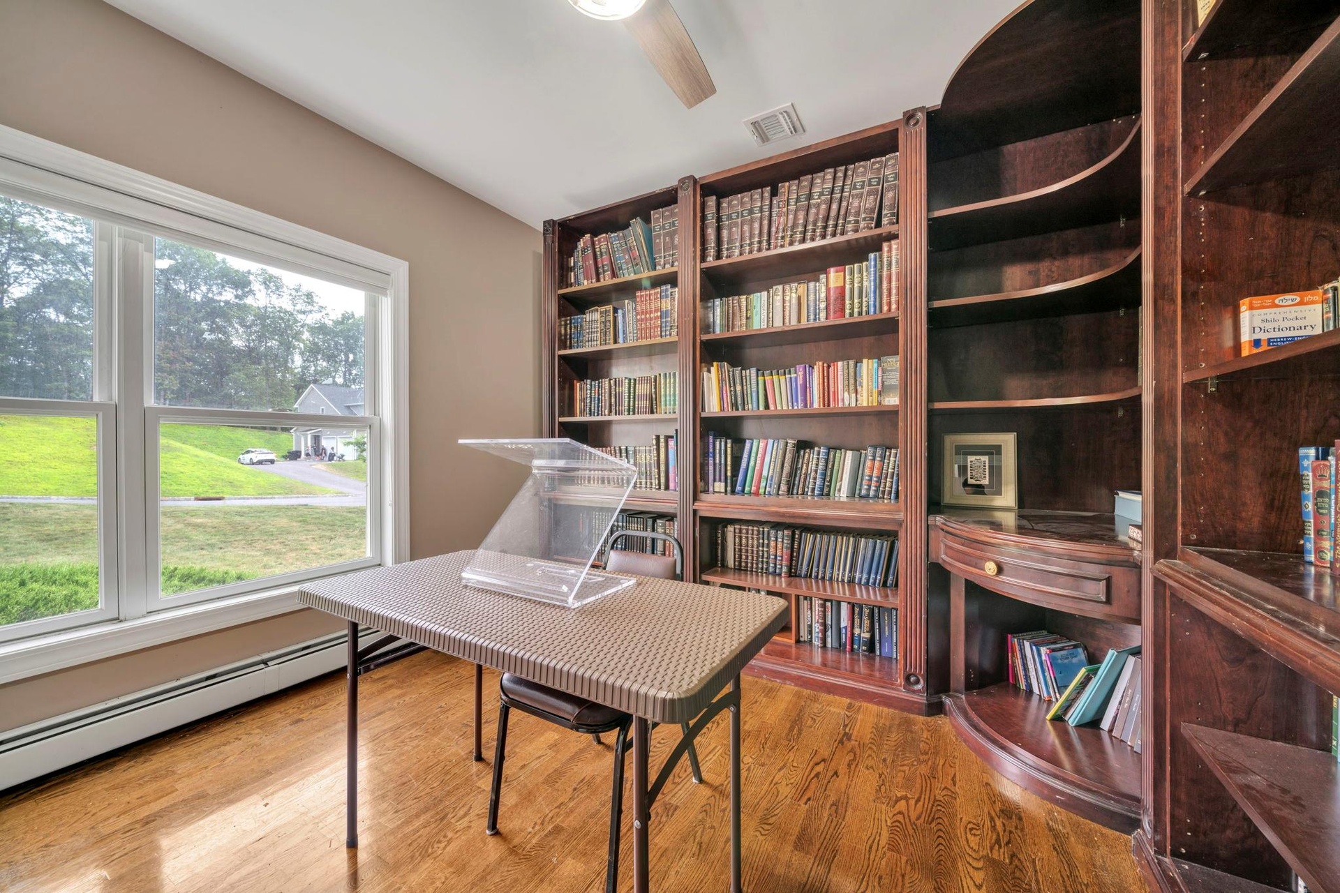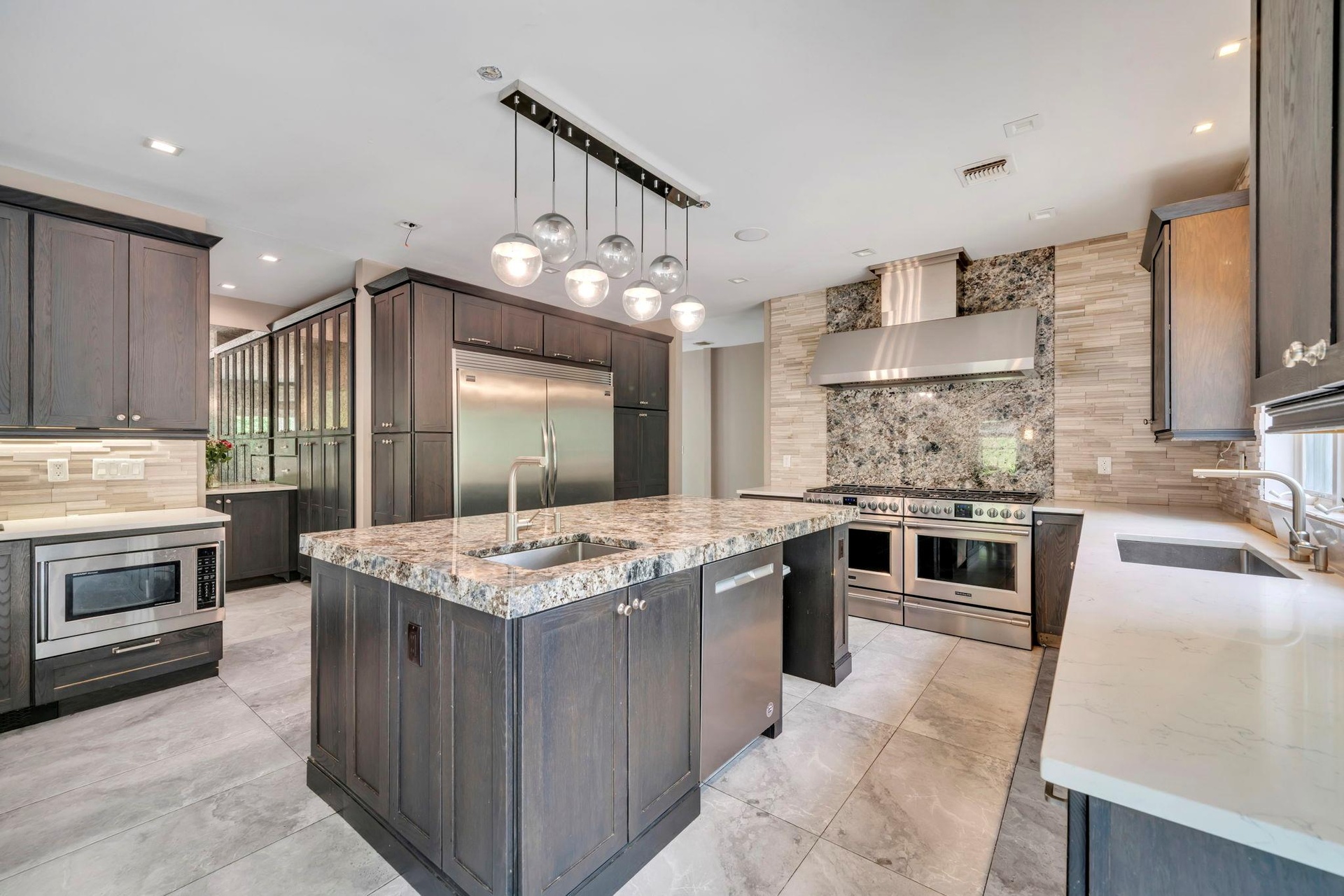 The main level boasts a grand dining room, chef’s kitchen with 2 sinks, 2 ovens, a double fridge/freezer, stone backsplash, abundant cabinetry, and a butler’s pantry. The spacious family room features a cozy gas fireplace and opens to a unique bonus “round room”—an ideal spot for relaxing or entertaining. Also on the main level: 2 bedrooms, 1.5 bathrooms, a library, and plenty of closet space.