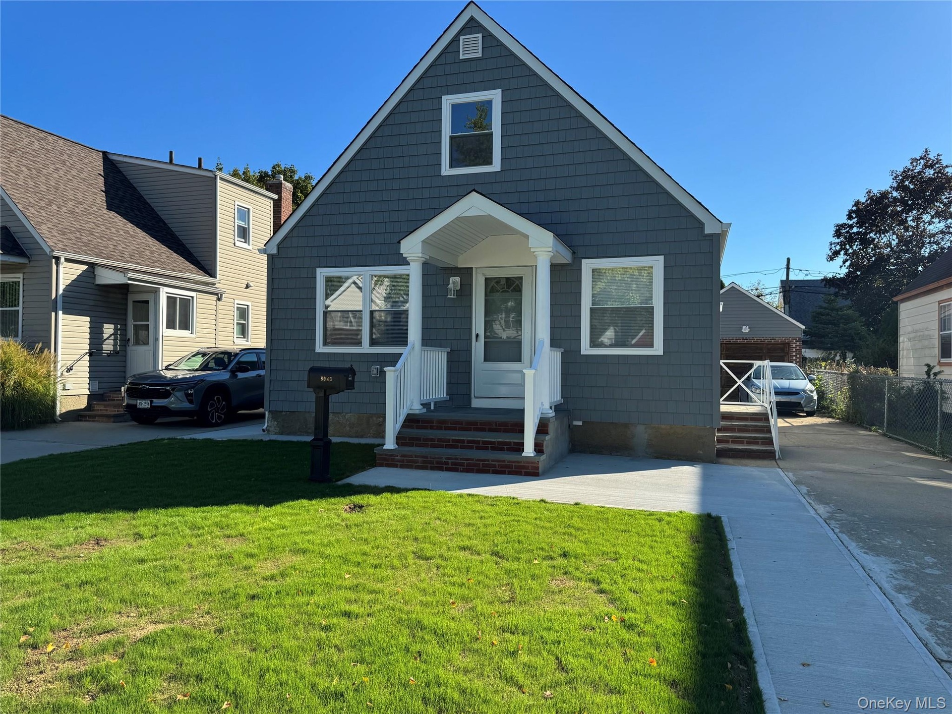 This beautifully renovated Cape style home features three spacious bedrooms and gleaming hardwood floors throughout.