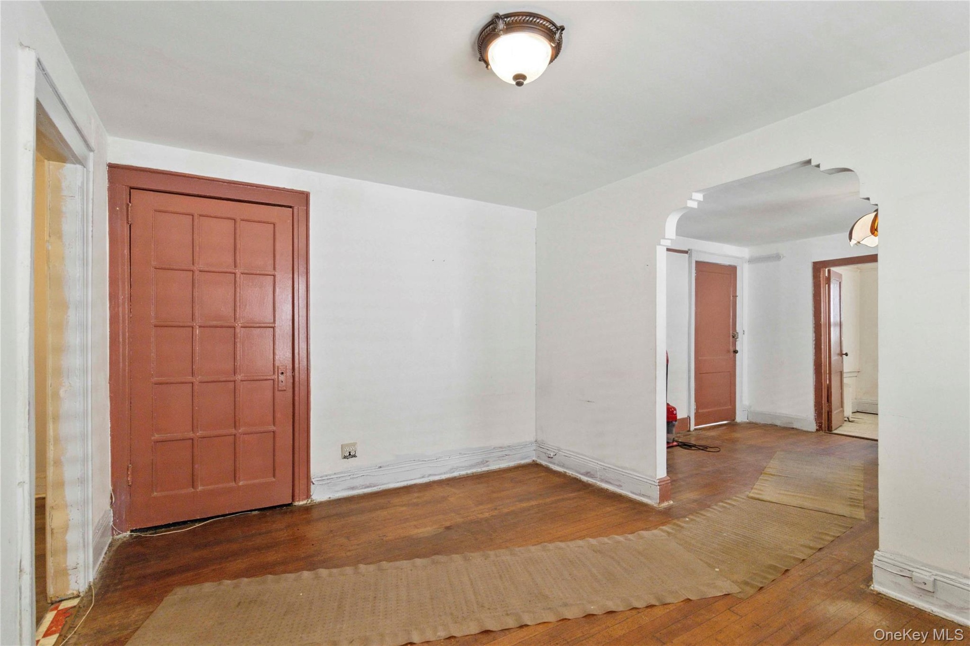 - Spare room featuring arched walkways and hardwood / wood-style flooring