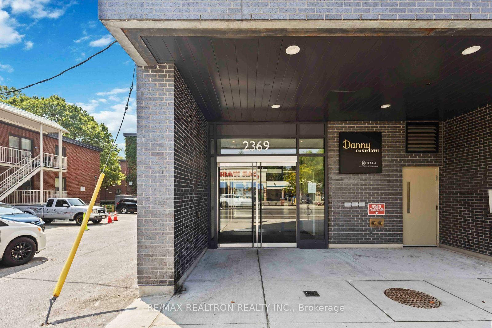 Perfectly Situated condo at Danforth & Main, Highly functional square lay out features with two seperate generous bedrooms and two full bathrooms. This unit consist of just under 900 square feet with 193 Square feet balcony, 9 feet high ceilings, and windows floor to ceiling, bringing vast of natural light in. This unit faces the South-West corner steps to public transit with Subway across the street. Enjoy the shops and farmers market, resturants, and parks near by. Further South you can enjoy the beaches, you have the usage of the building amenities, concierge, gym, party-room, visitors parking, and digital system. This unit has a parking space and bicycle storage locker.