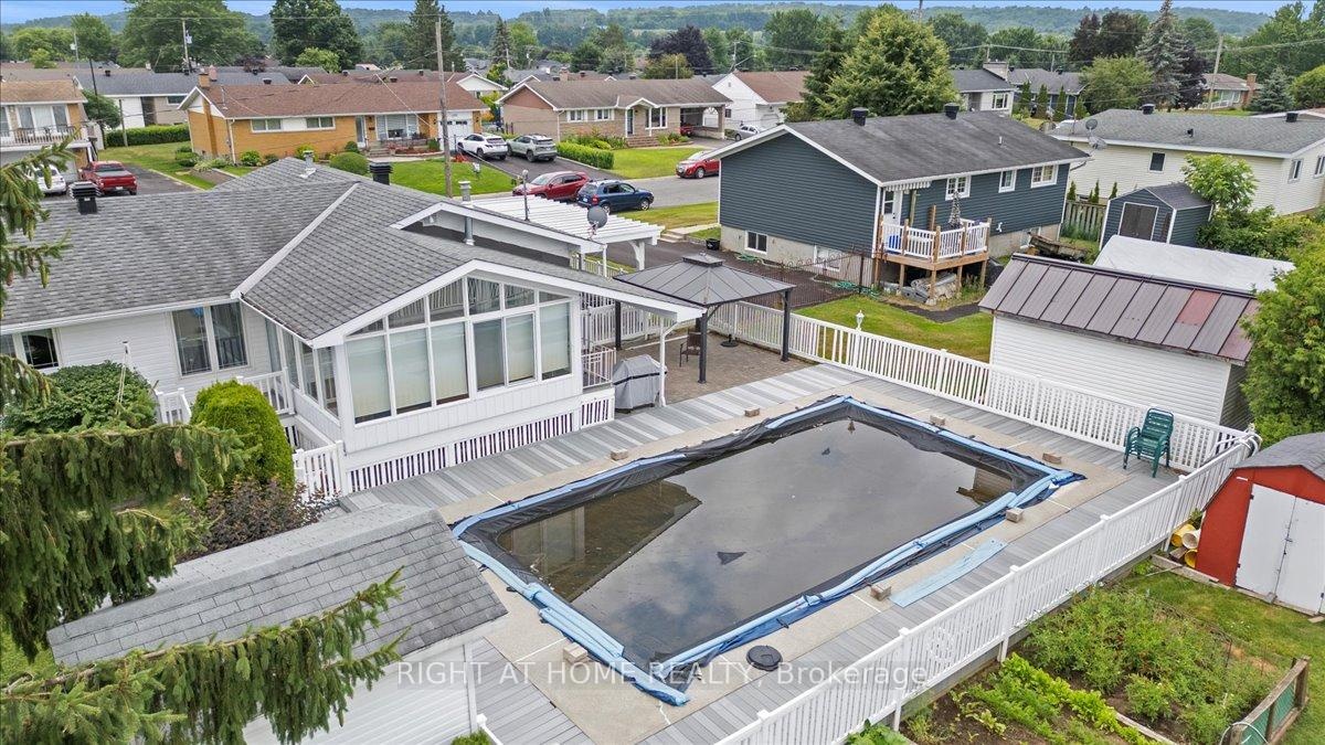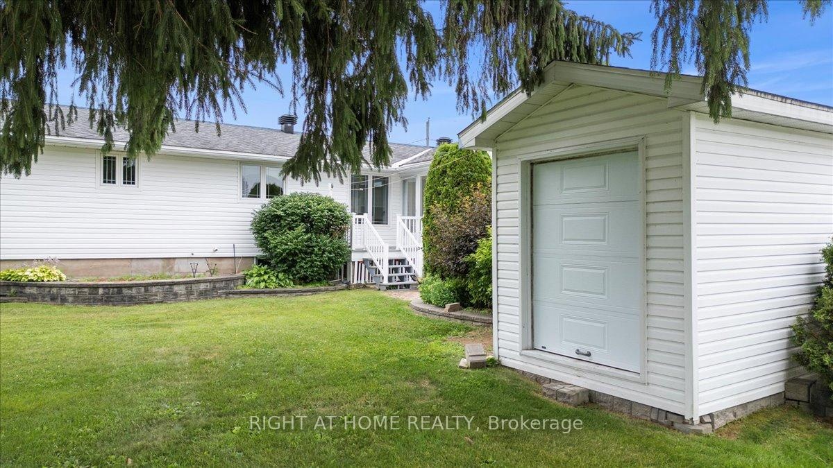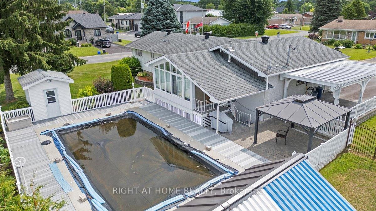 Located in the heart of Rockland , this beautiful landscaped property is located on a corner lot within minute from all local ameneties, such as Schools, Restaurants, Pharmacies, Churches, Rockland Golf Course , Local Marina , Box Stores, YMCA, Arenas... The home offer gleaming Hardwood floor and ceramic on the main floor with loads of natural light a design Kitchen with Granite Counter top and back splash, fully renovated 4 pcs bathroom, 2+1 fair size bedroom , beautiful 4 season Solarium with access to the rear yard and a heated Salted In-Ground Pool, with maintenace free decking all around and Fenced back yard . Also included is a Gazebo for your patio enjoyments! also a detach storage garage for a lawn tractor and other things. The backyard also offers a direct basement access which would offer you the possibillity for a future In-law Suite or Accessorie appartment. The basement is fully finish with bar, Rec Room, and a 3rd Bedroom and 2 seperate powder room. There is a full under the garage Storage that is also all Sprayfoam. click this link for video: https://poddermedia.hd.pics/2344-Raymond-St