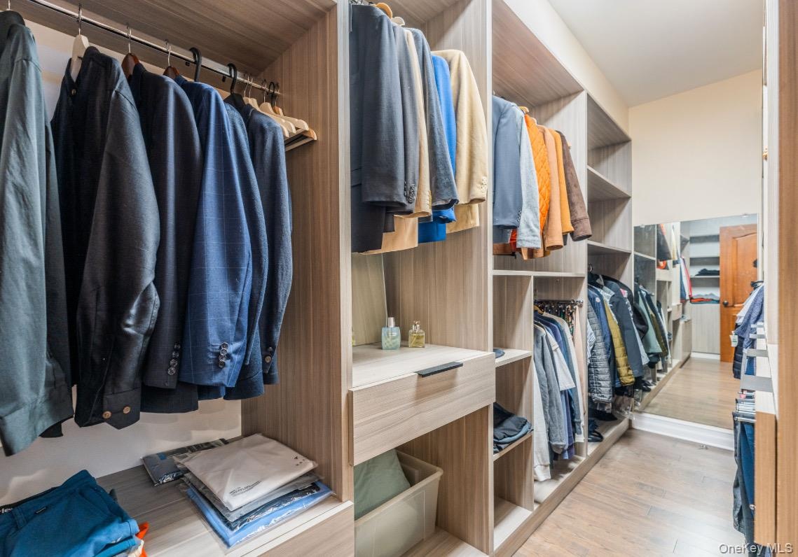 - Walk in closet with light wood-style flooring