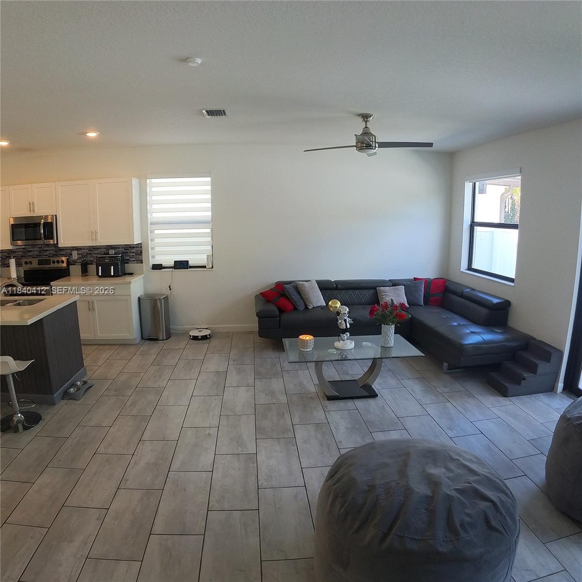The heart of the home is a stylish kitchen equipped with quartz countertops, stainless steel appliances, and a large island—ideal for entertaining or everyday living. Outside, enjoy a freshly painted exterior and a beautifully landscaped patio, creating a private outdoor space to relax or host. ADDITIONAL OPPORTUNITY: Seller is offering a price improvement option to keep the furniture for a great price.