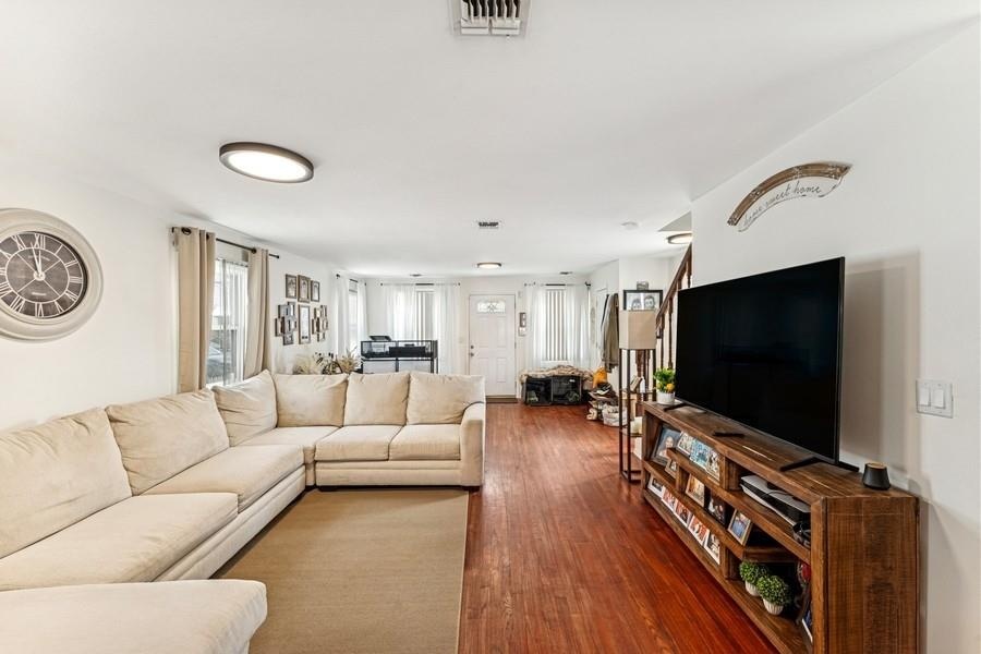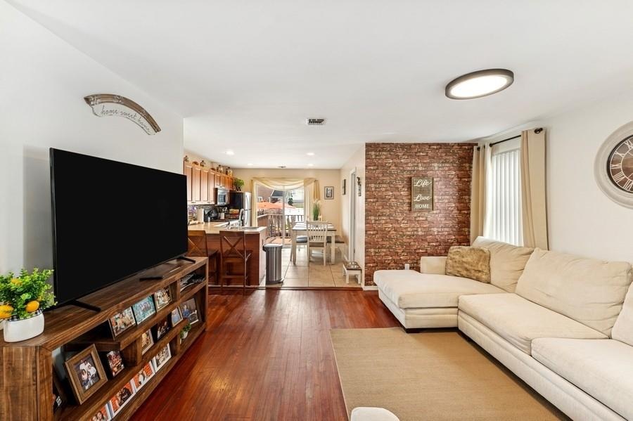 This home features a thoughtful and functional layout ideal for new homeowners, with an open-concept living and dining area that flows seamlessly into a warm, inviting kitchen complete with a peninsula-style island โ perfect for serving family-style meals.